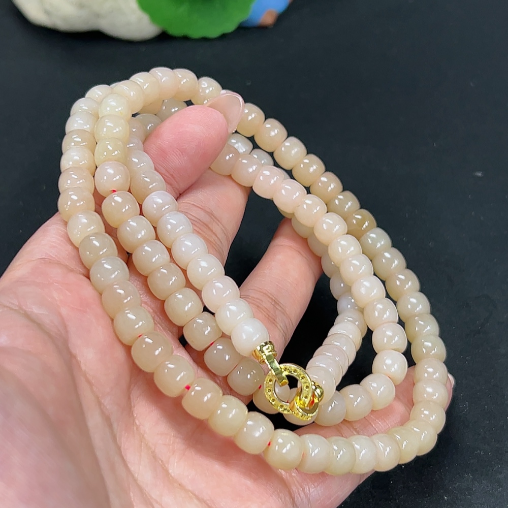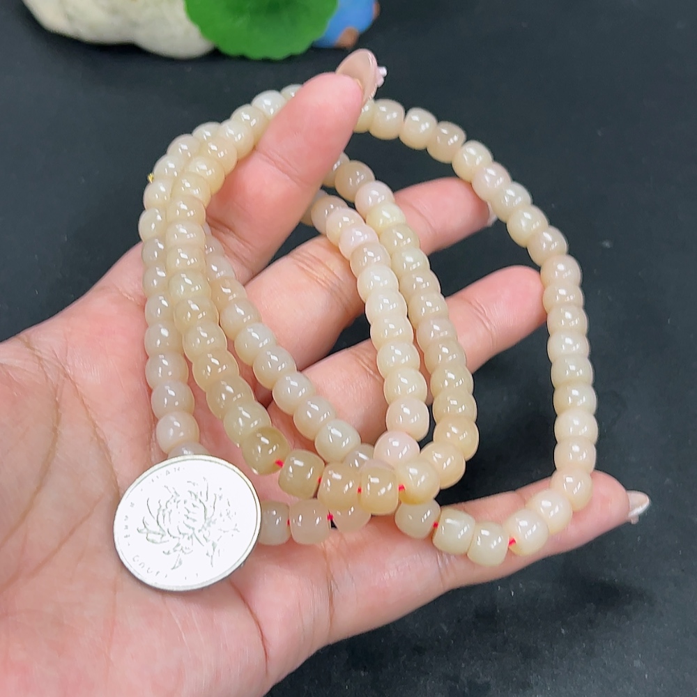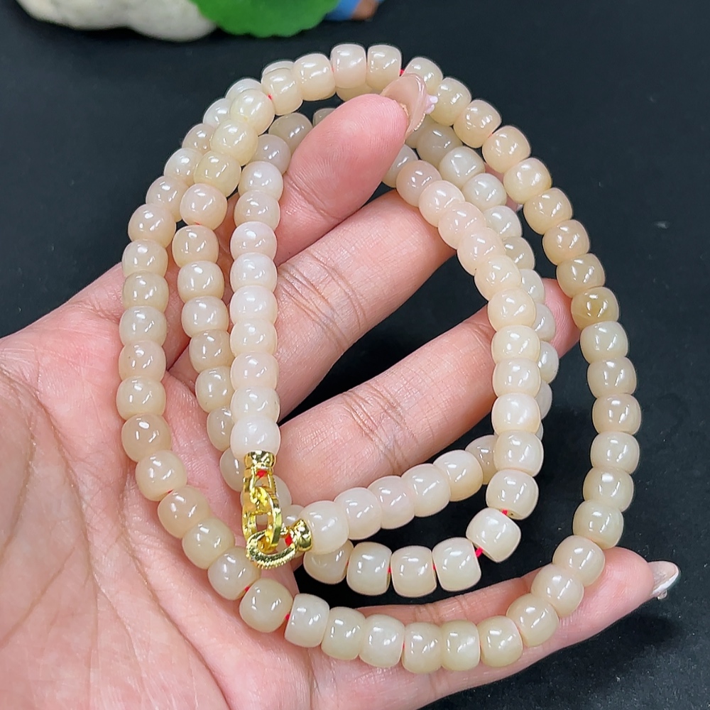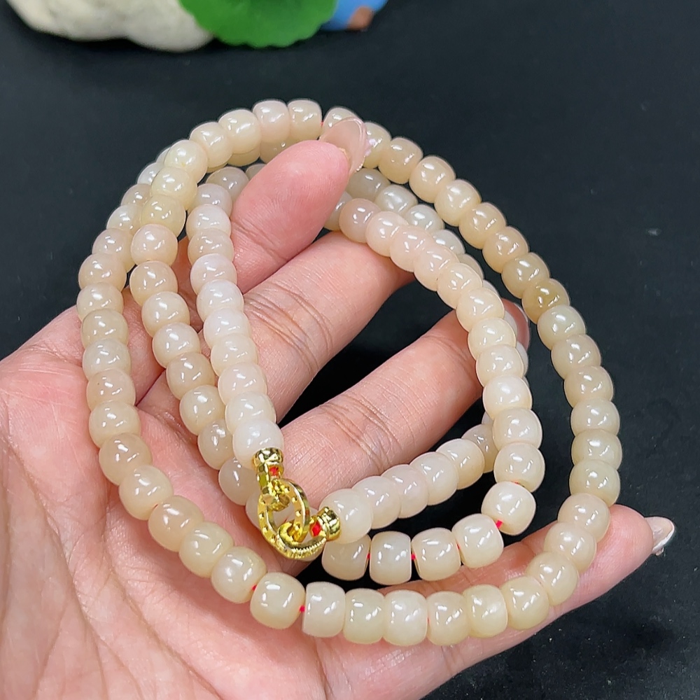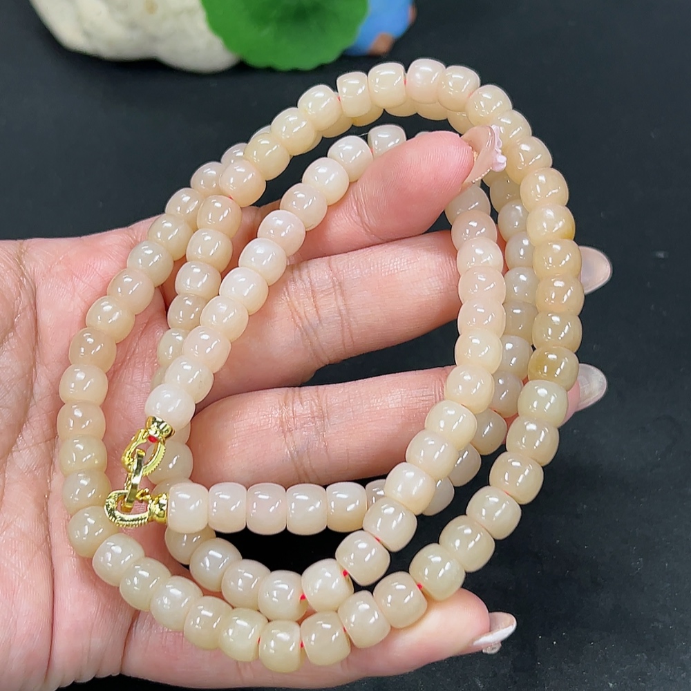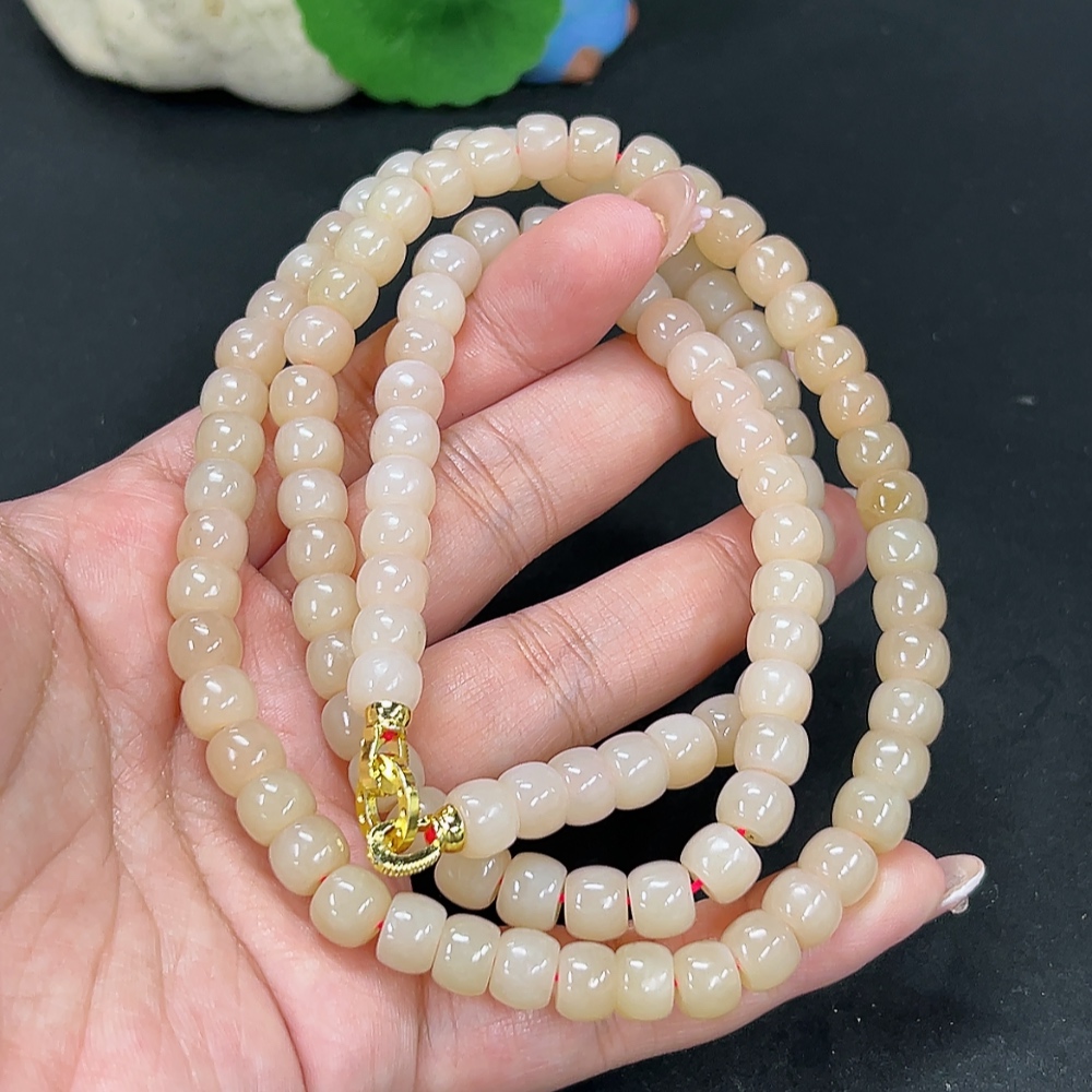 Hetian Jade Bead Necklace Approx. 7.5mm Total Weight Approx. 78.8g Non-Gold