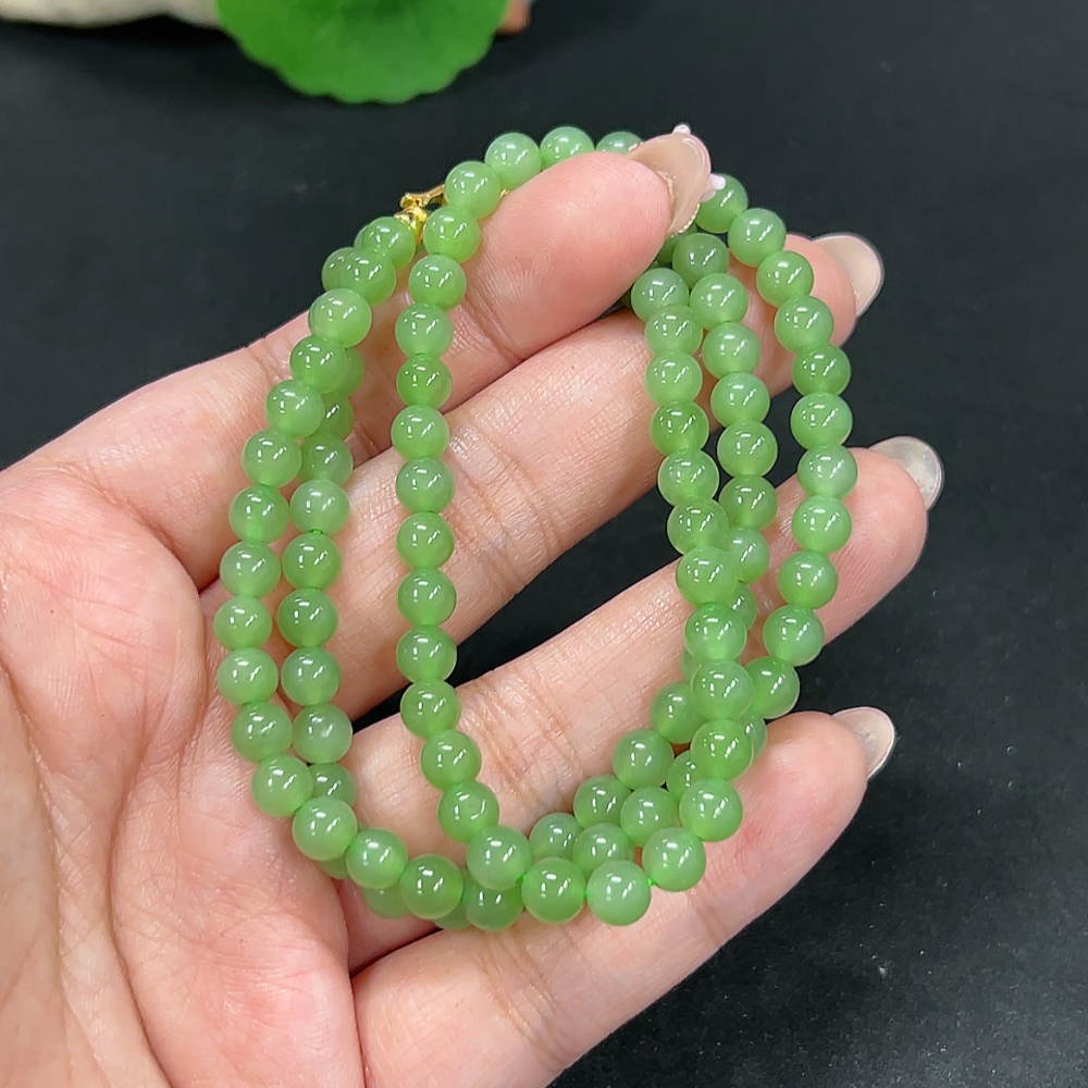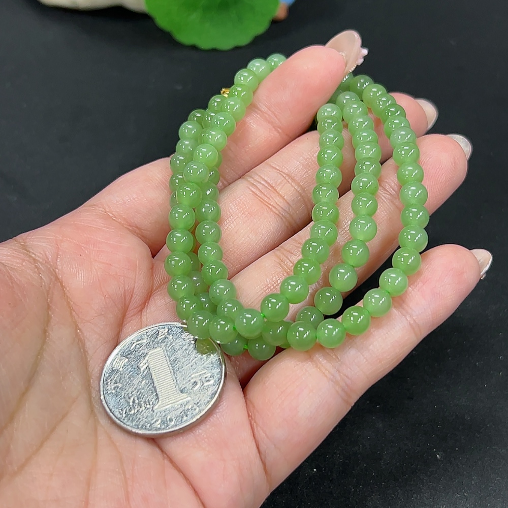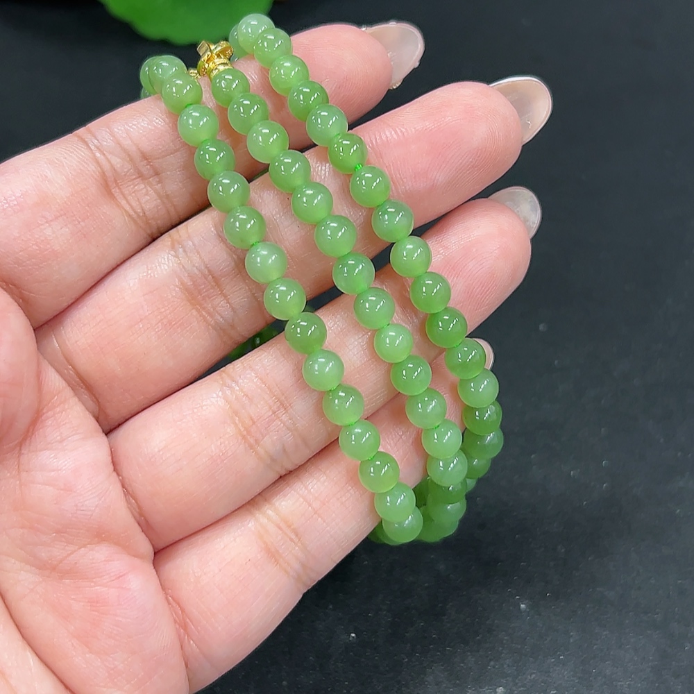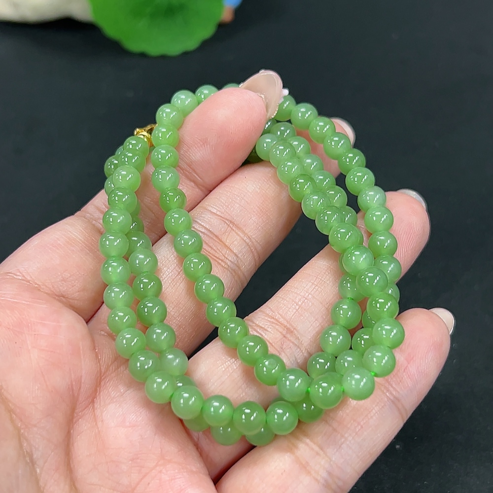 Hetian Jade Bead Necklace Approx. 5.4mm Non-Gold-Inlaid Total Weight Approx. 27.5g