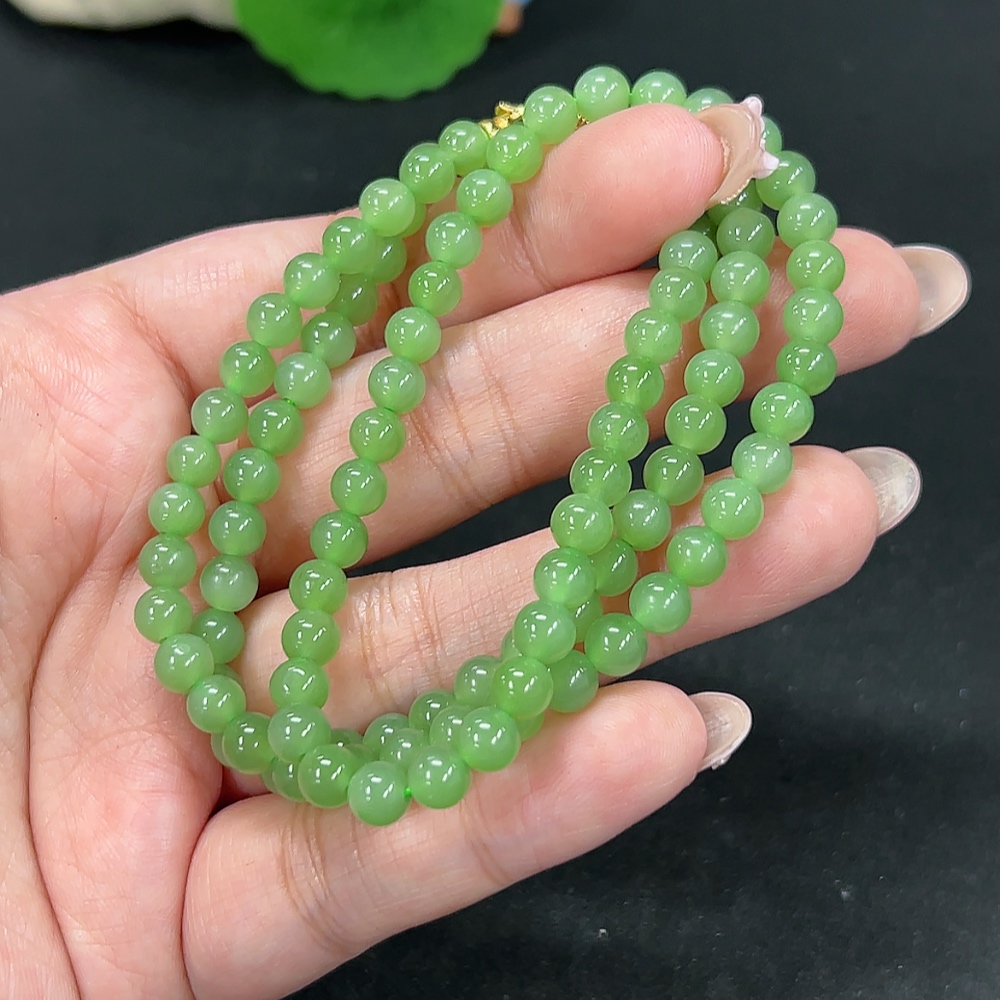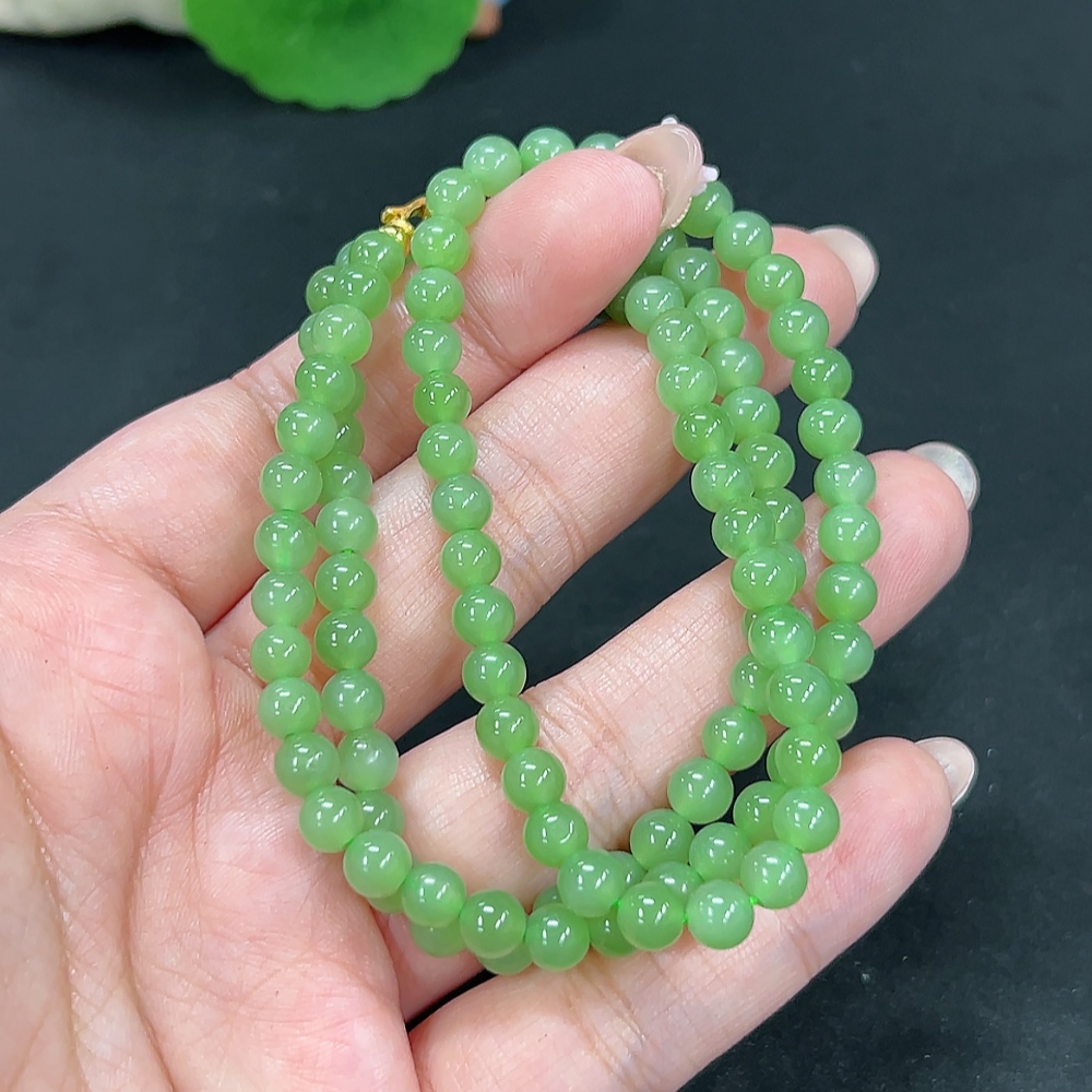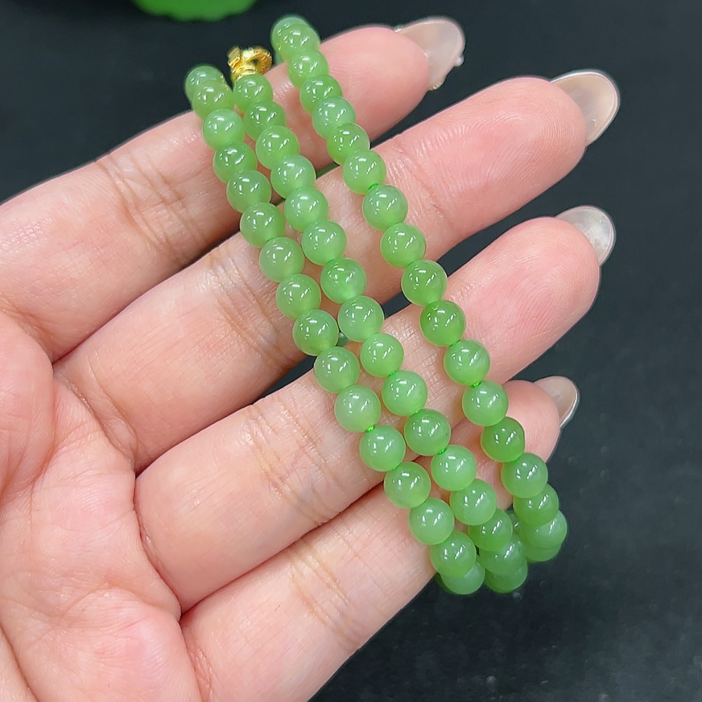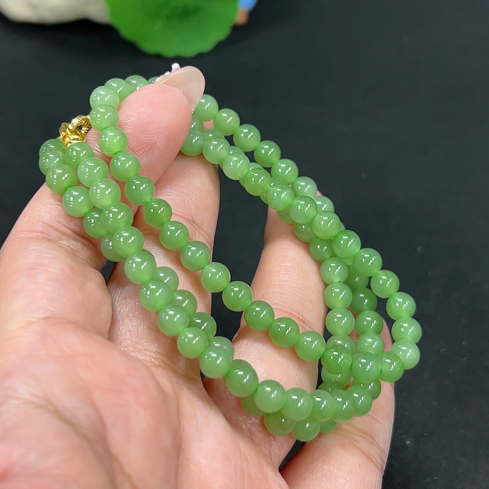 Hetian Jade Bead Necklace Approx. 5.4mm Non-Gold-Inlaid Total Weight Approx. 27.5g