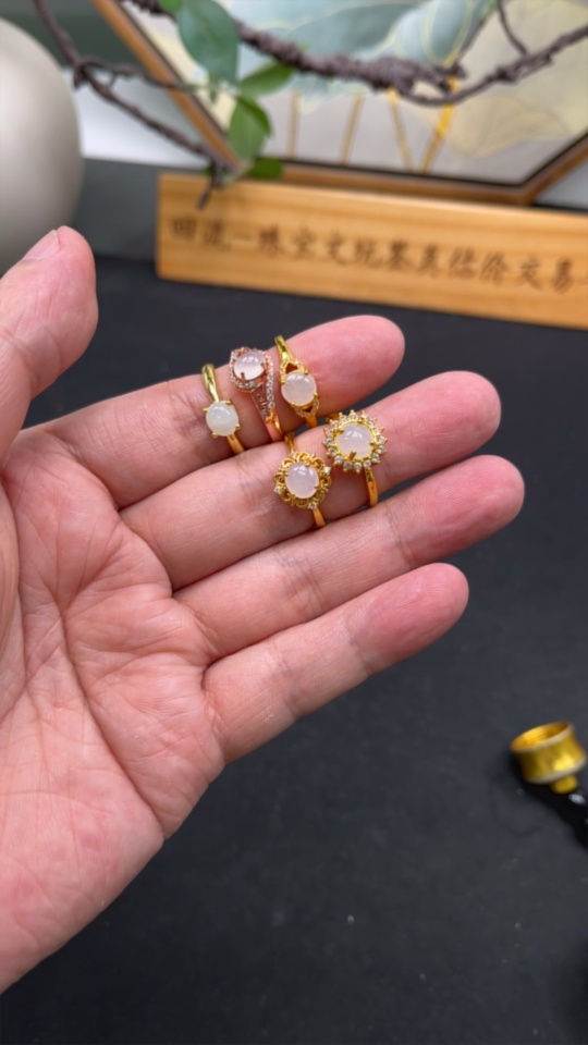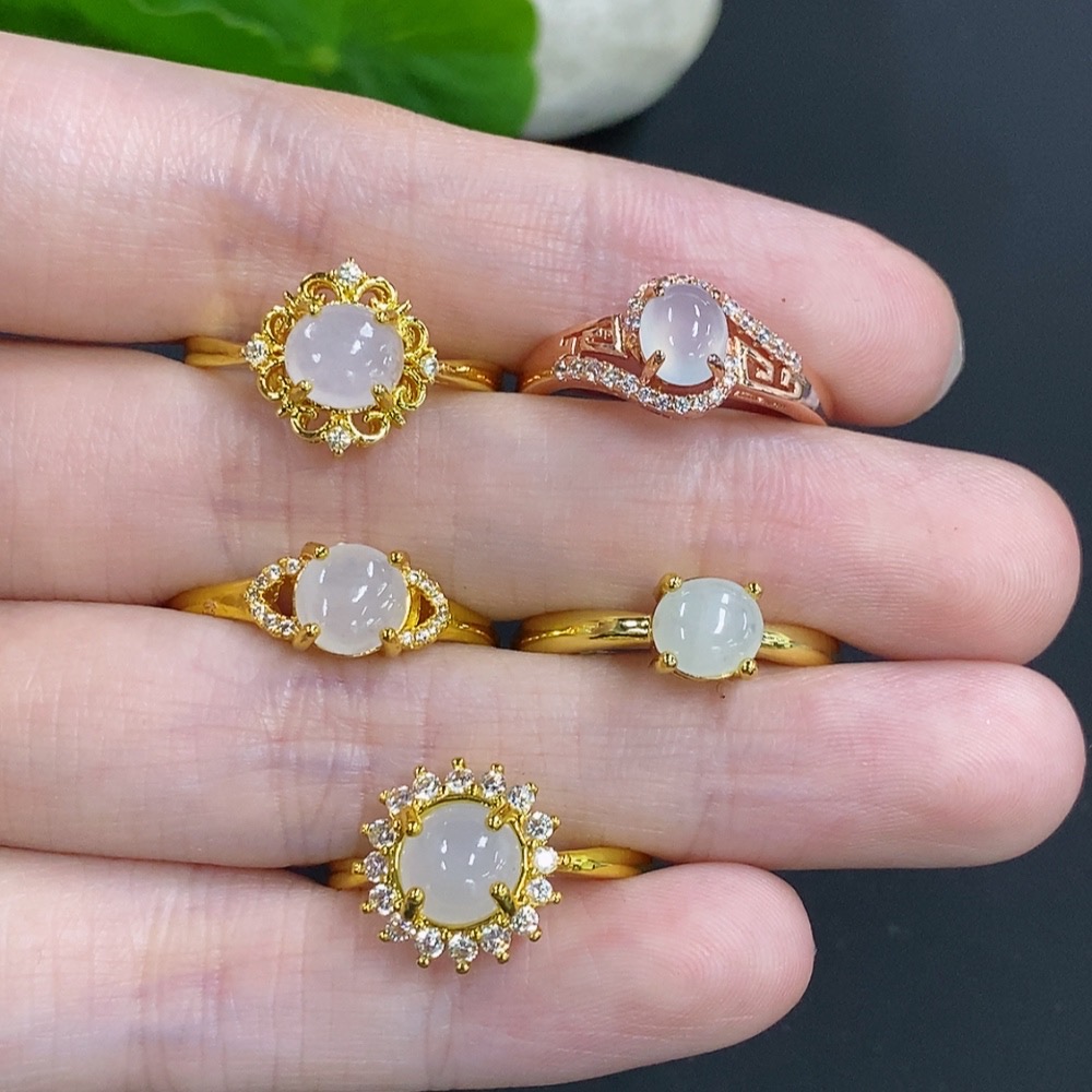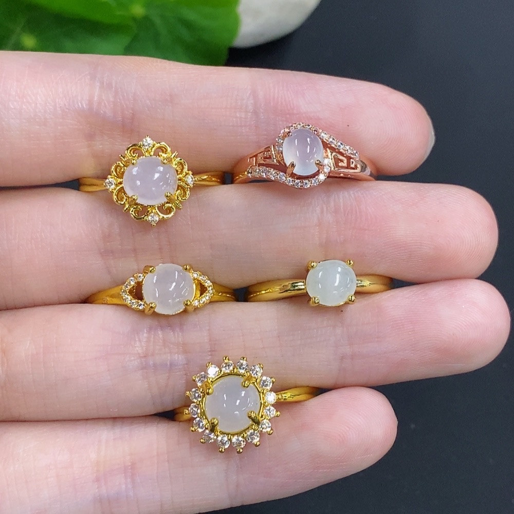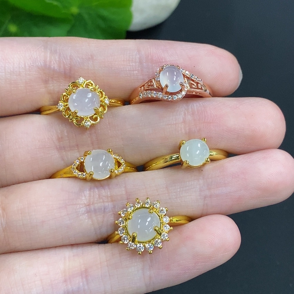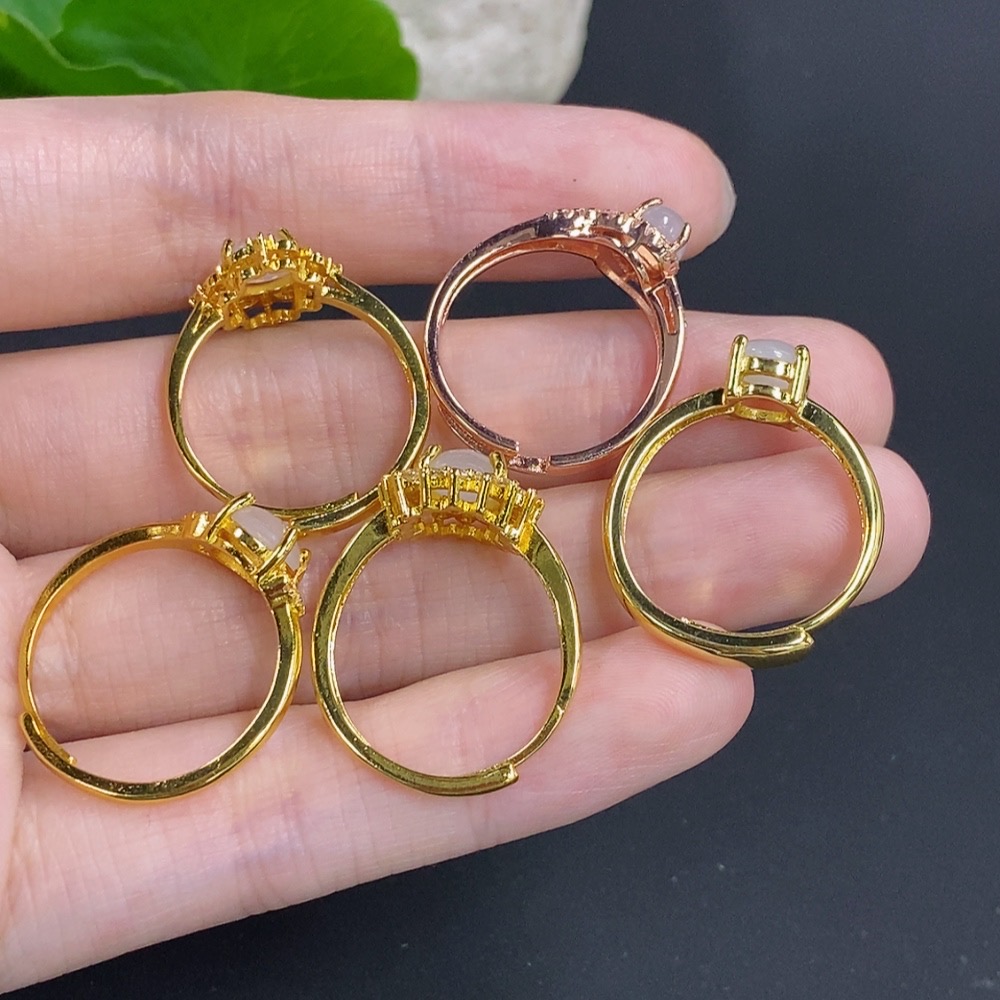 Jadeite Cabochon Ring Sell as a Lot Non-Metal Adjustable Size