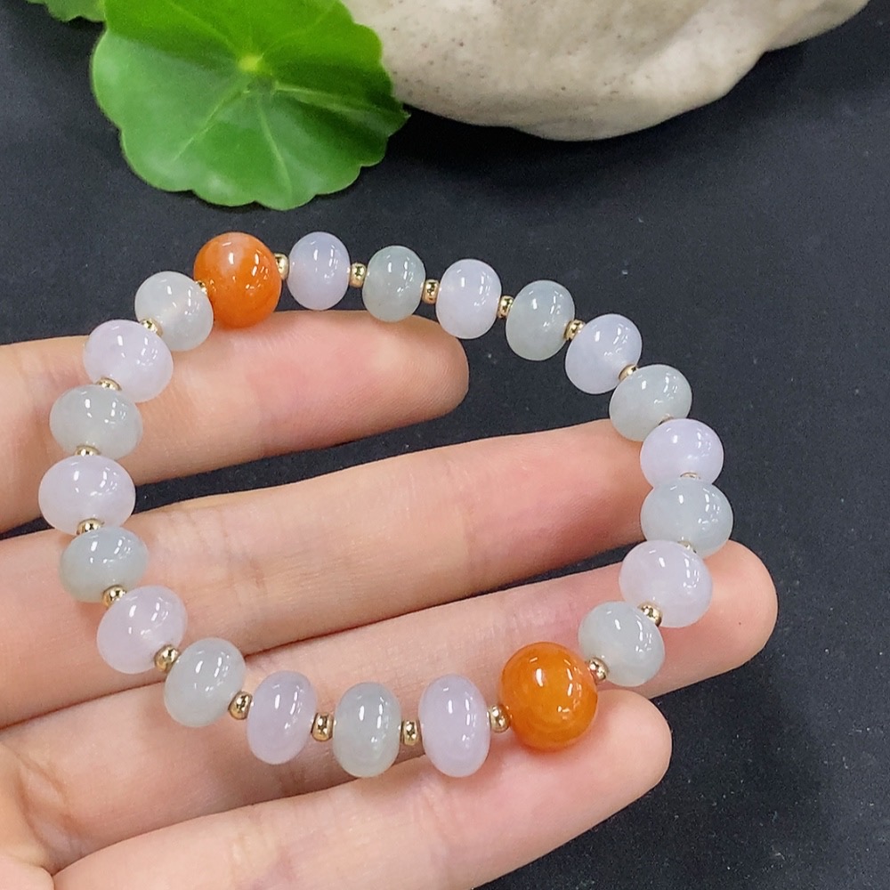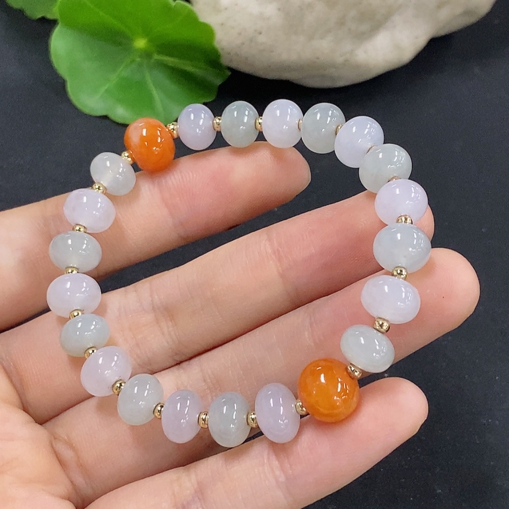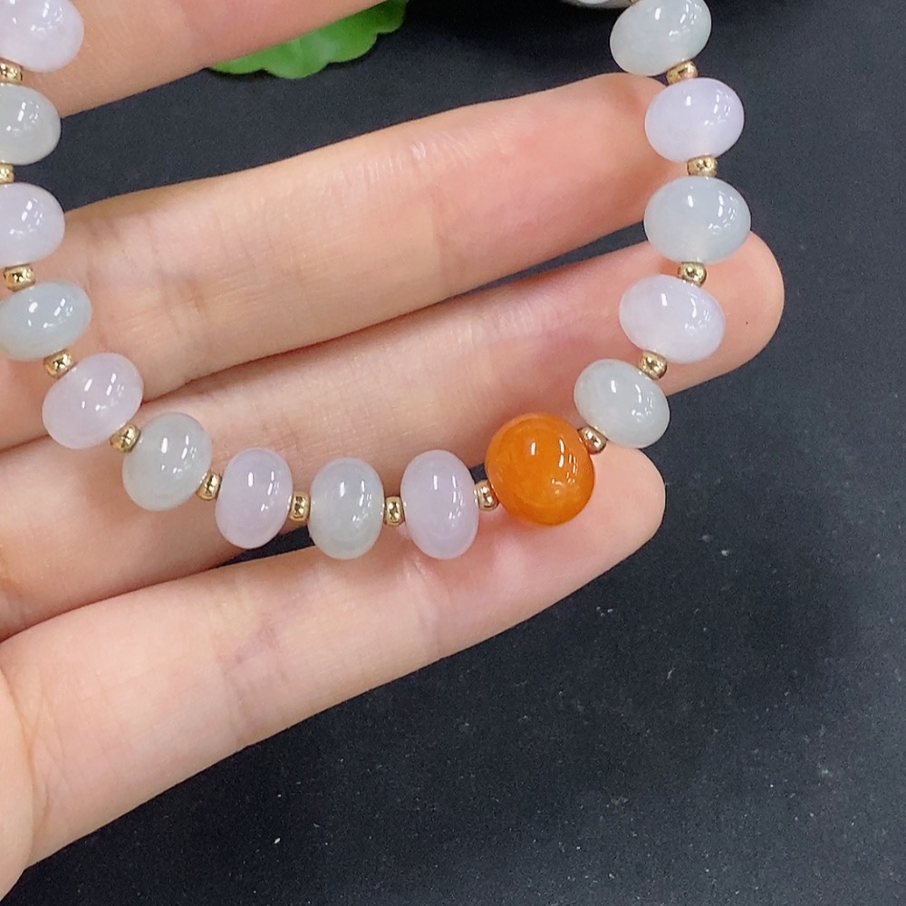 Jadeite Bracelet Approx. 8mm Beads Non-Gold-Inlaid Total Weight Approx. 18.9g