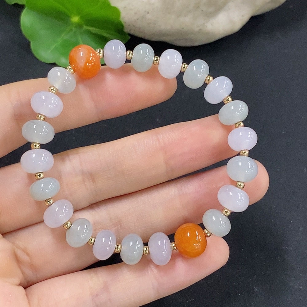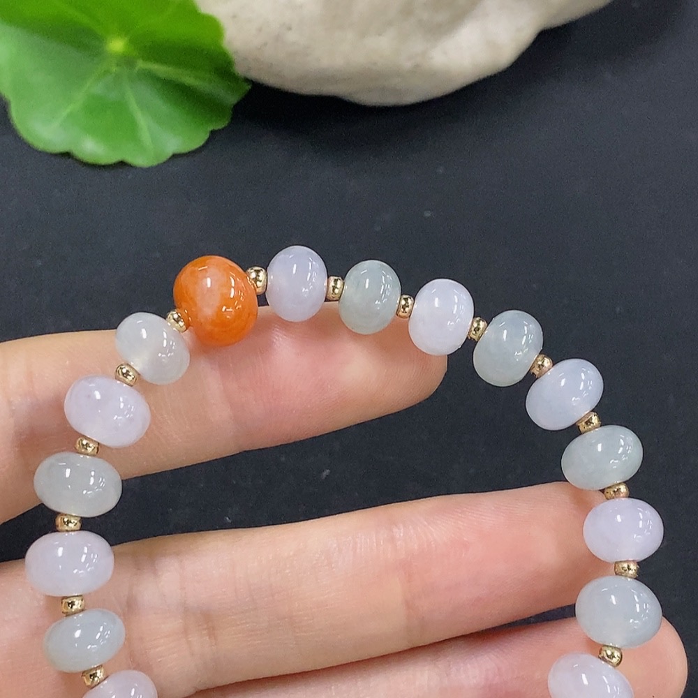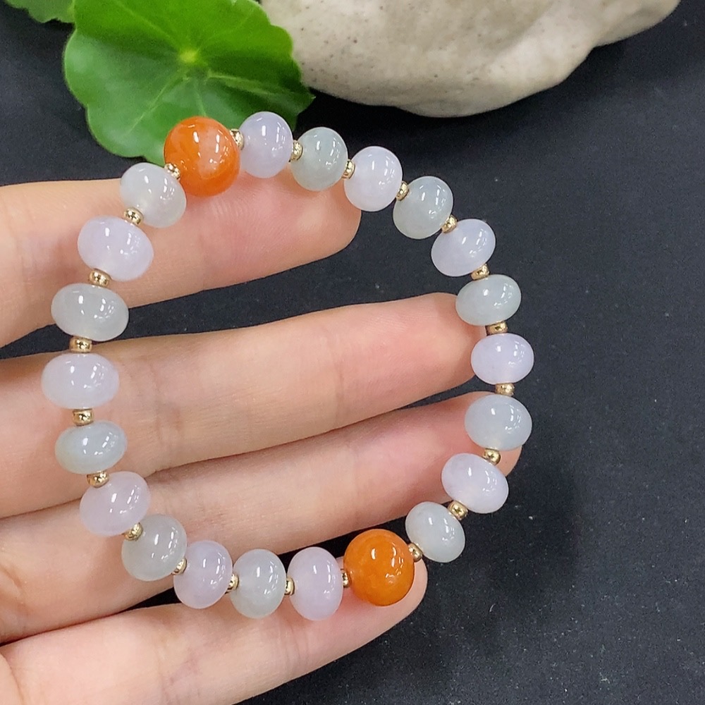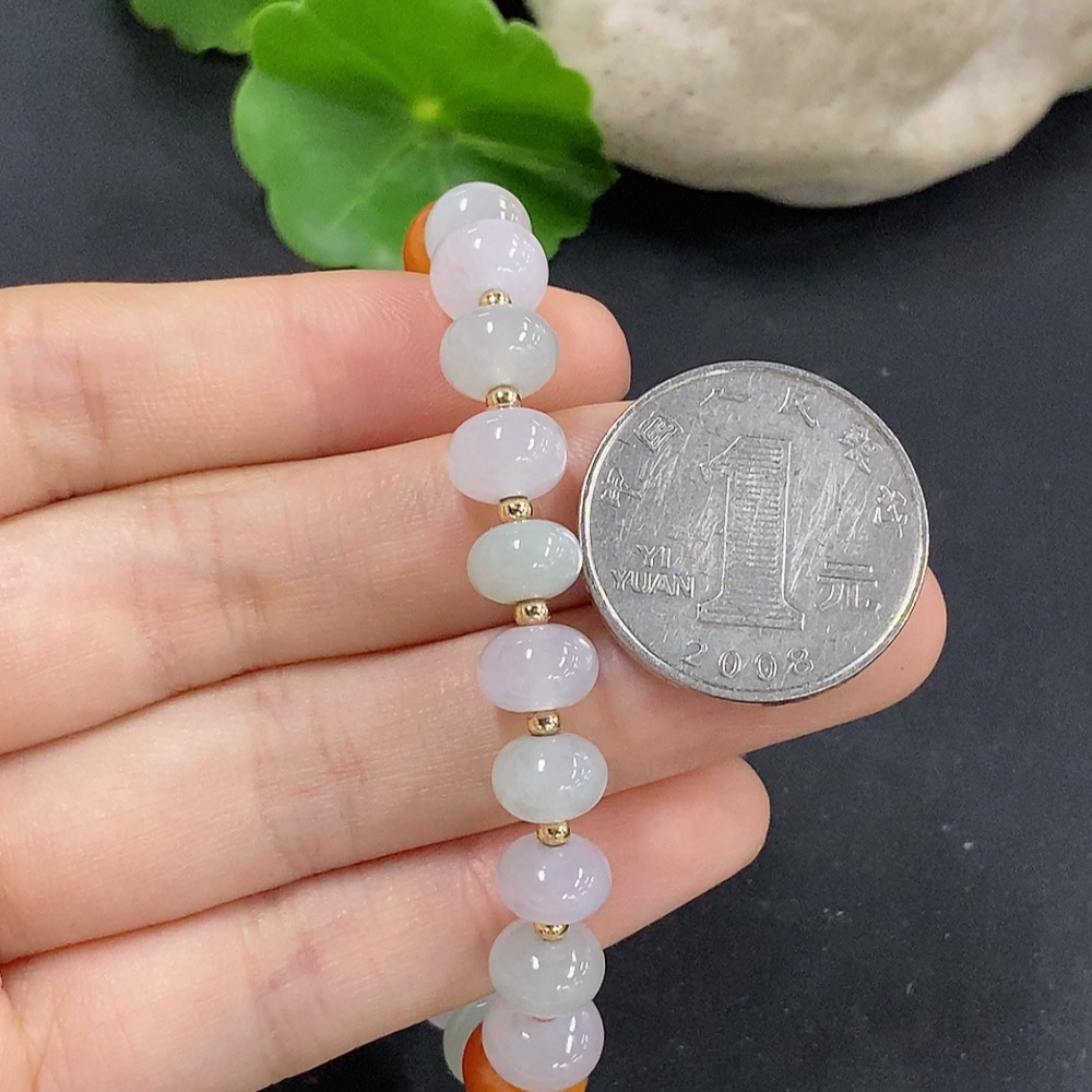 Jadeite Bracelet Approx. 8mm Beads Non-Gold-Inlaid Total Weight Approx. 18.9g