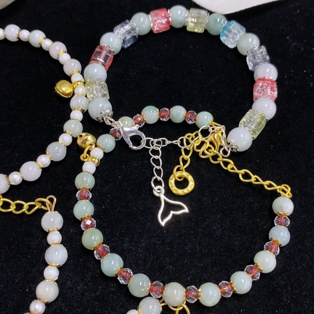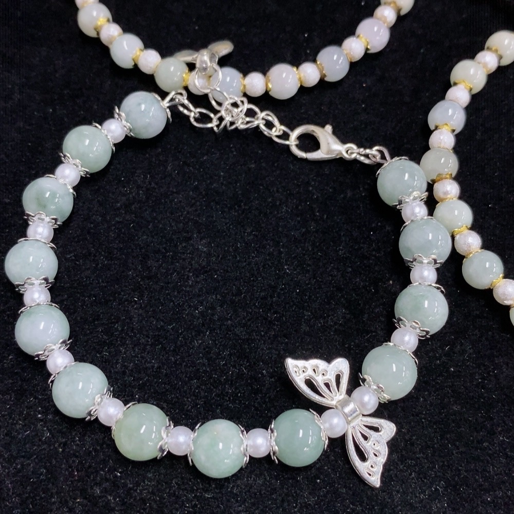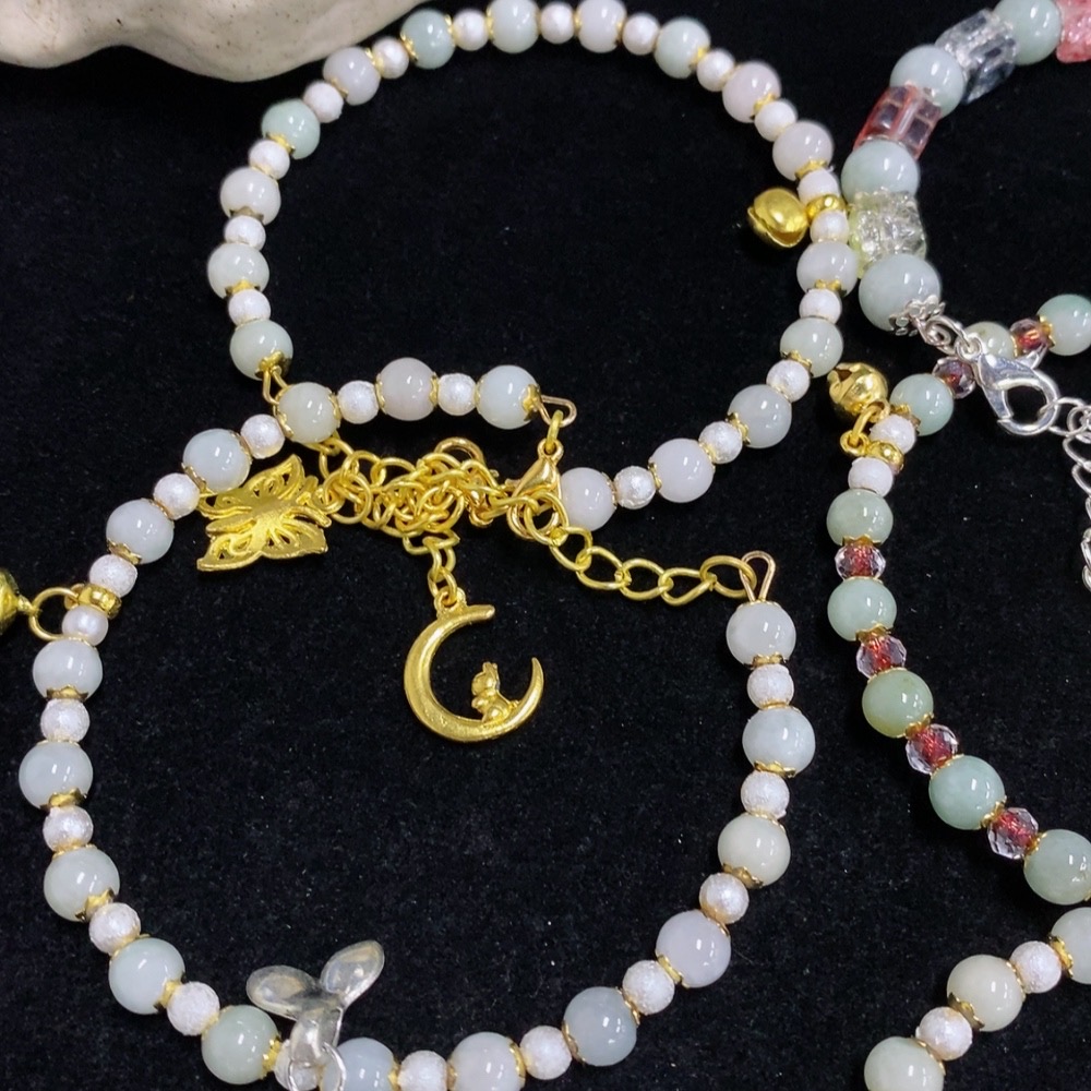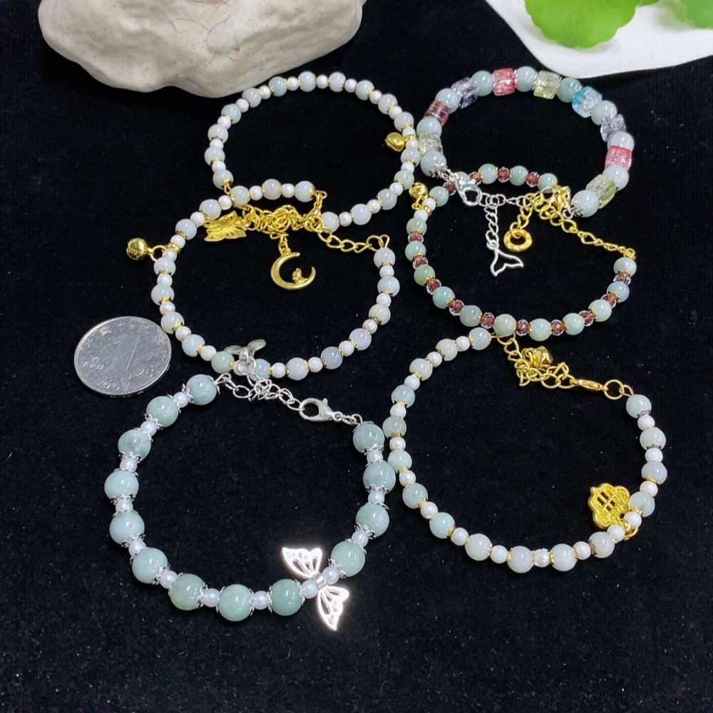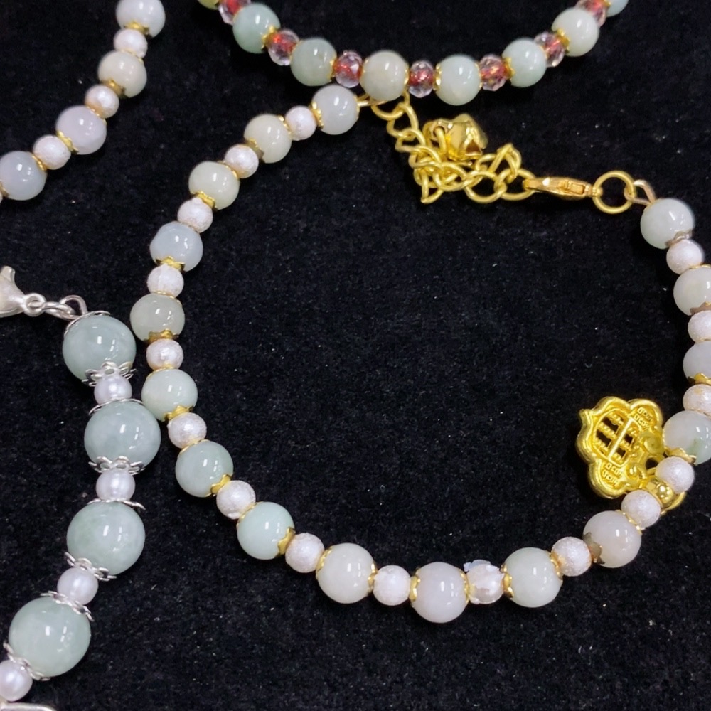 Jadeite Inlaid Bracelet Non-Gold Sell as a Lot Total Weight Approx. 63.87g With Non-Grade A Beads
