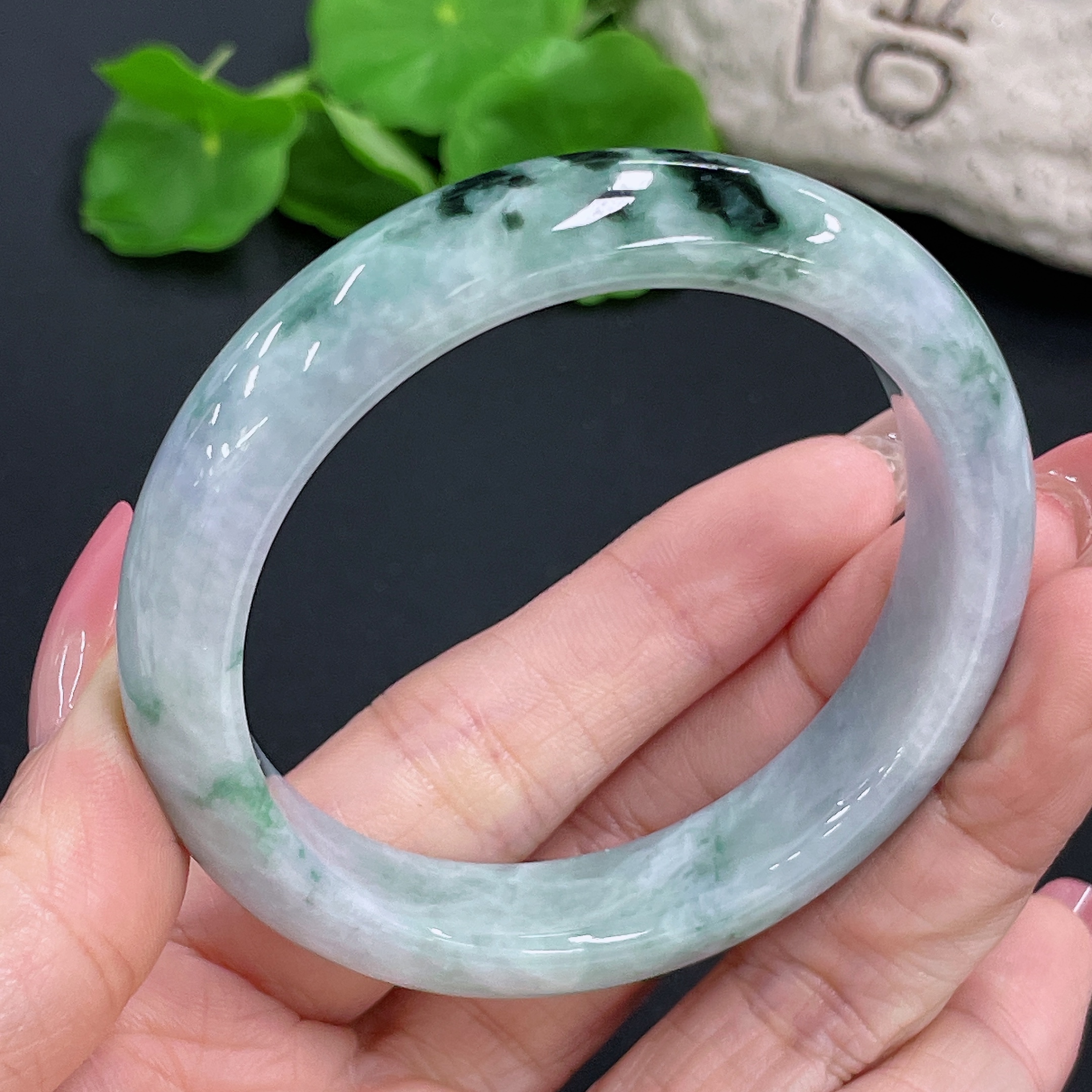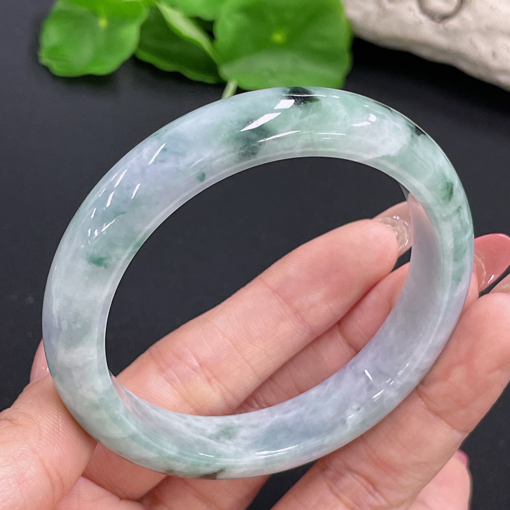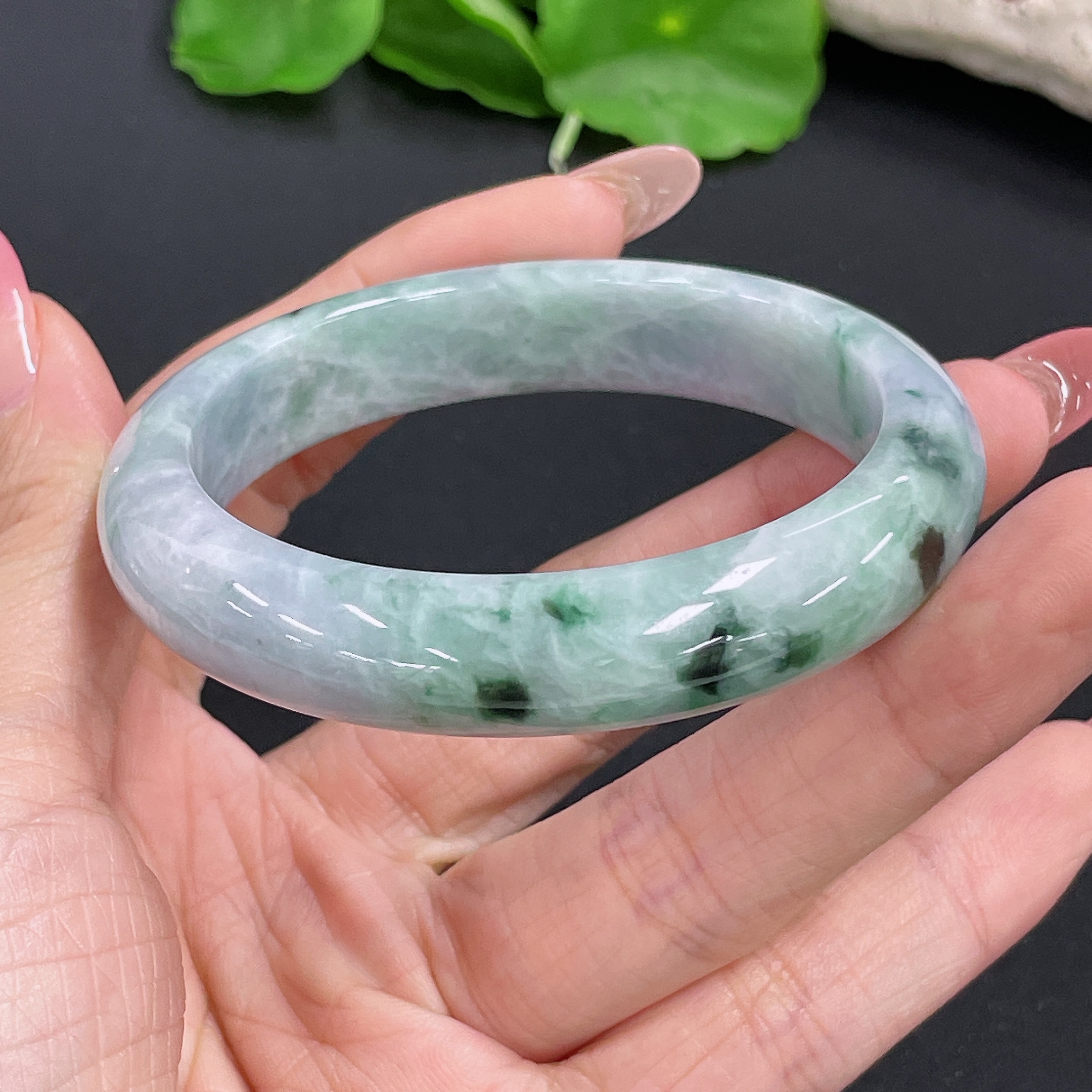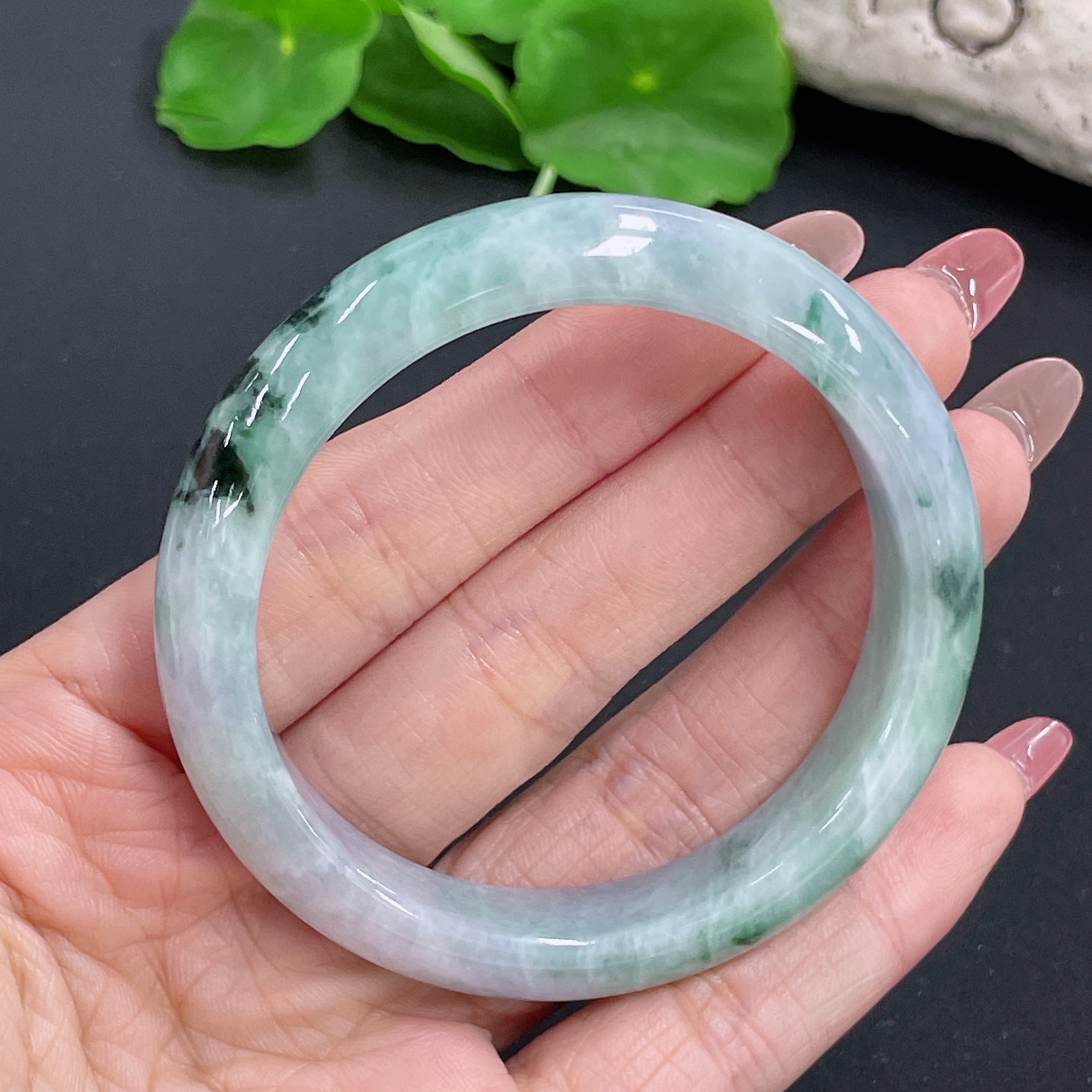Jadeite Round Bangle, Total Weight Approx. 48.92g, Size 54, Containing Other Mineral Components