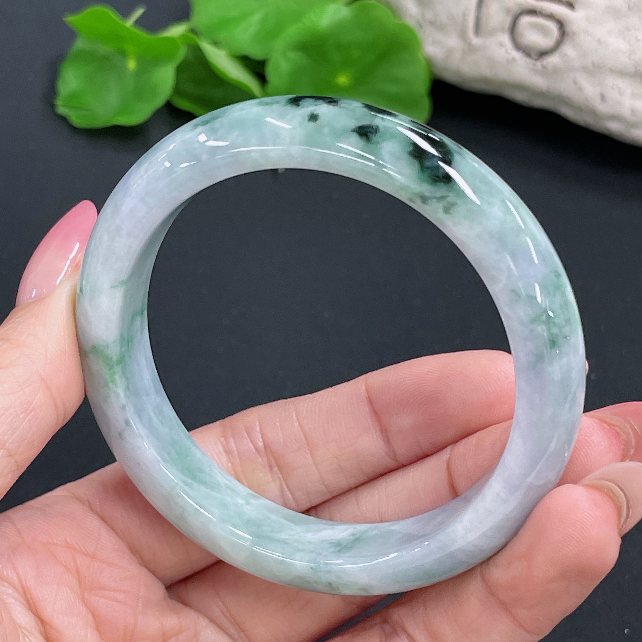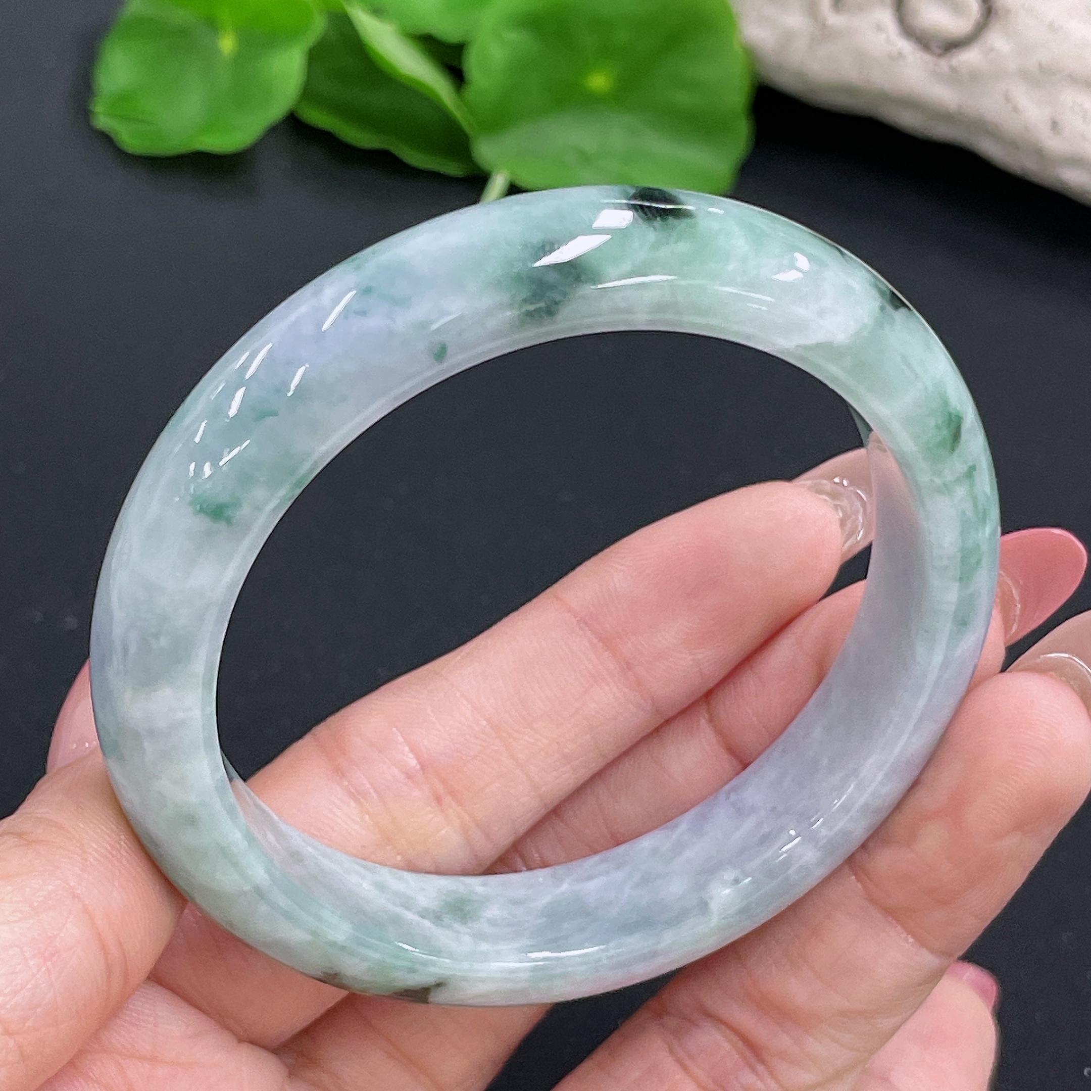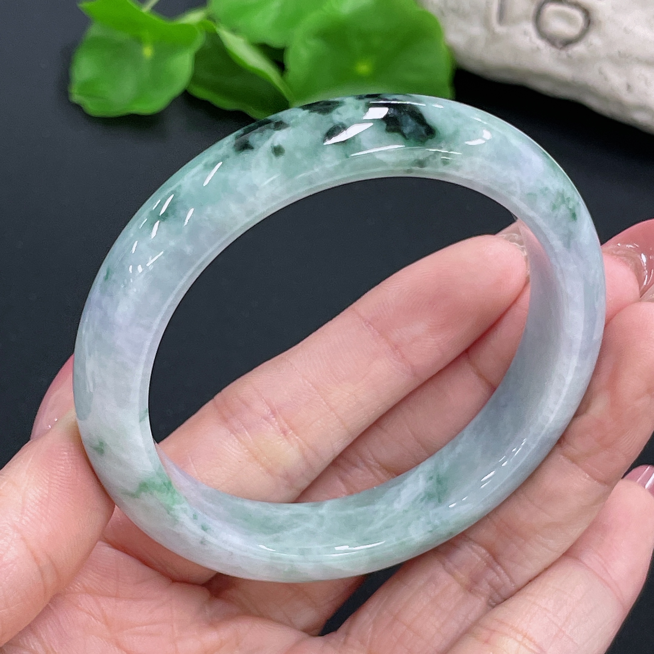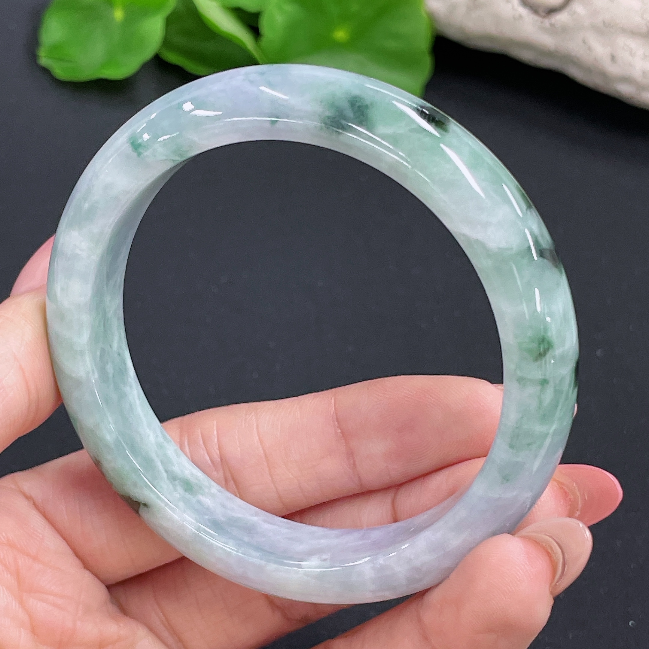 Jadeite Round Bangle, Total Weight Approx. 48.92g, Size 54, Containing Other Mineral Components