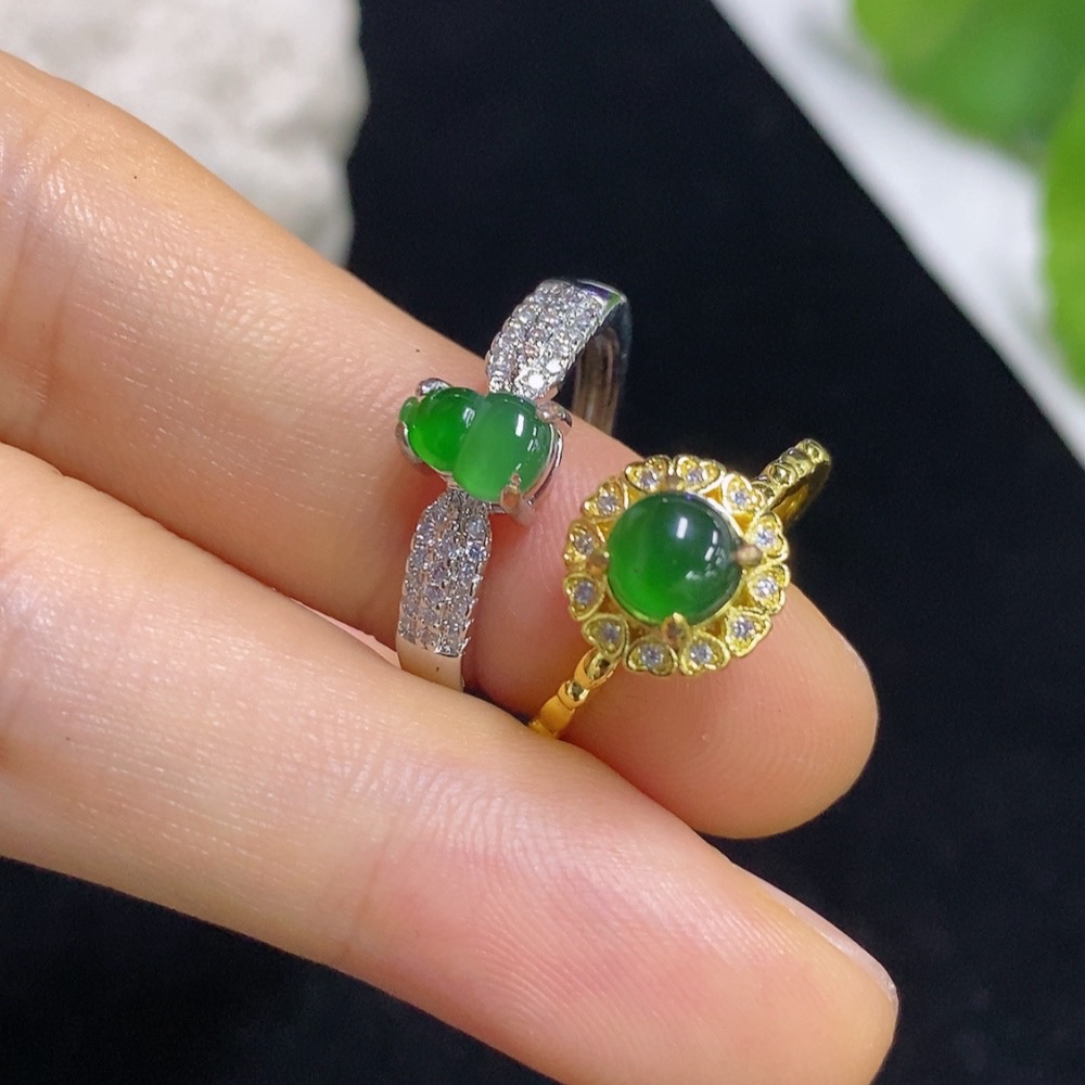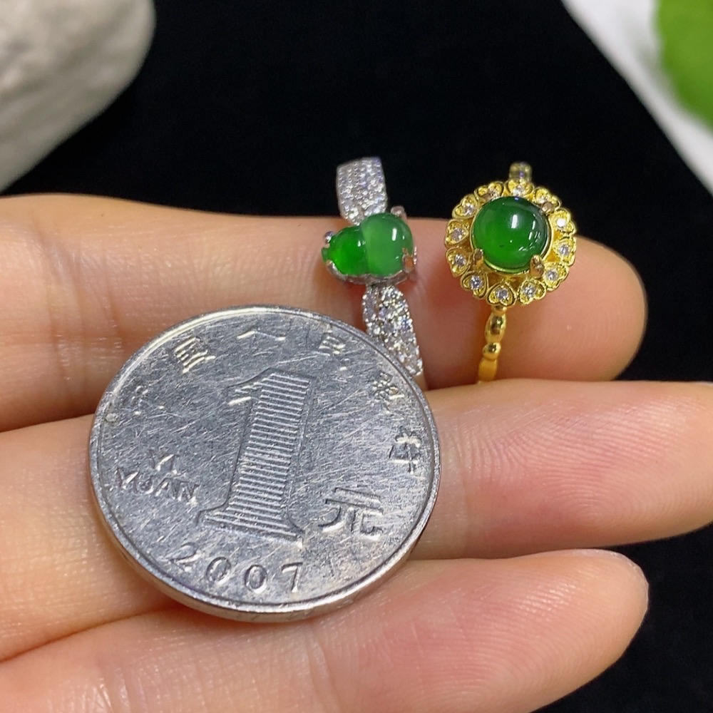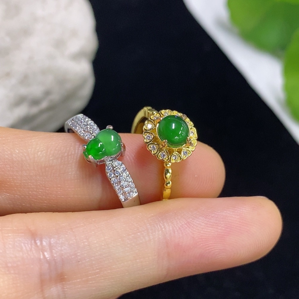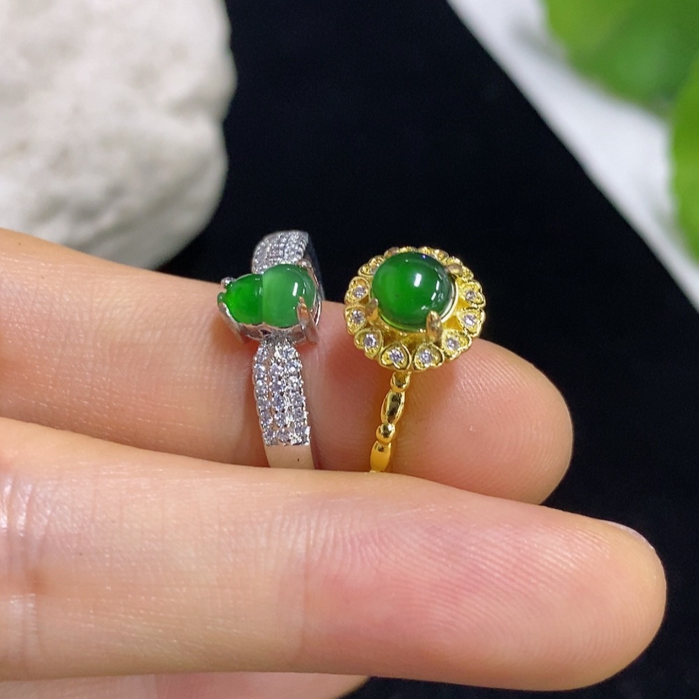Jadeite Inlaid Ring Non-Gold Adjustable Sell as a Lot