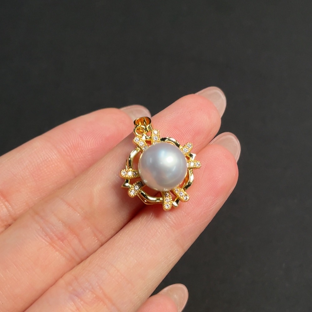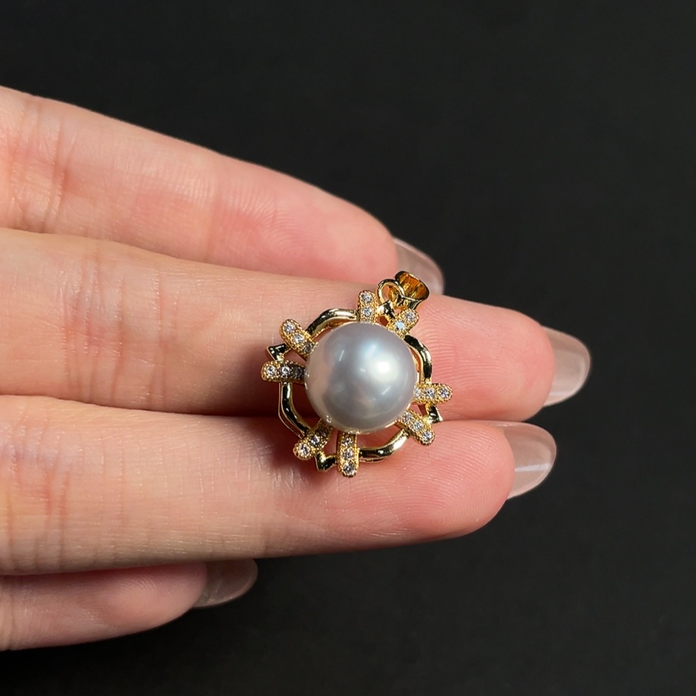 Seawater Pearl Pendant, Non-Gold Setting, Approx. 10.1mm, Total Weight About 3.94g, Color Origin Undetermined