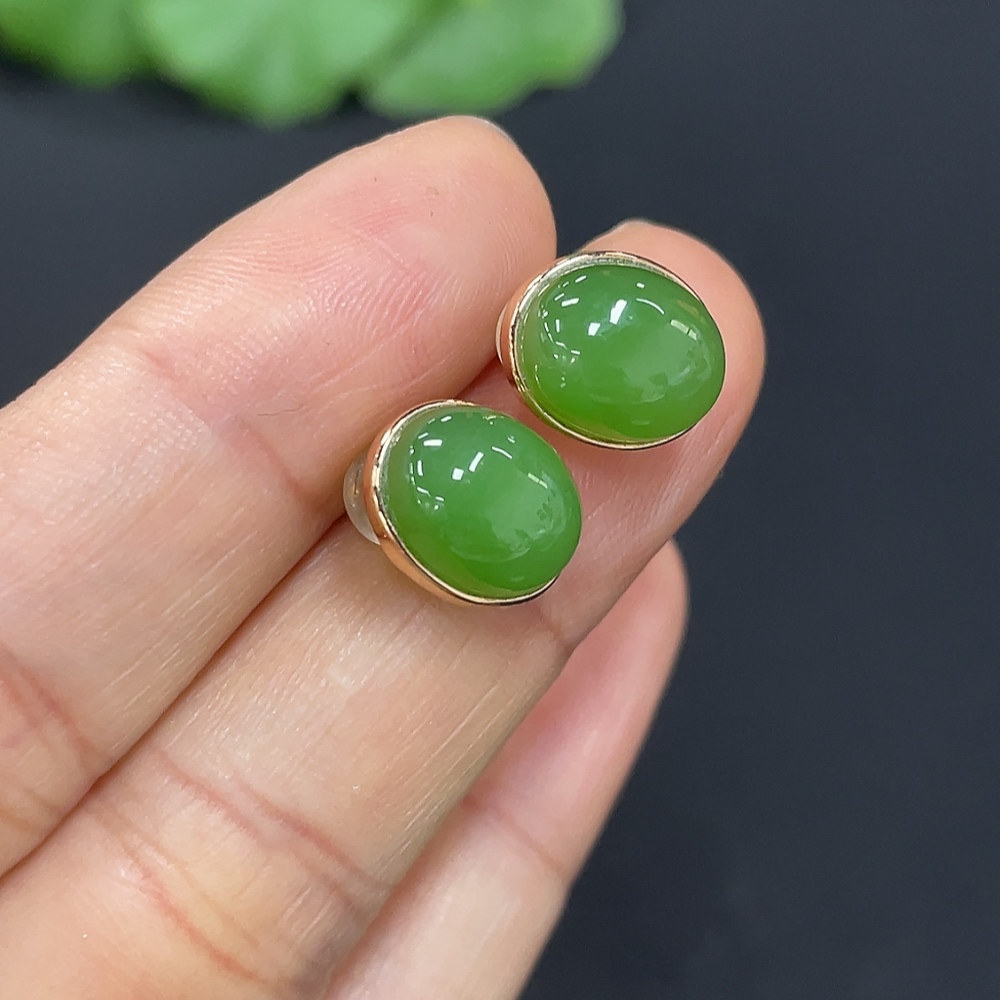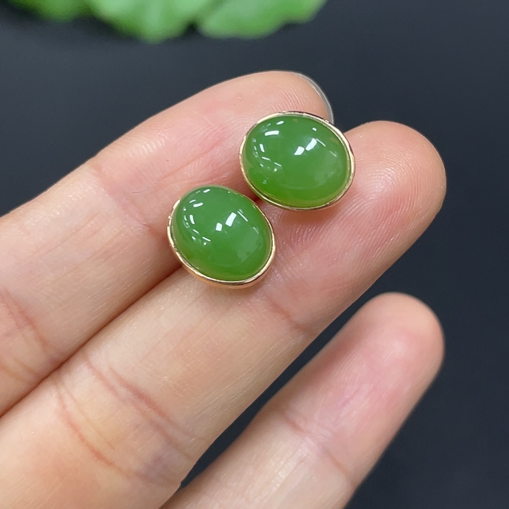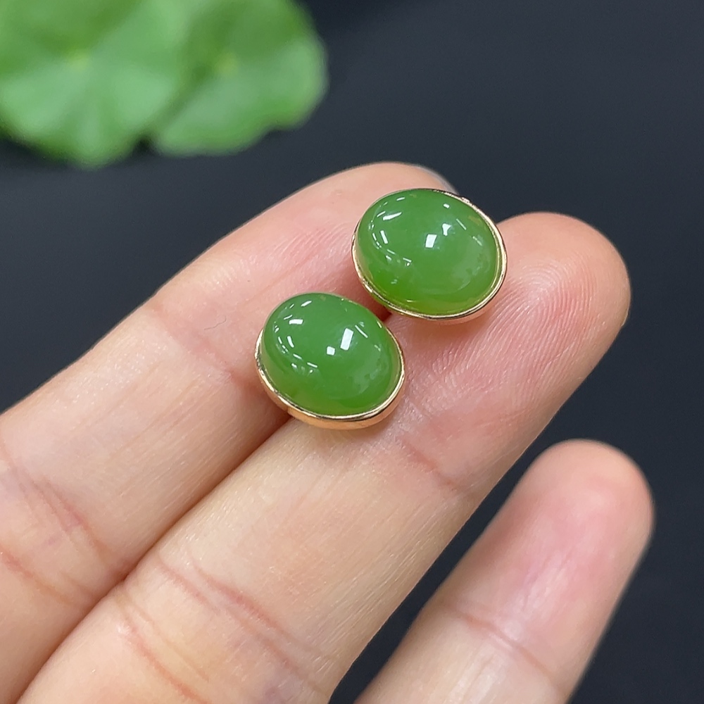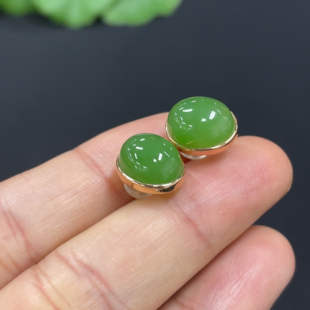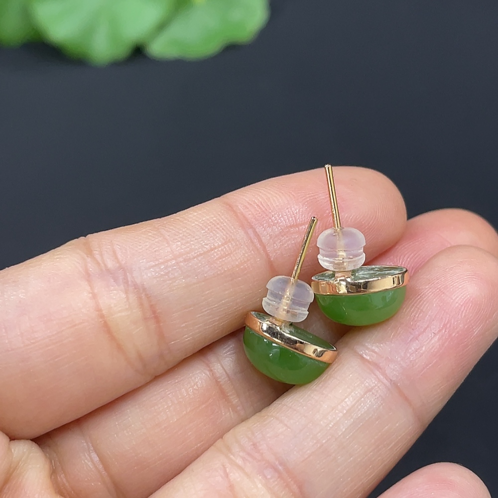 Hetian Jade Earrings (No Imprint, Gold Content 75%, Total Weight Approx. 2.5g Including Ear Stoppers)