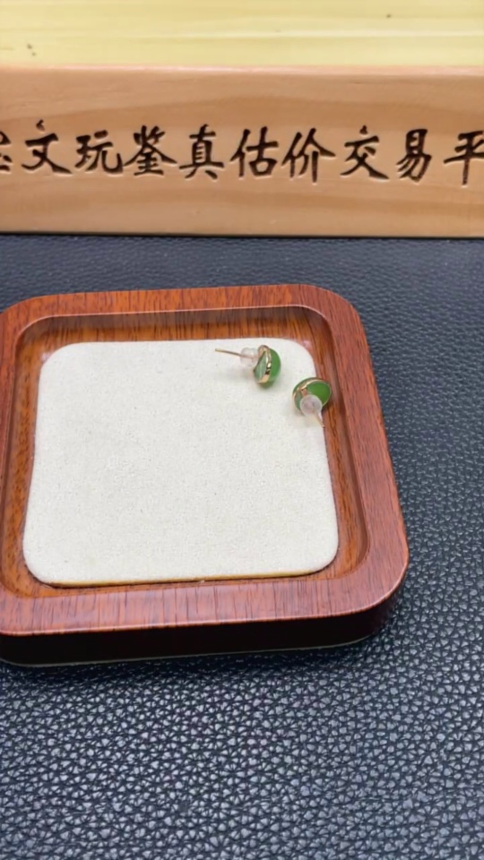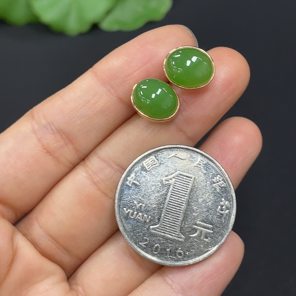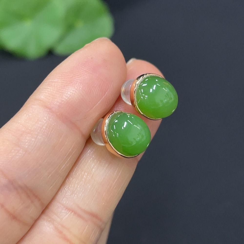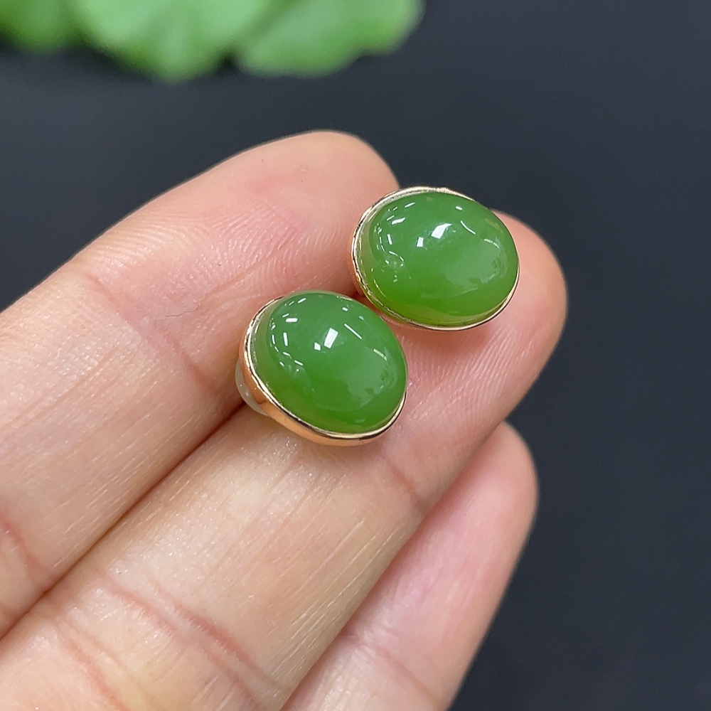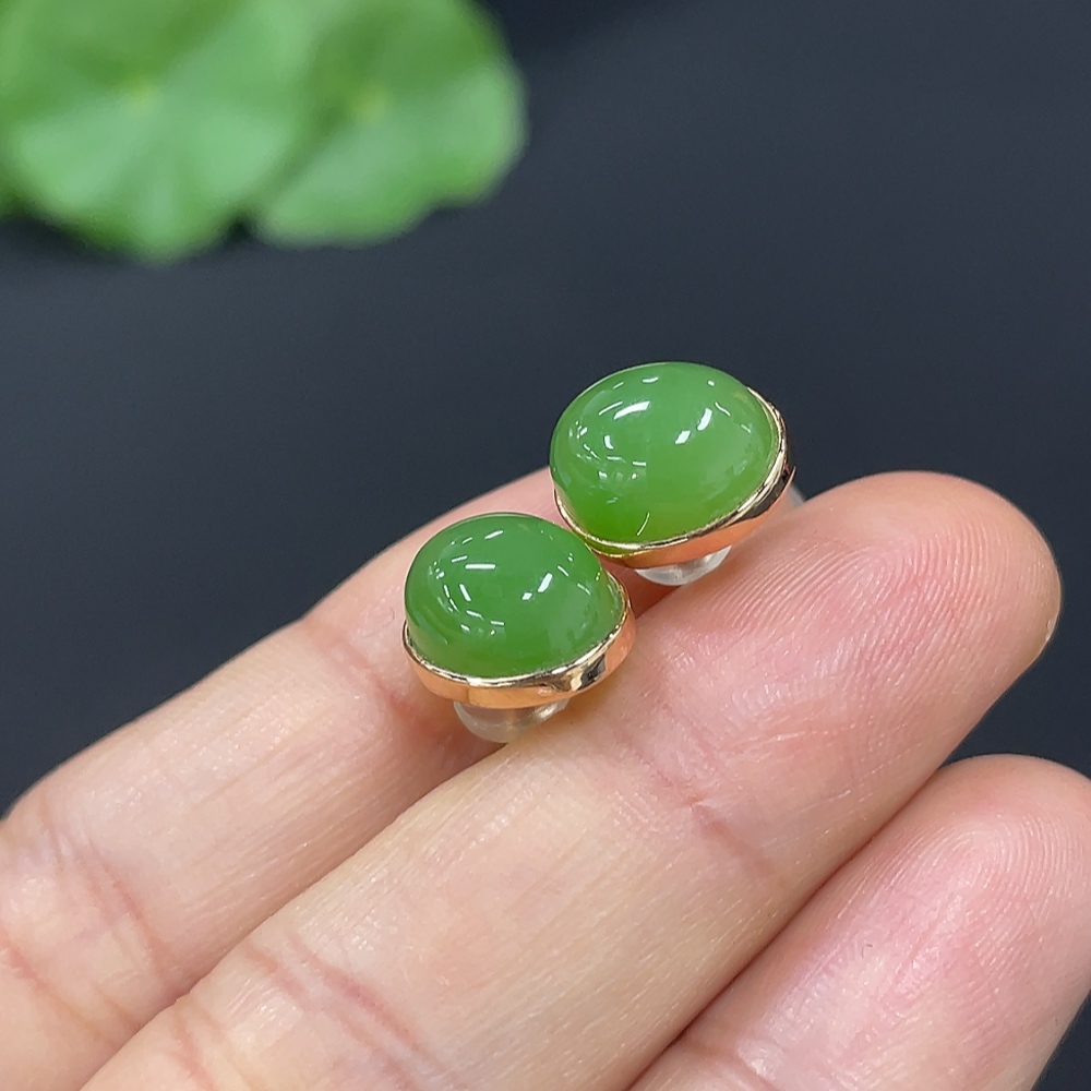 Hetian Jade Earrings (No Imprint, Gold Content 75%, Total Weight Approx. 2.5g Including Ear Stoppers)