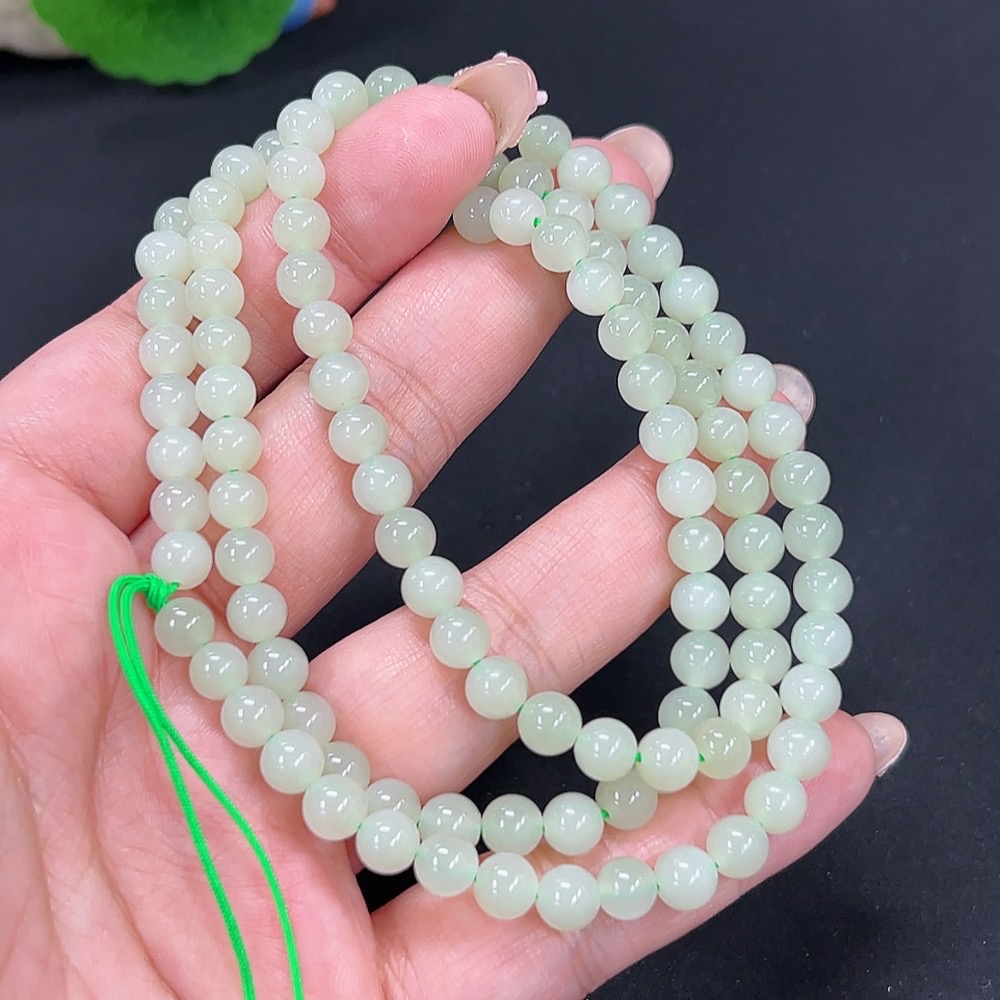 Hetian Jade Beaded Necklace, Approx. 5.8mm, Total Weight Approx. 36.4g