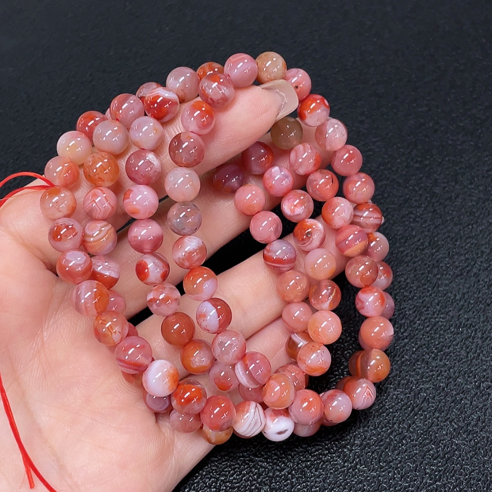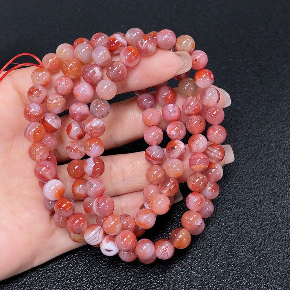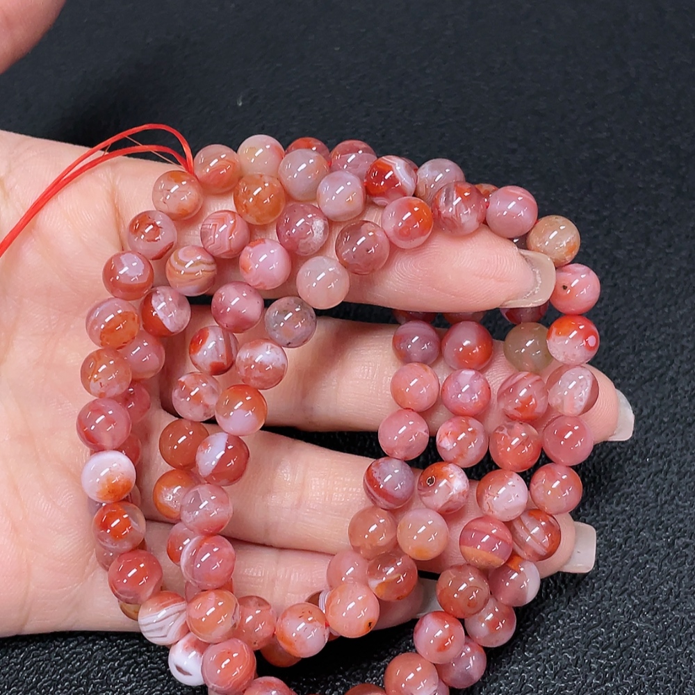 Red Agate Bead Strand with Visible Organic Matter, Total Weight Approx. 53.49g, Size 7mm