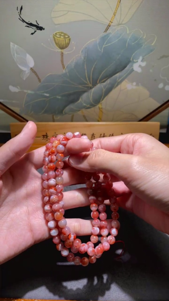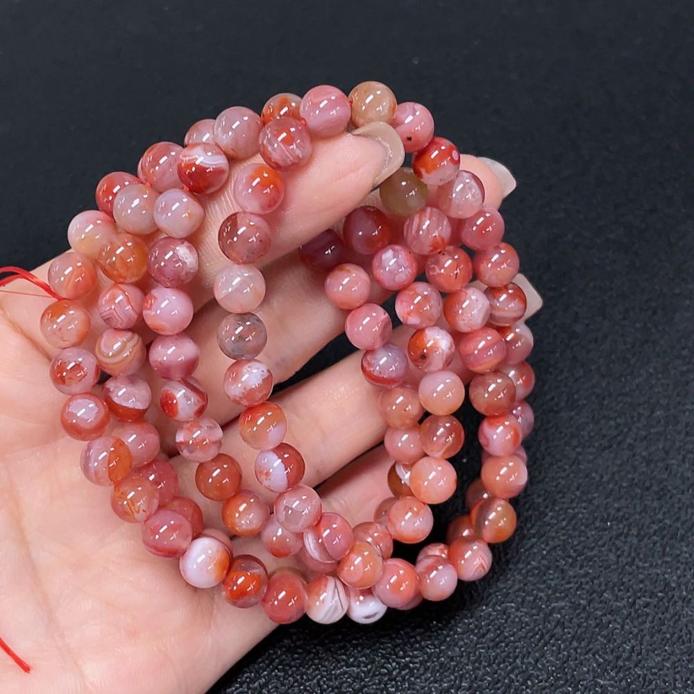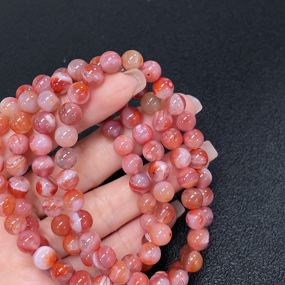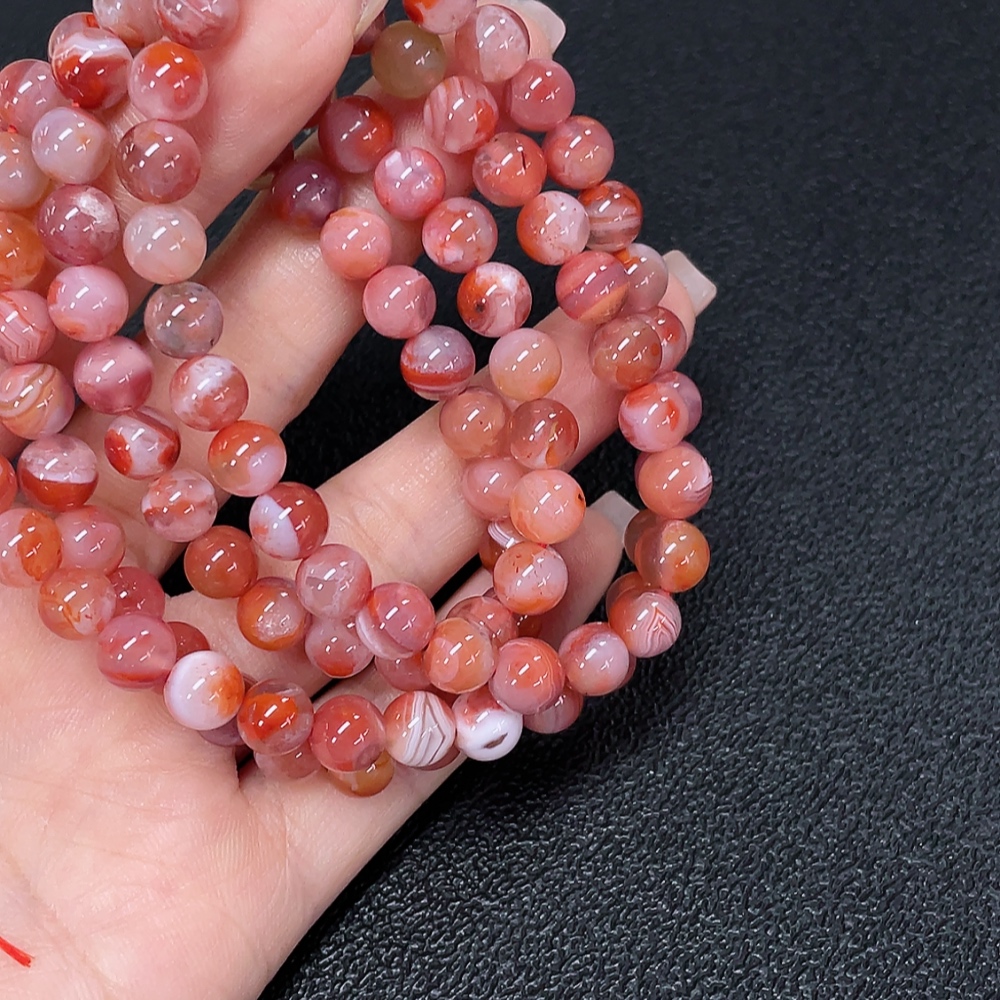 Red Agate Bead Strand with Visible Organic Matter, Total Weight Approx. 53.49g, Size 7mm