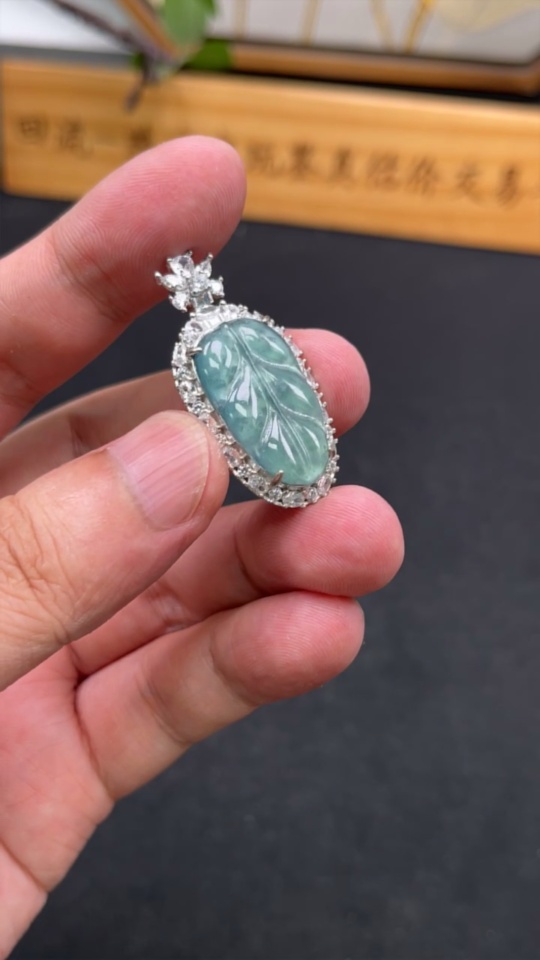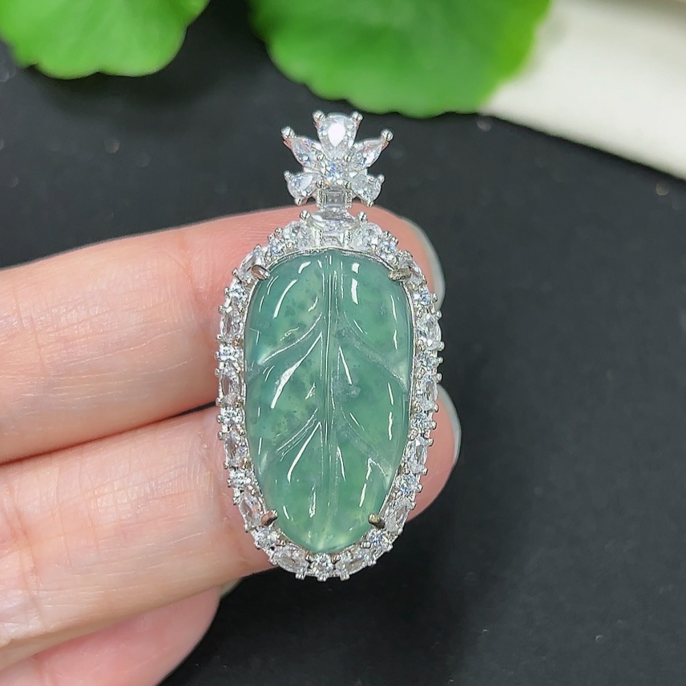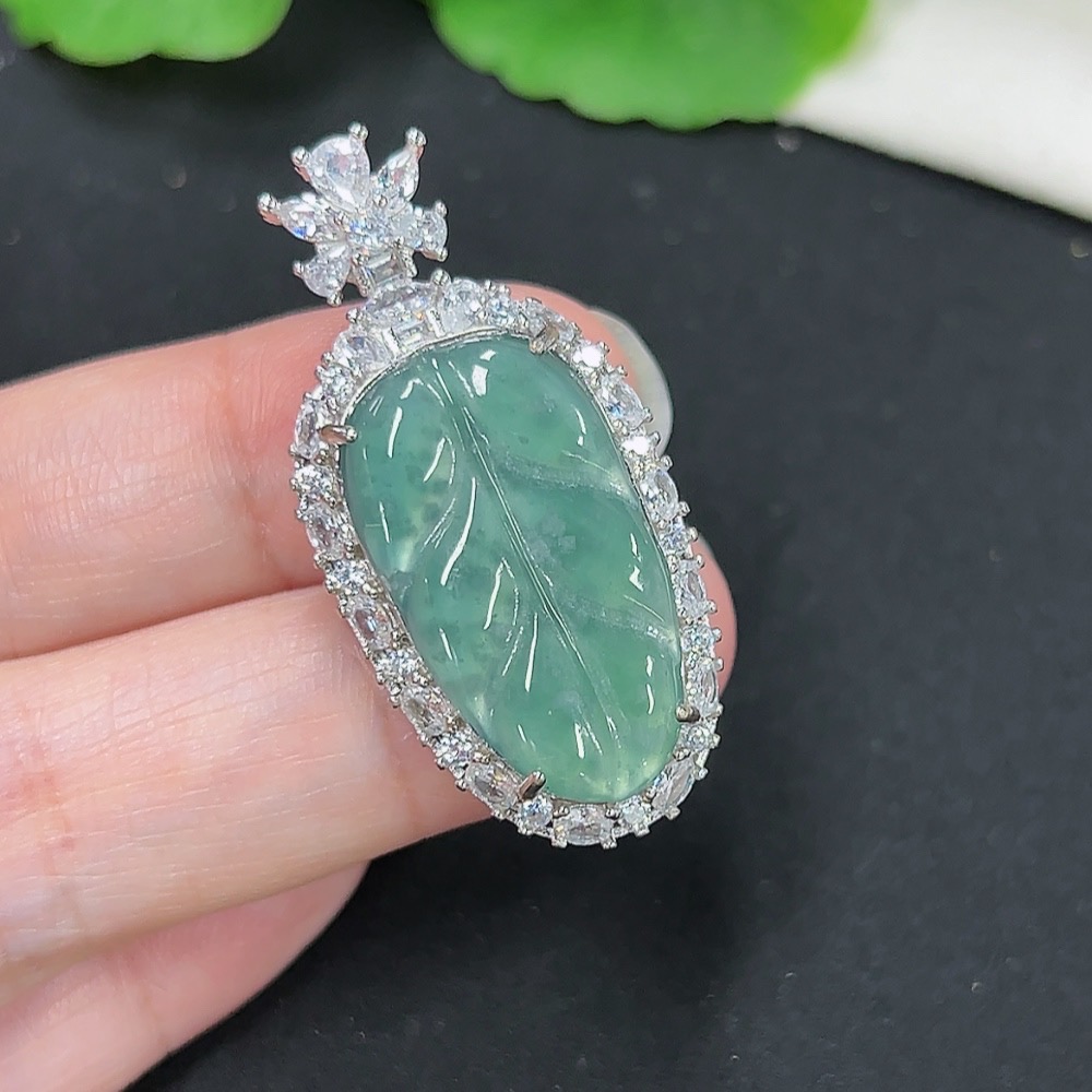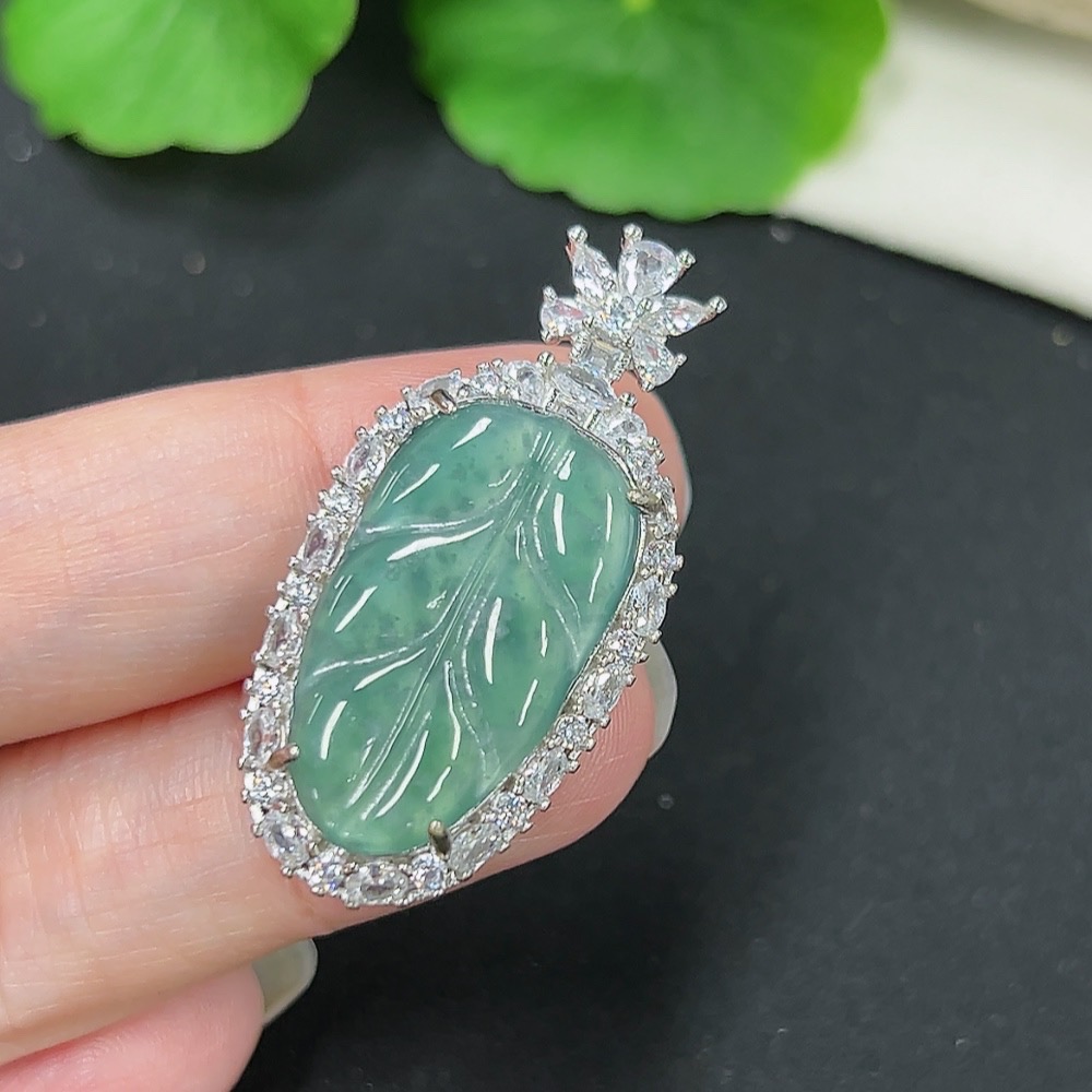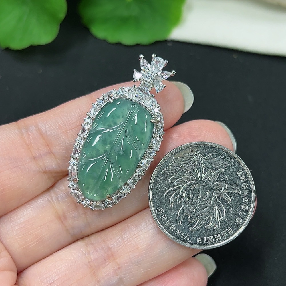 Jadeite Leaf Inlay Pendant Non-Gold Inlay Total Weight Approx. 5.85g