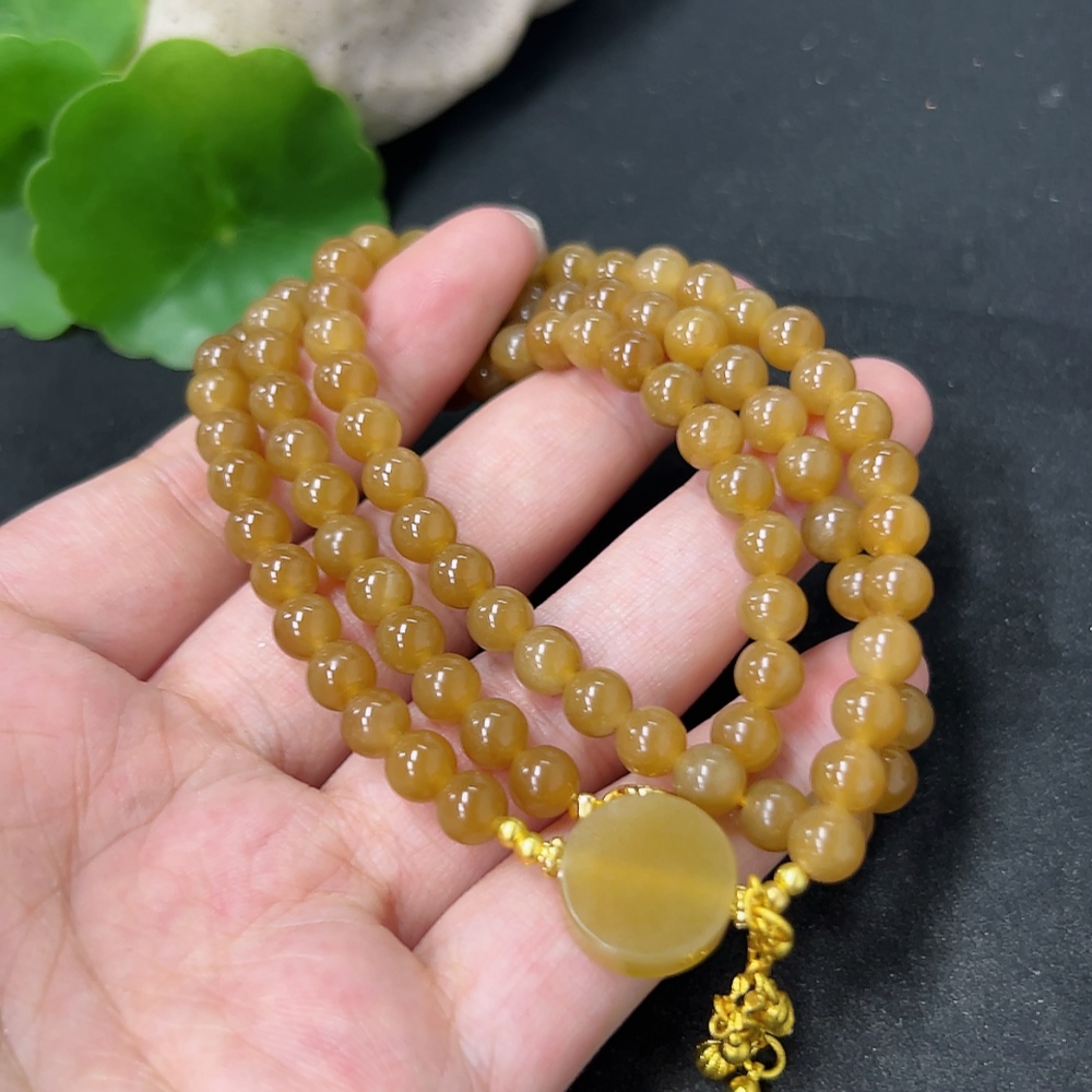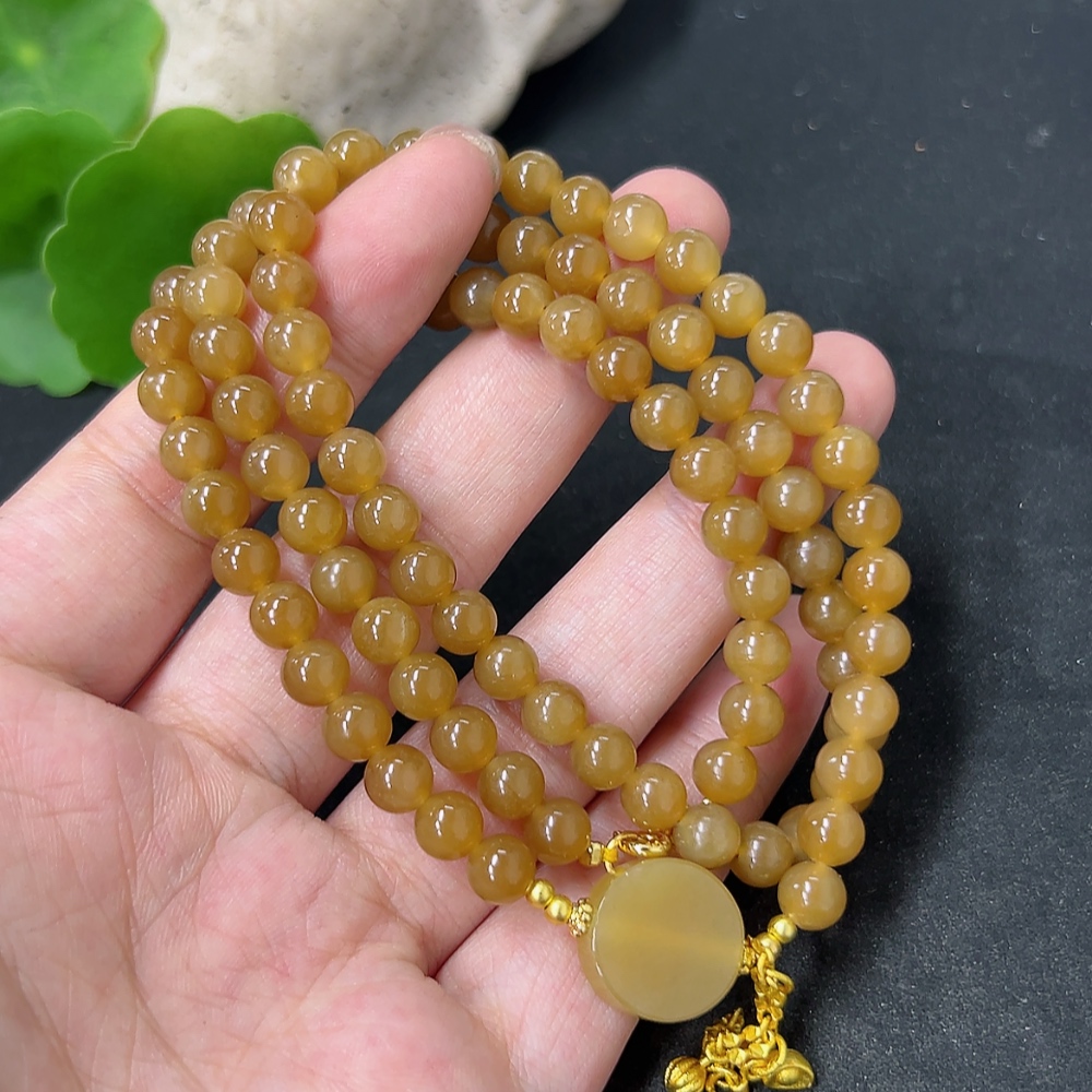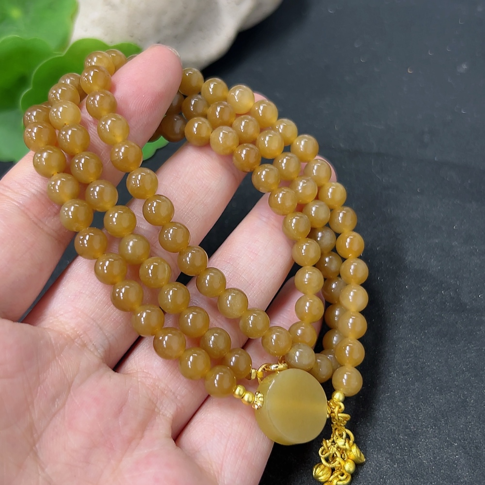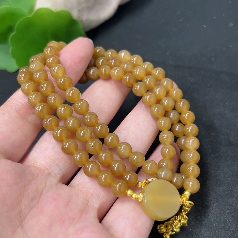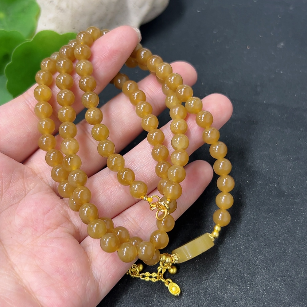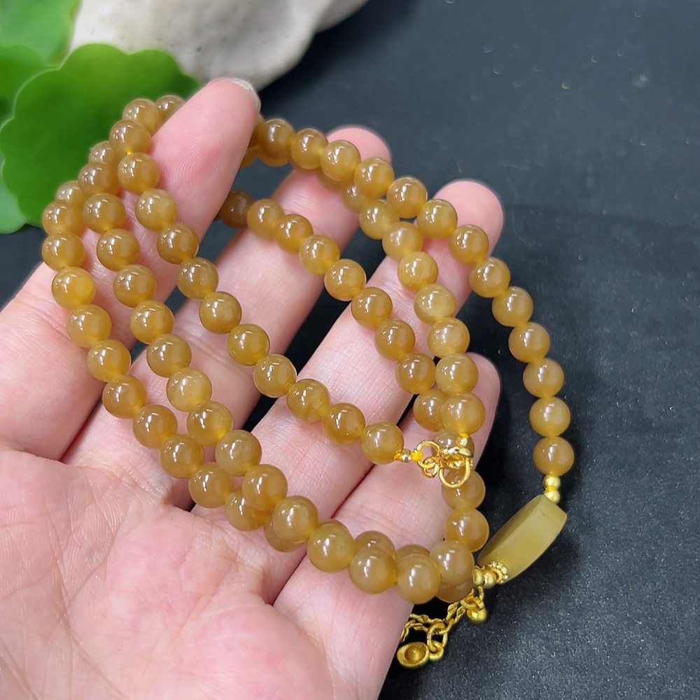 Hetian Jade Bead Necklace Approx. 5.8mm Total Weight Approx. 33.6g Non-Gold