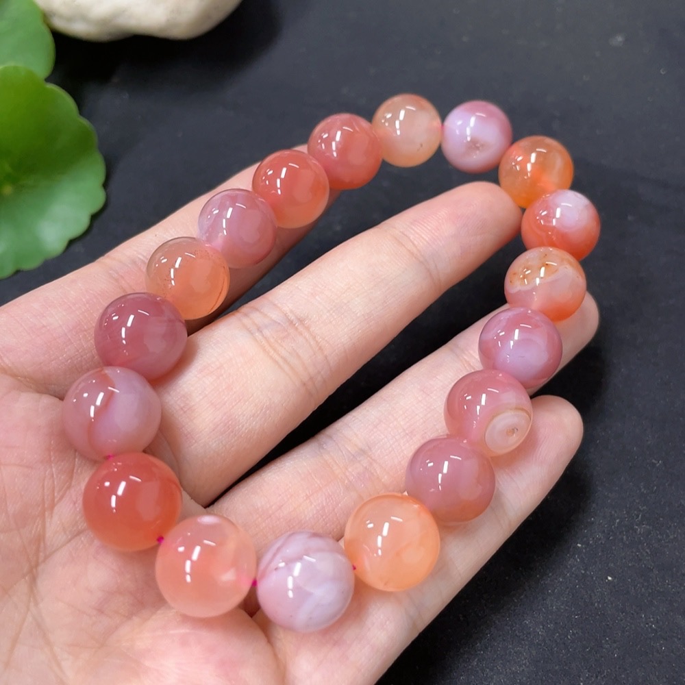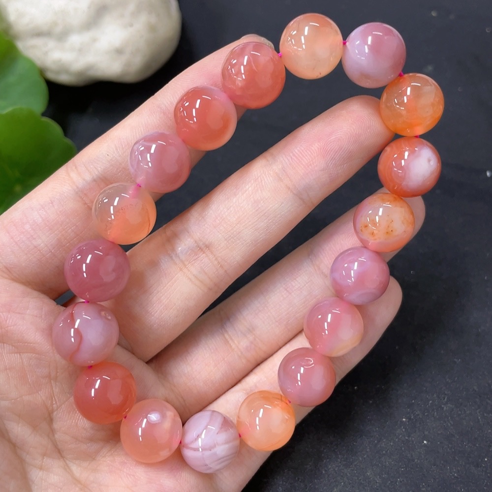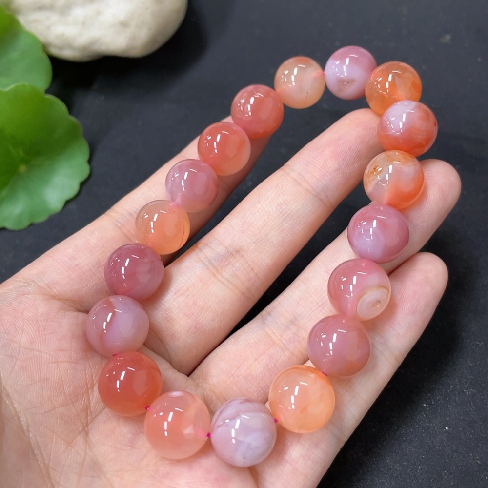 Salt Source Agate Bead Bracelet, approx. 11.3mm, total weight approx. 39g, visible organic matter