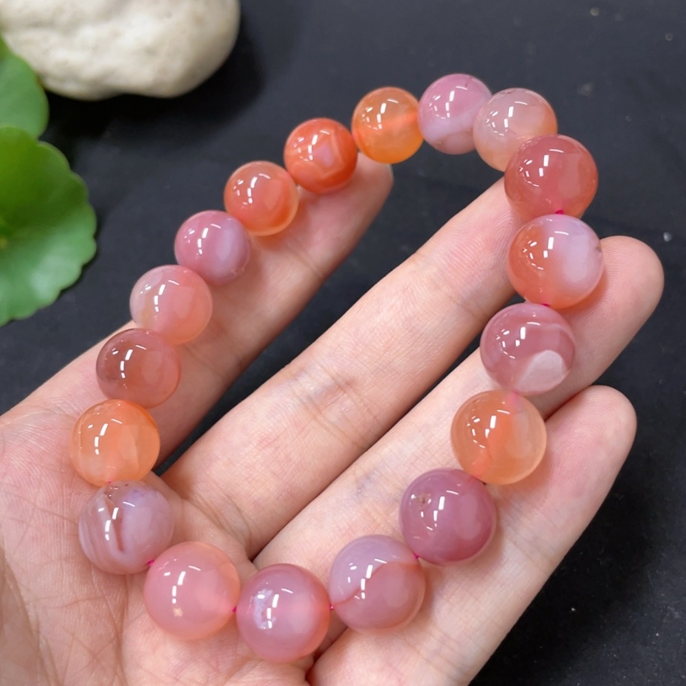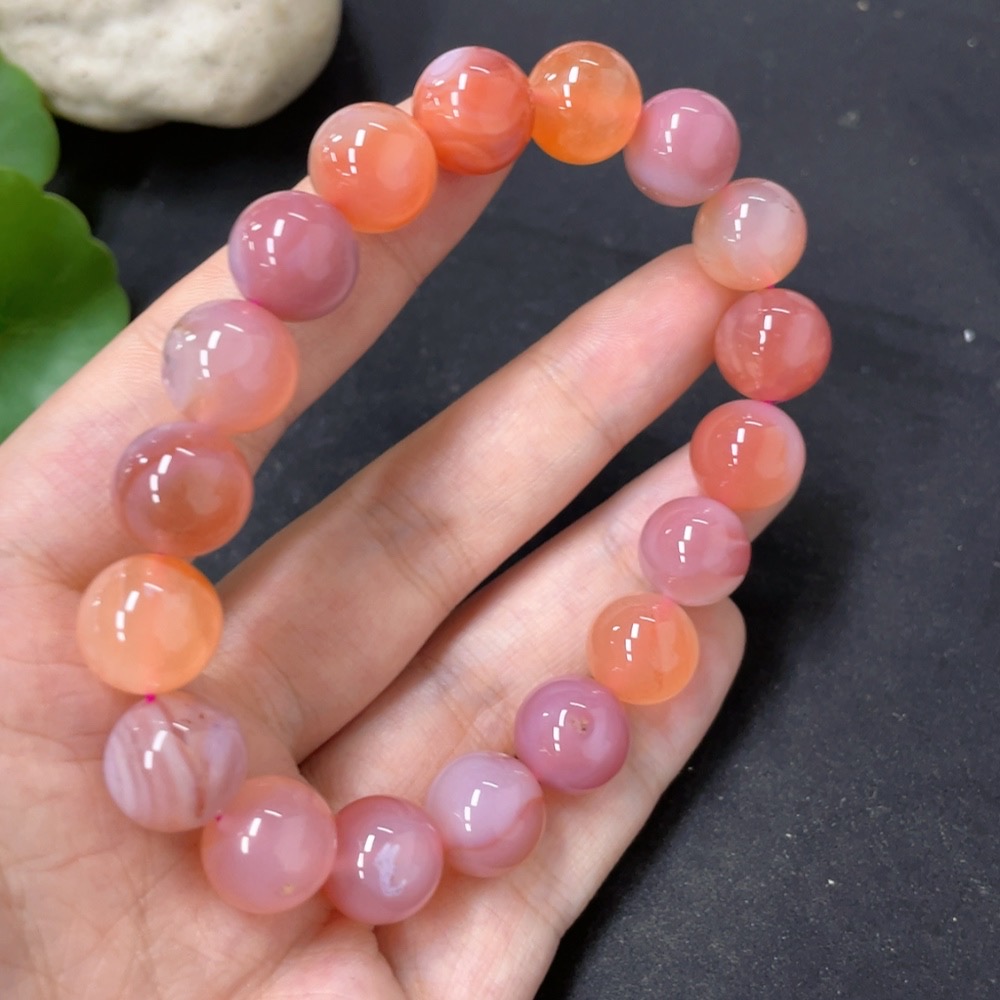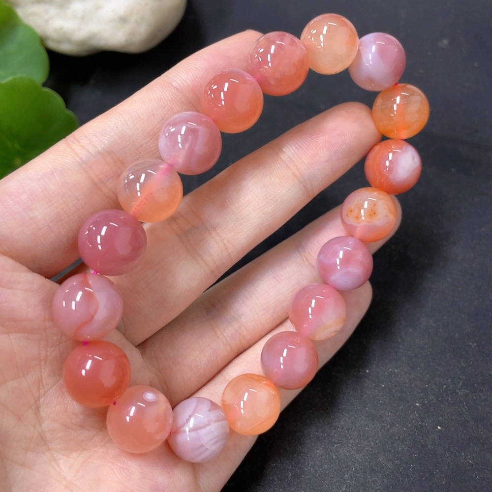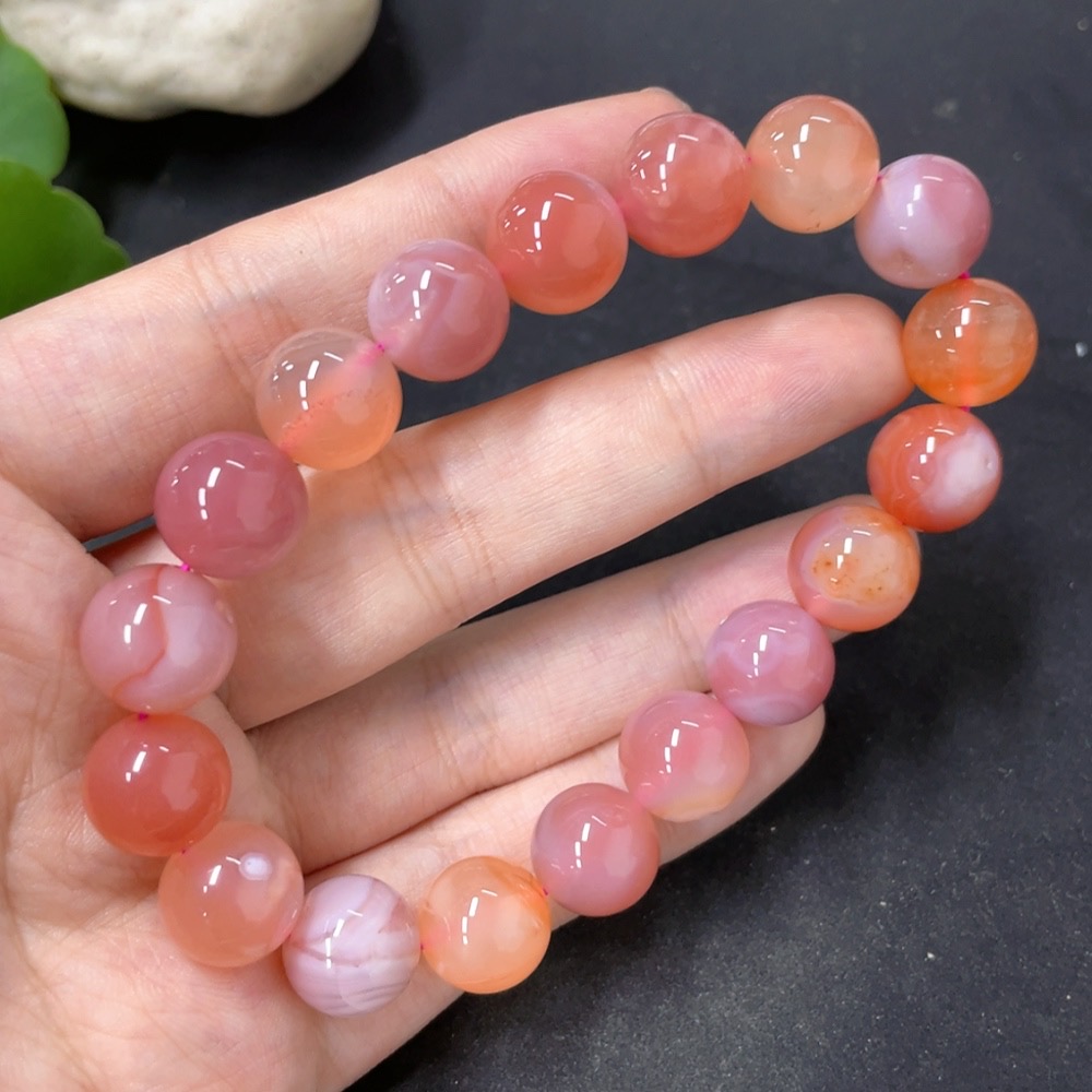 Salt Source Agate Bead Bracelet, approx. 11.3mm, total weight approx. 39g, visible organic matter