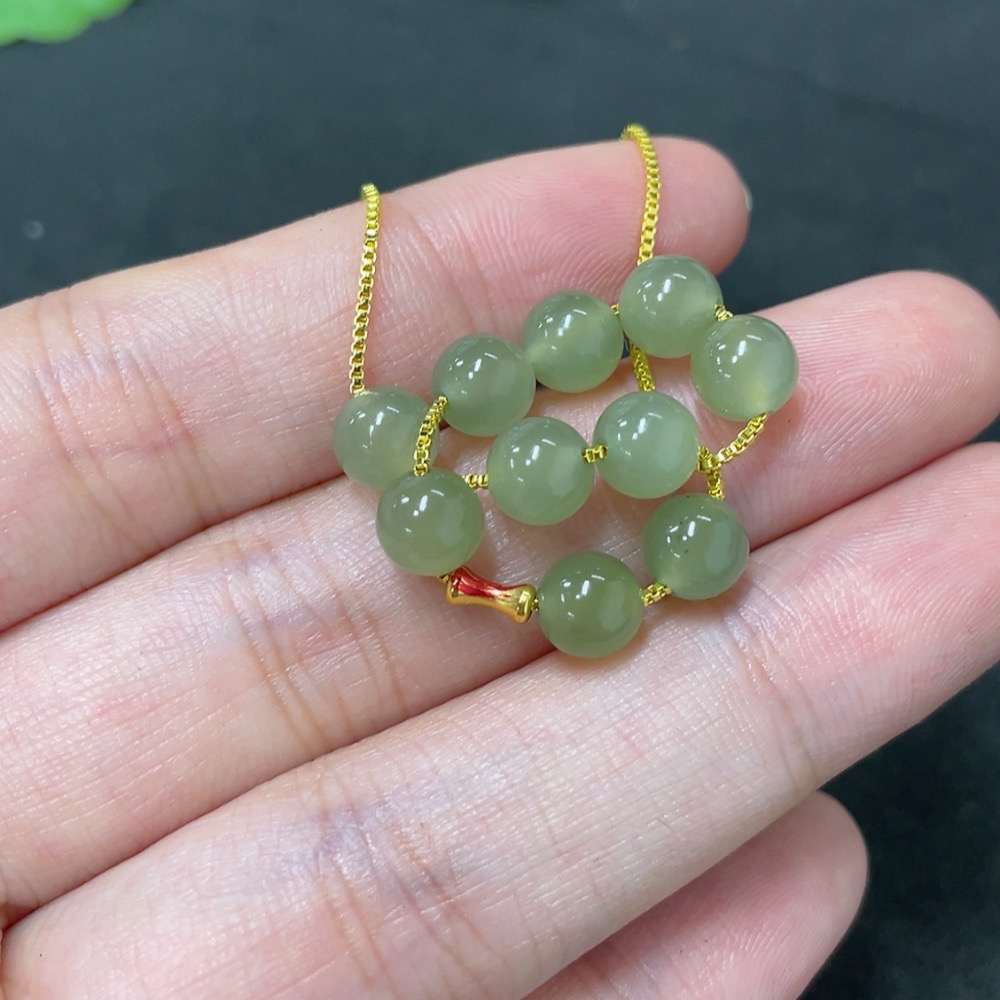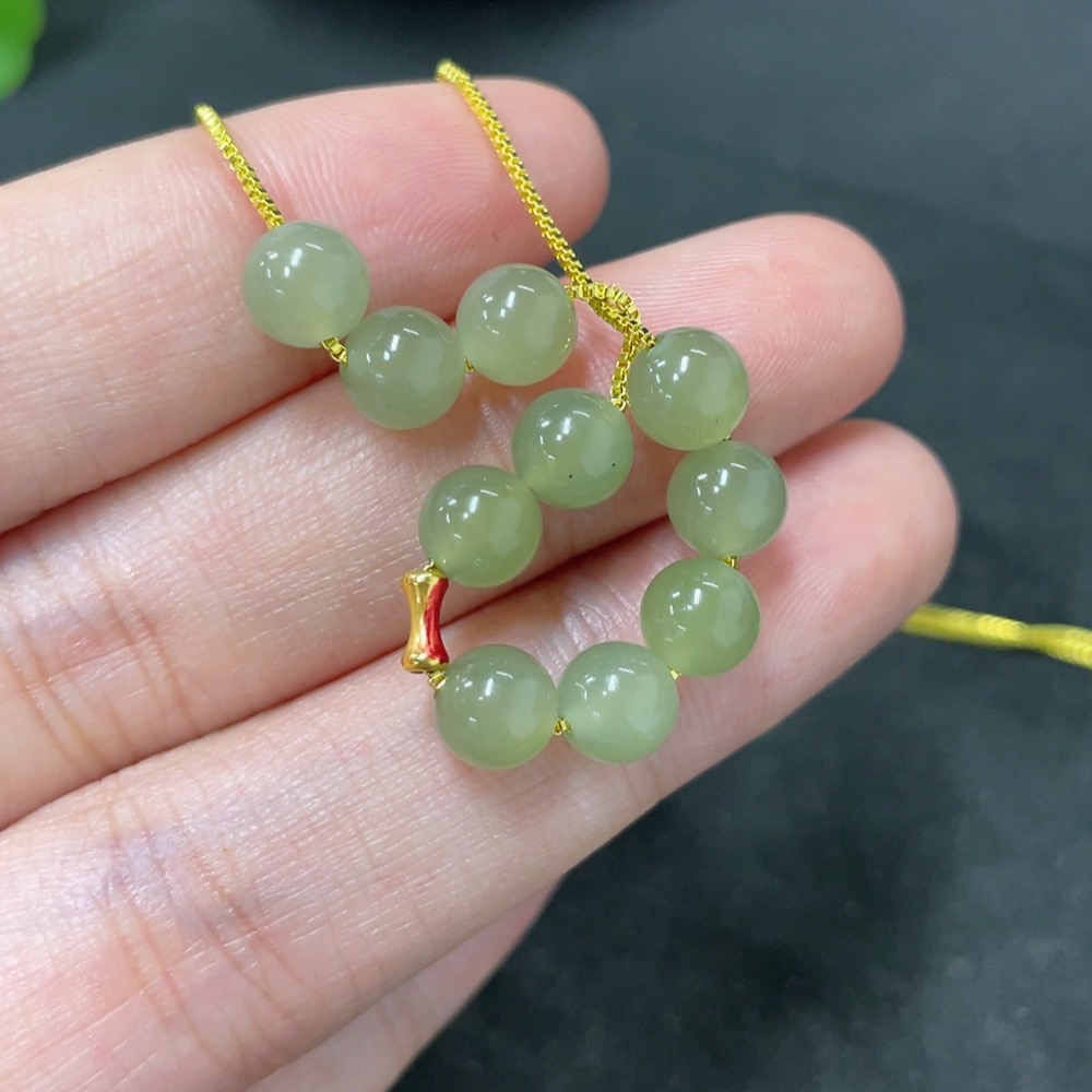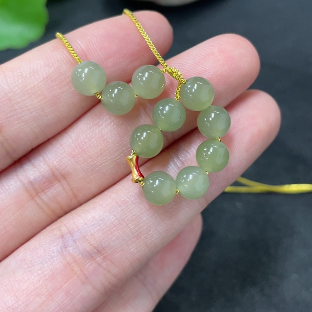 Hetian Jade Inlaid Necklace Unmarked Gold Content Marked in Red 18k Gold Non-Gold Rest Carat 5.8mm Approx Total Weight Approx 5.1g Including Chain