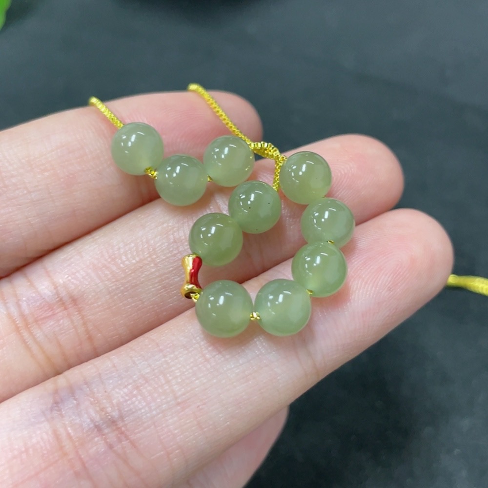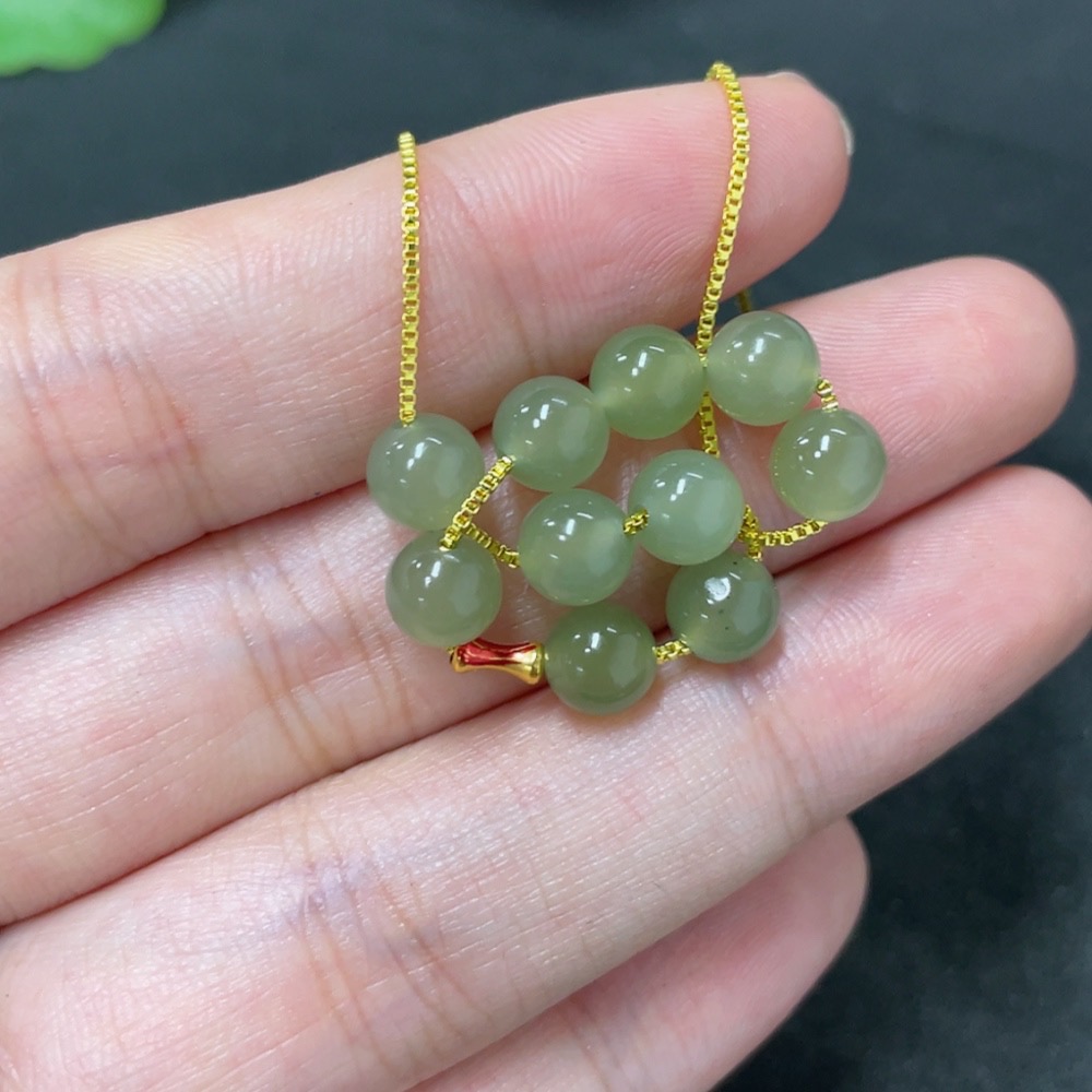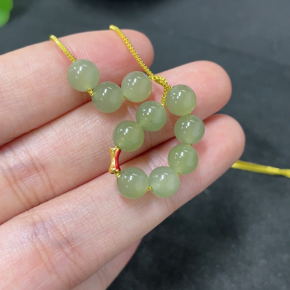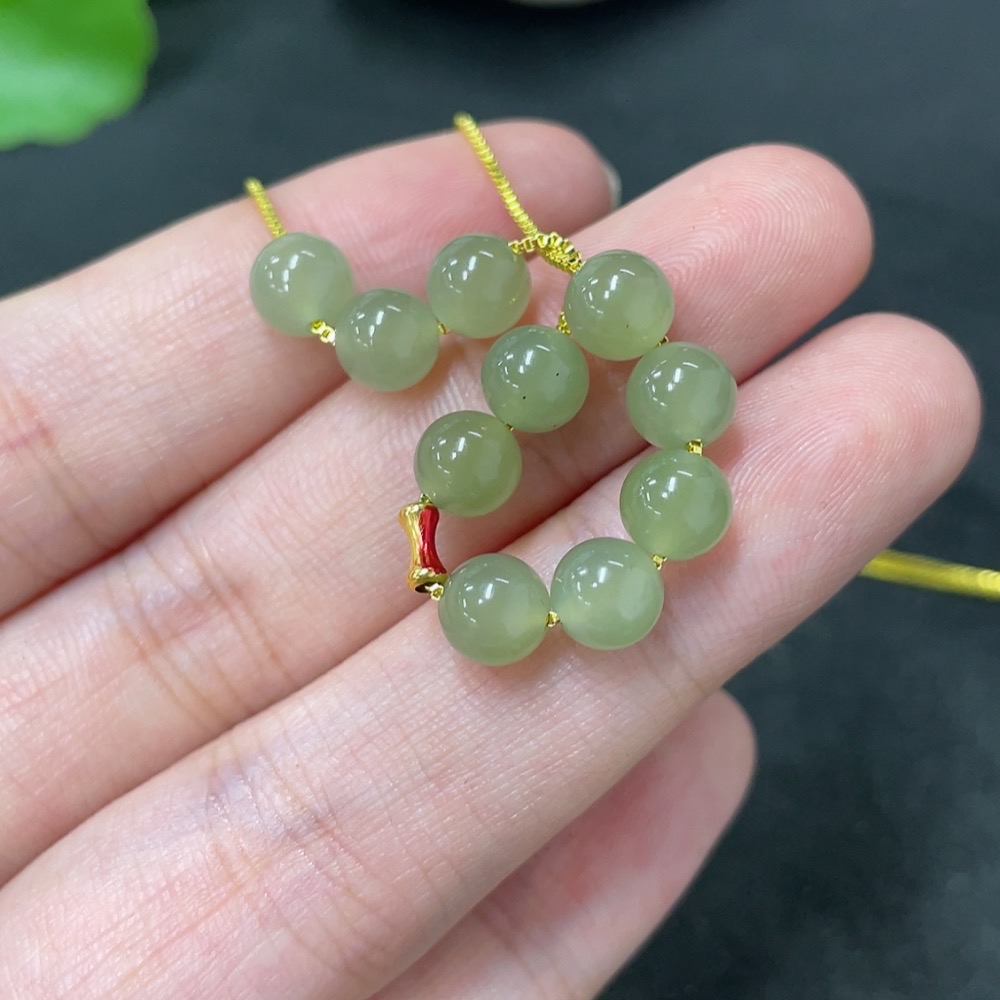 Hetian Jade Inlaid Necklace Unmarked Gold Content Marked in Red 18k Gold Non-Gold Rest Carat 5.8mm Approx Total Weight Approx 5.1g Including Chain