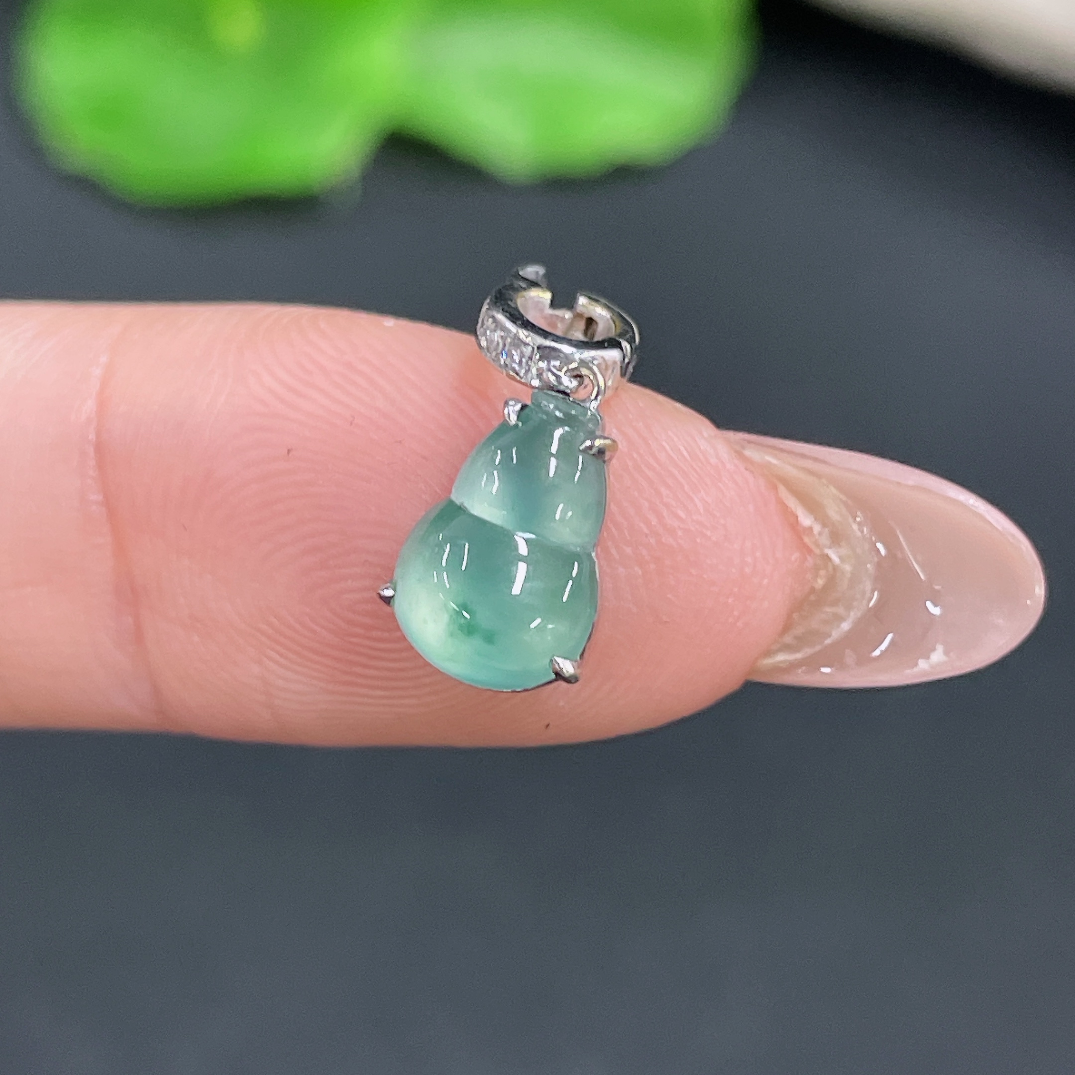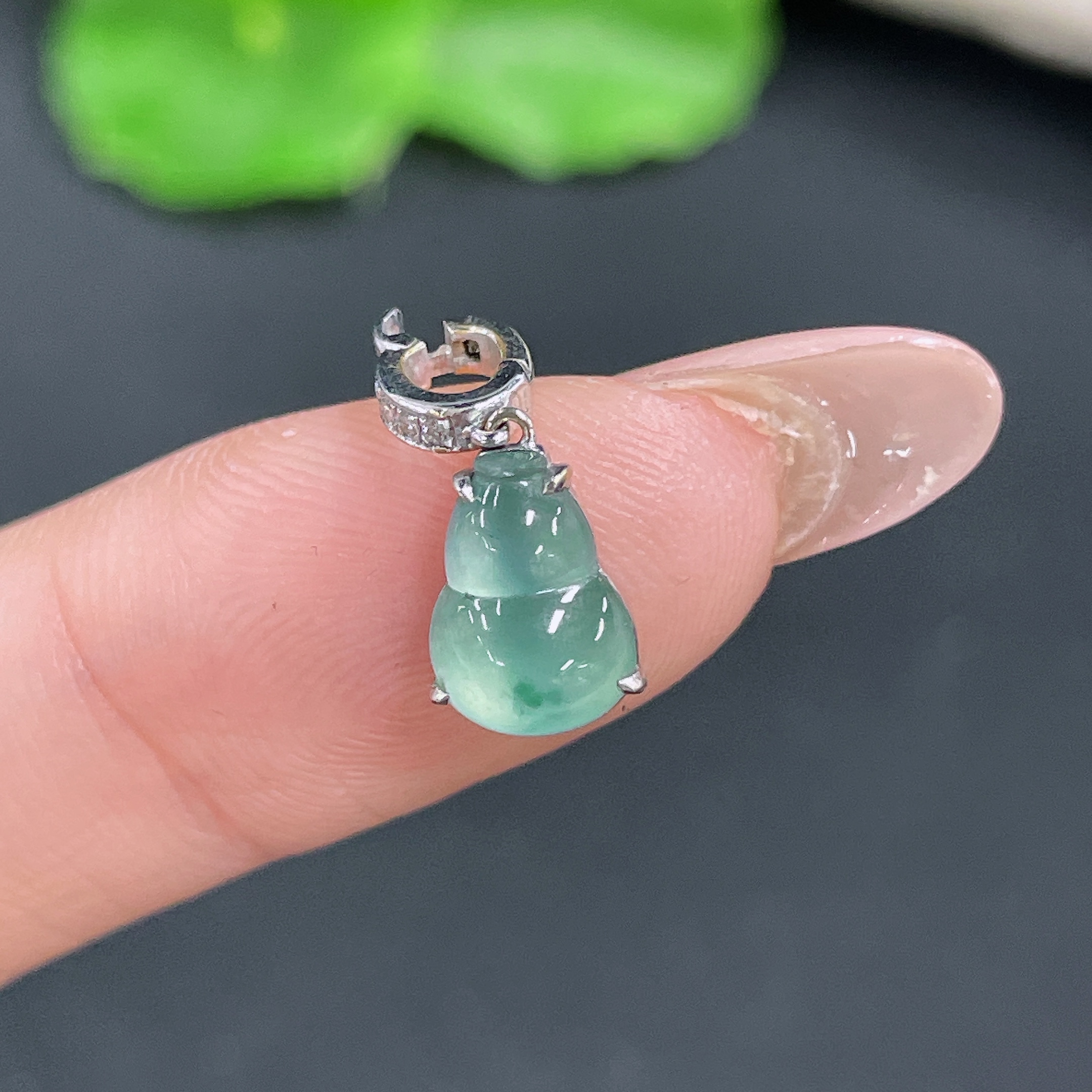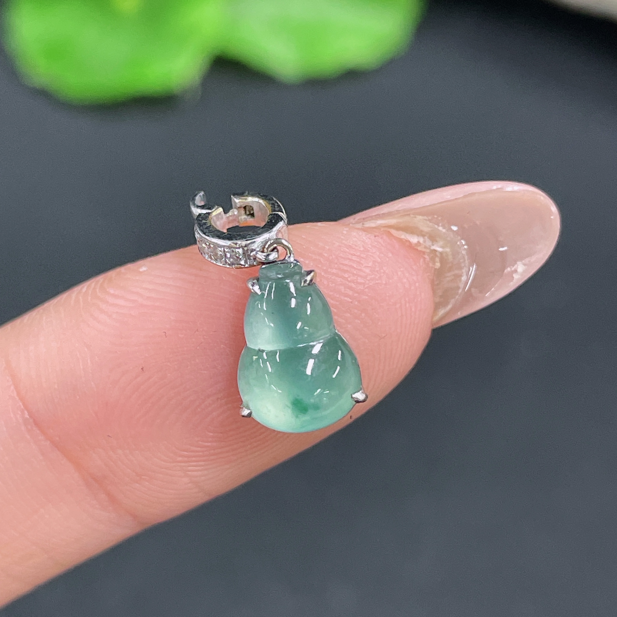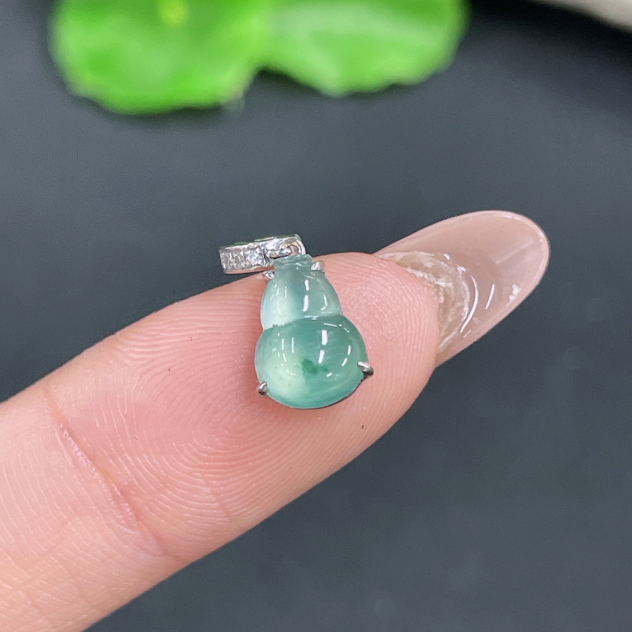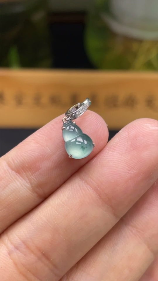 Jadeite Gourd Pendant 18k Gold Inlaid with Diamonds Total Weight Approx. 1.15g
