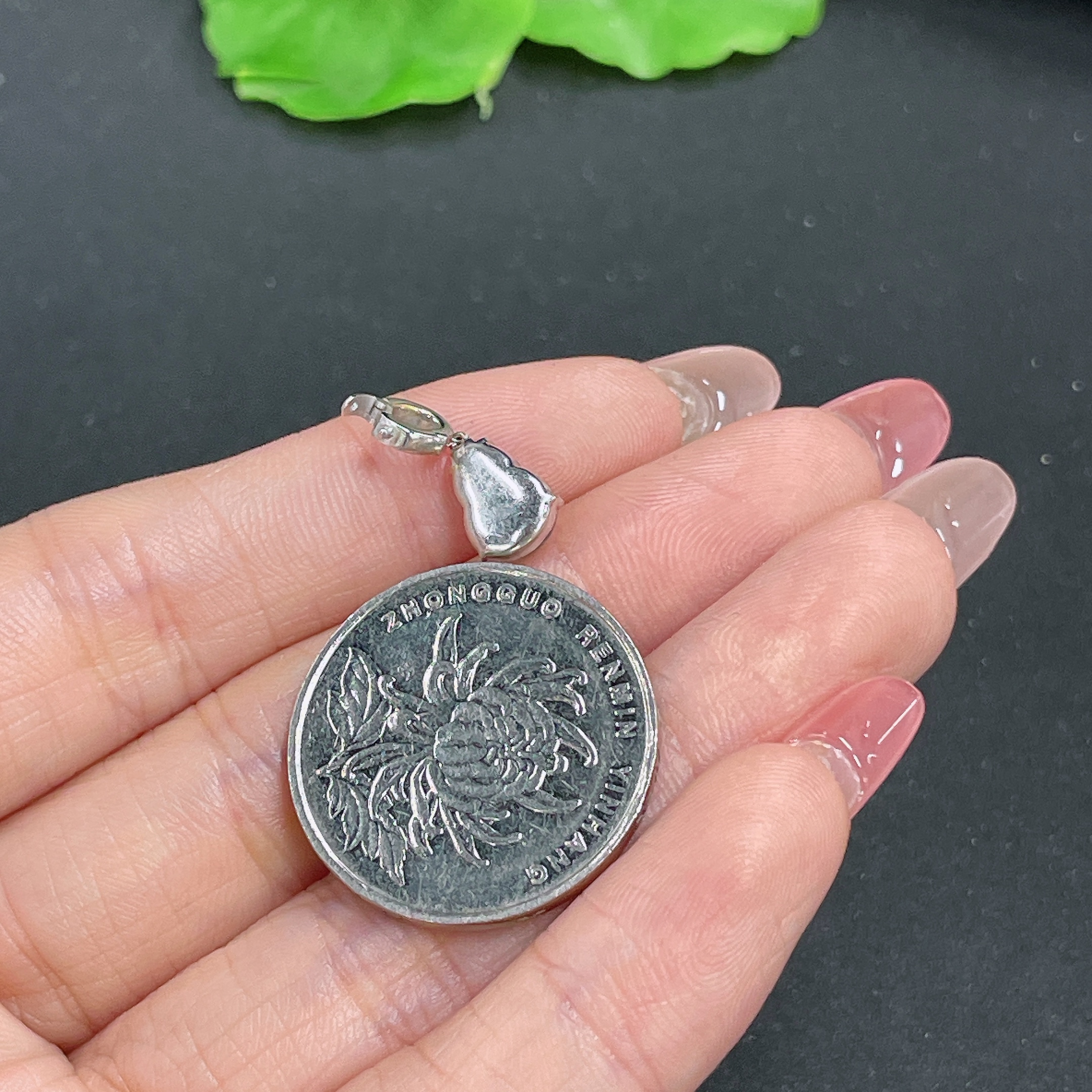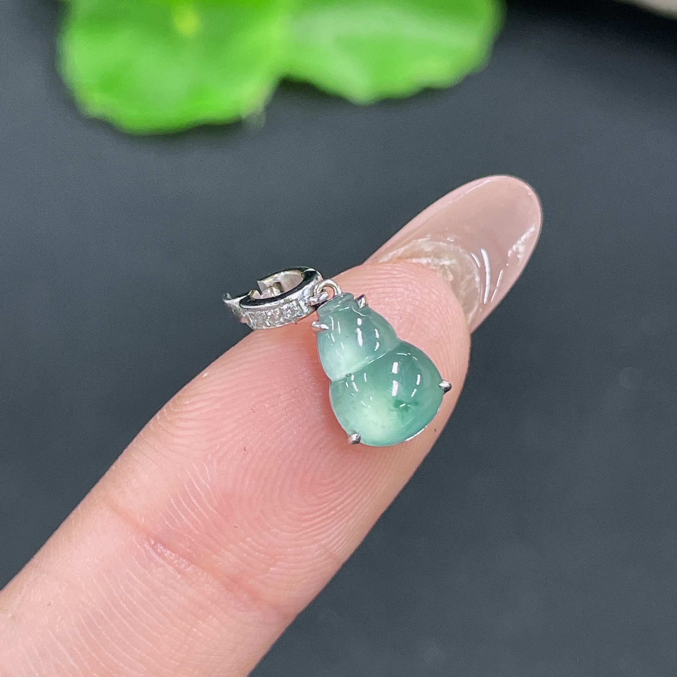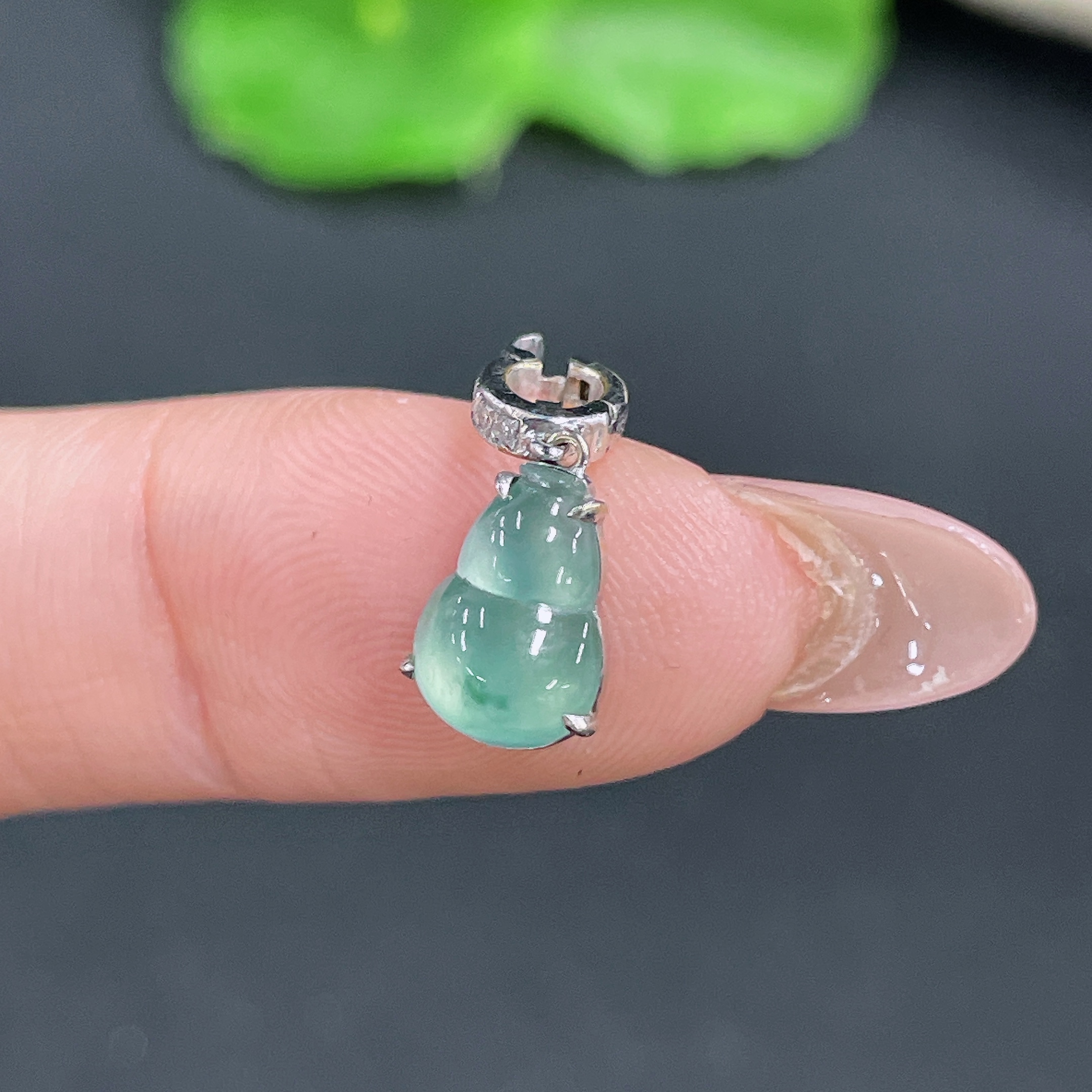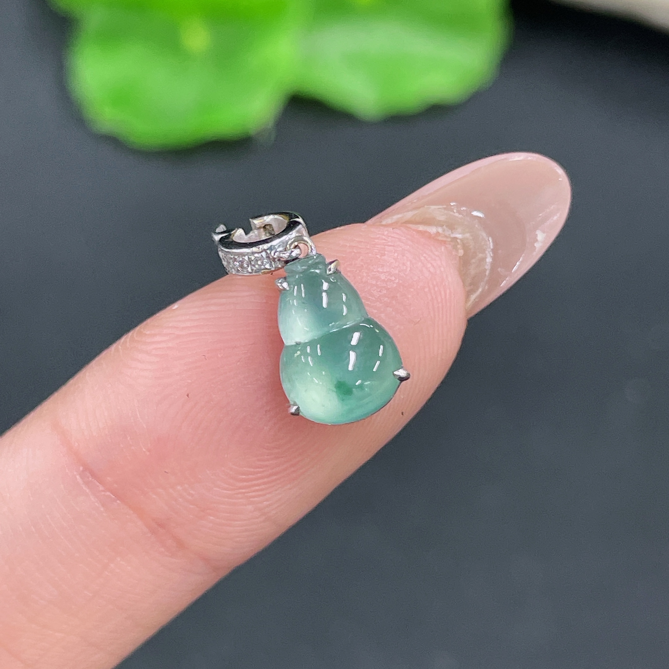 Jadeite Gourd Pendant 18k Gold Inlaid with Diamonds Total Weight Approx. 1.15g