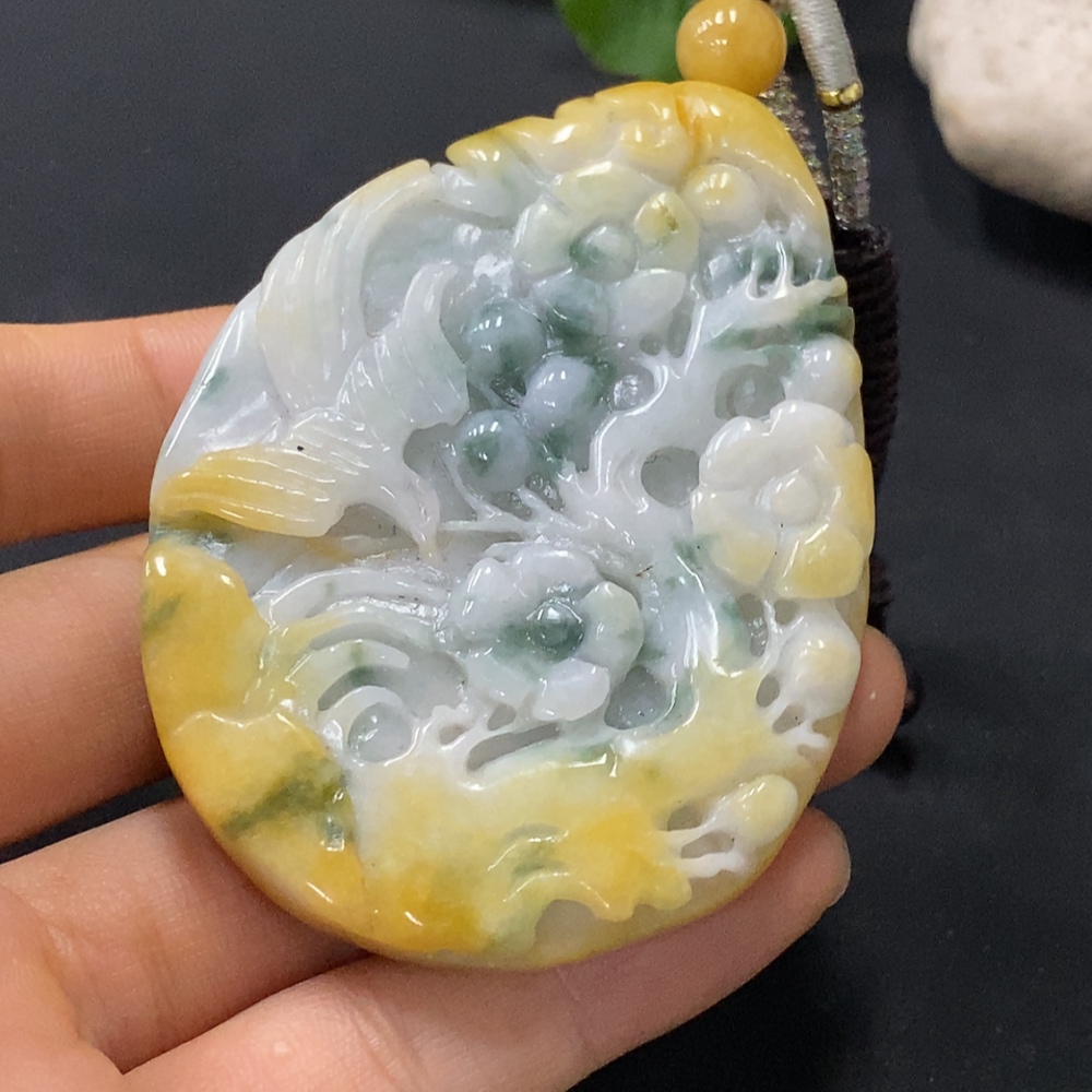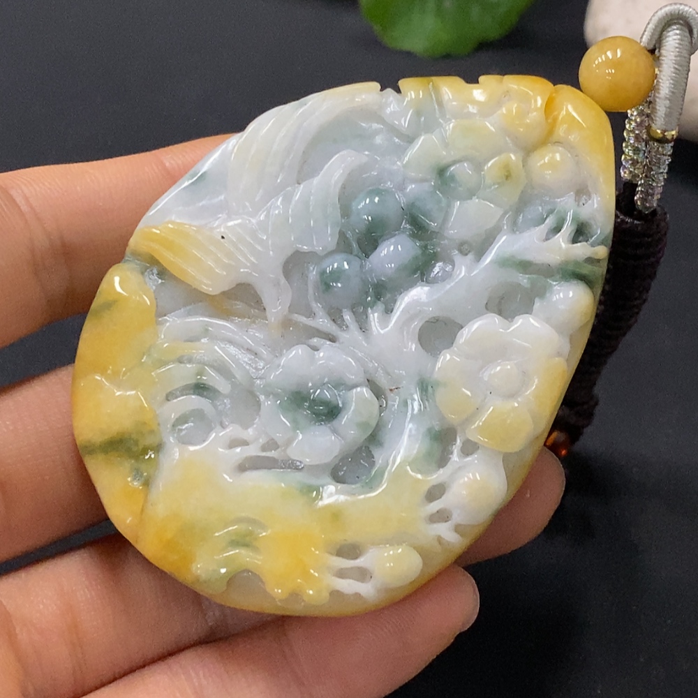 Jadeite Pendant Color Origin Undetermined Total Weight Including Rope Approximately 95.21g