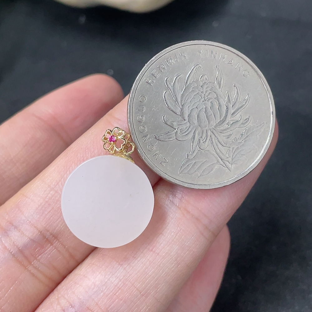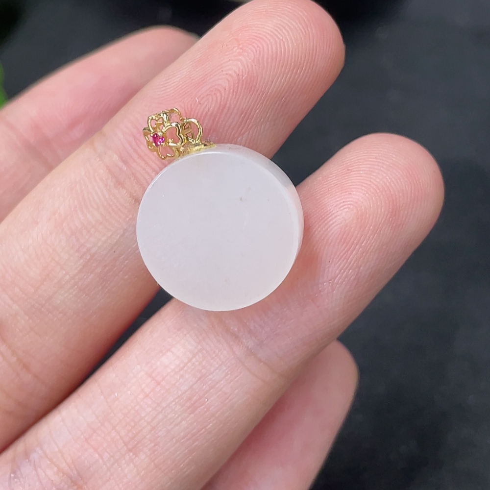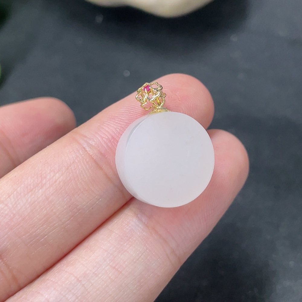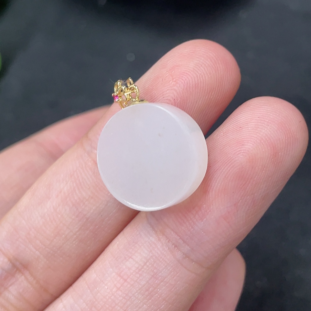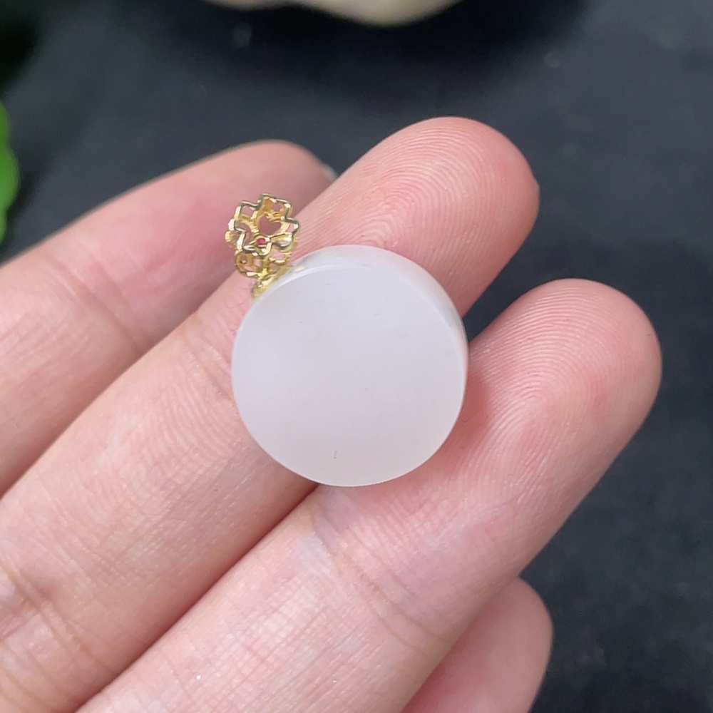 Hetian Jade Pendant Plain Pendant 18k Gold Clasp Total Weight Approx.2.5g
