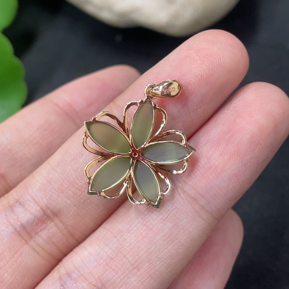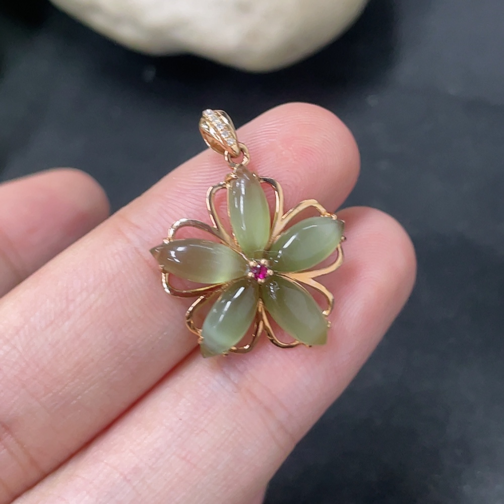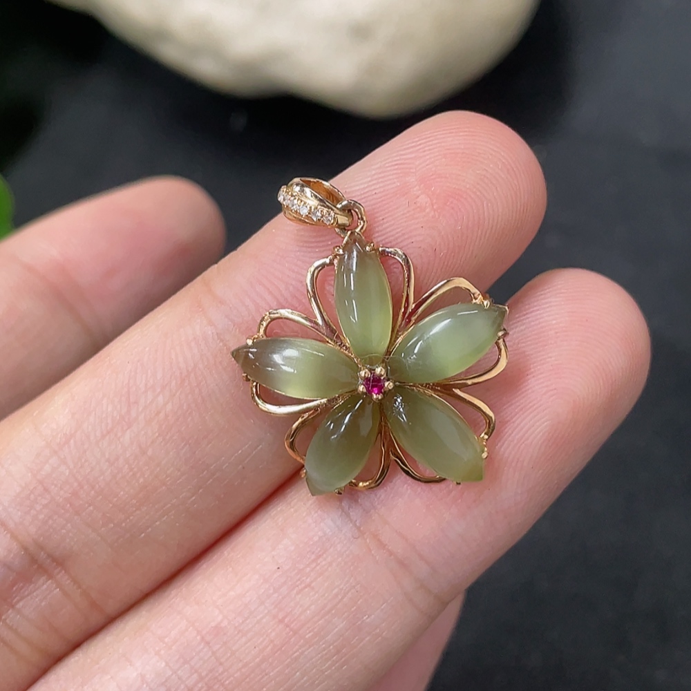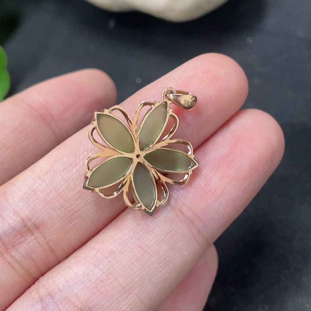 Hetian Jade Jasper Inlaid Pendant, 18K Gold, Total Weight Approx. 1.5g, Diamond Accents
