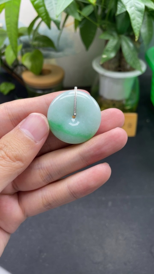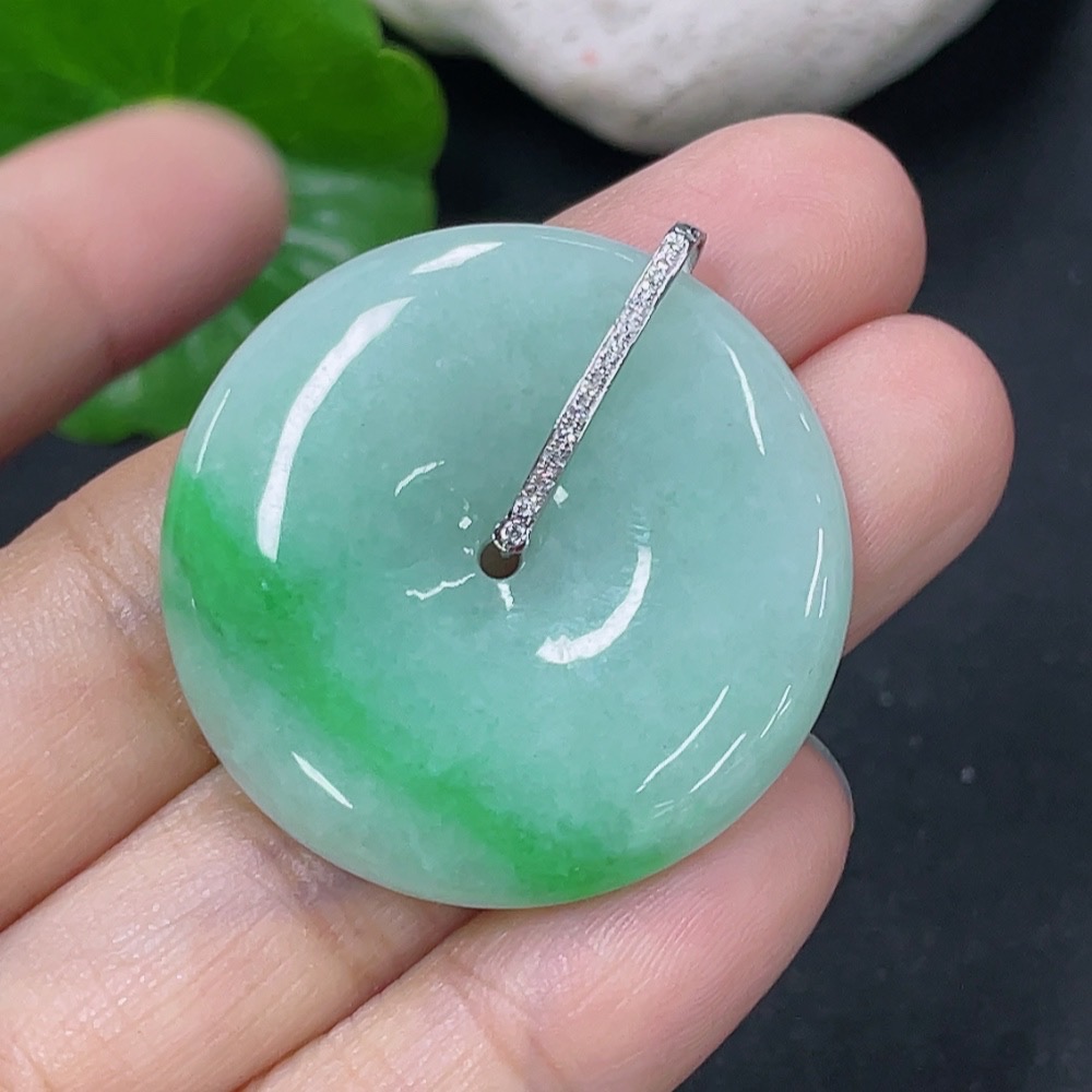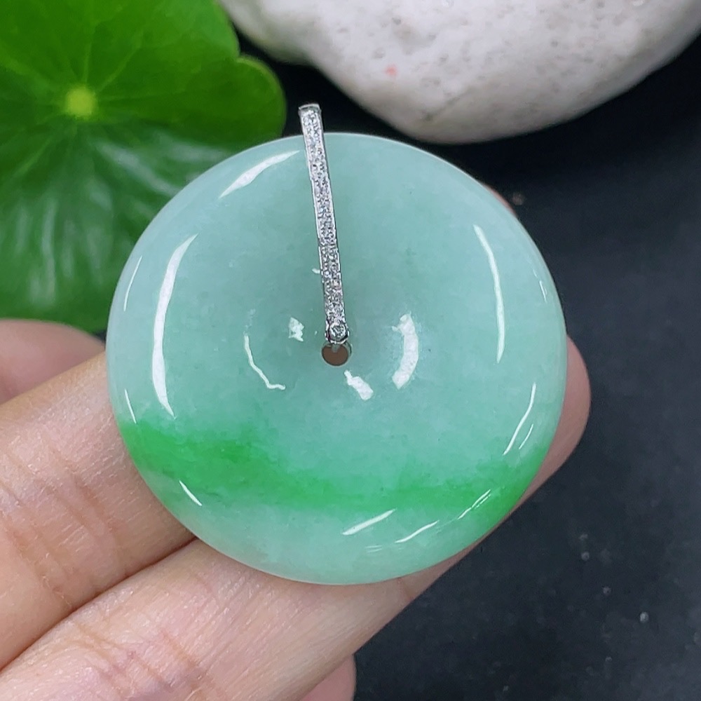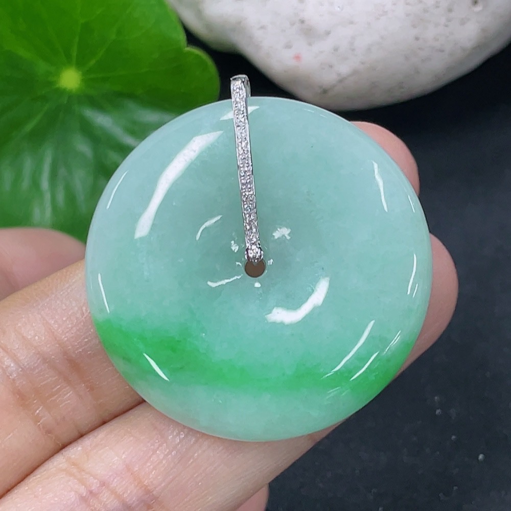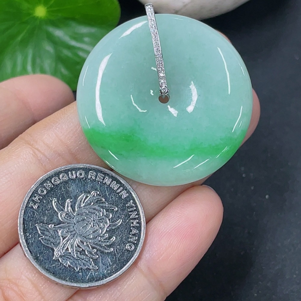 Jadeite Pendant Peace Knot 18k Set with Diamonds Total Weight Approx. 12.38g