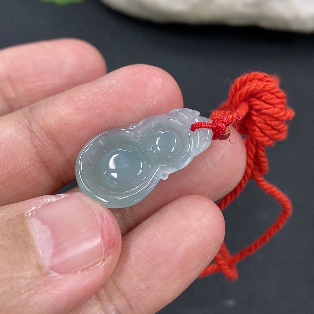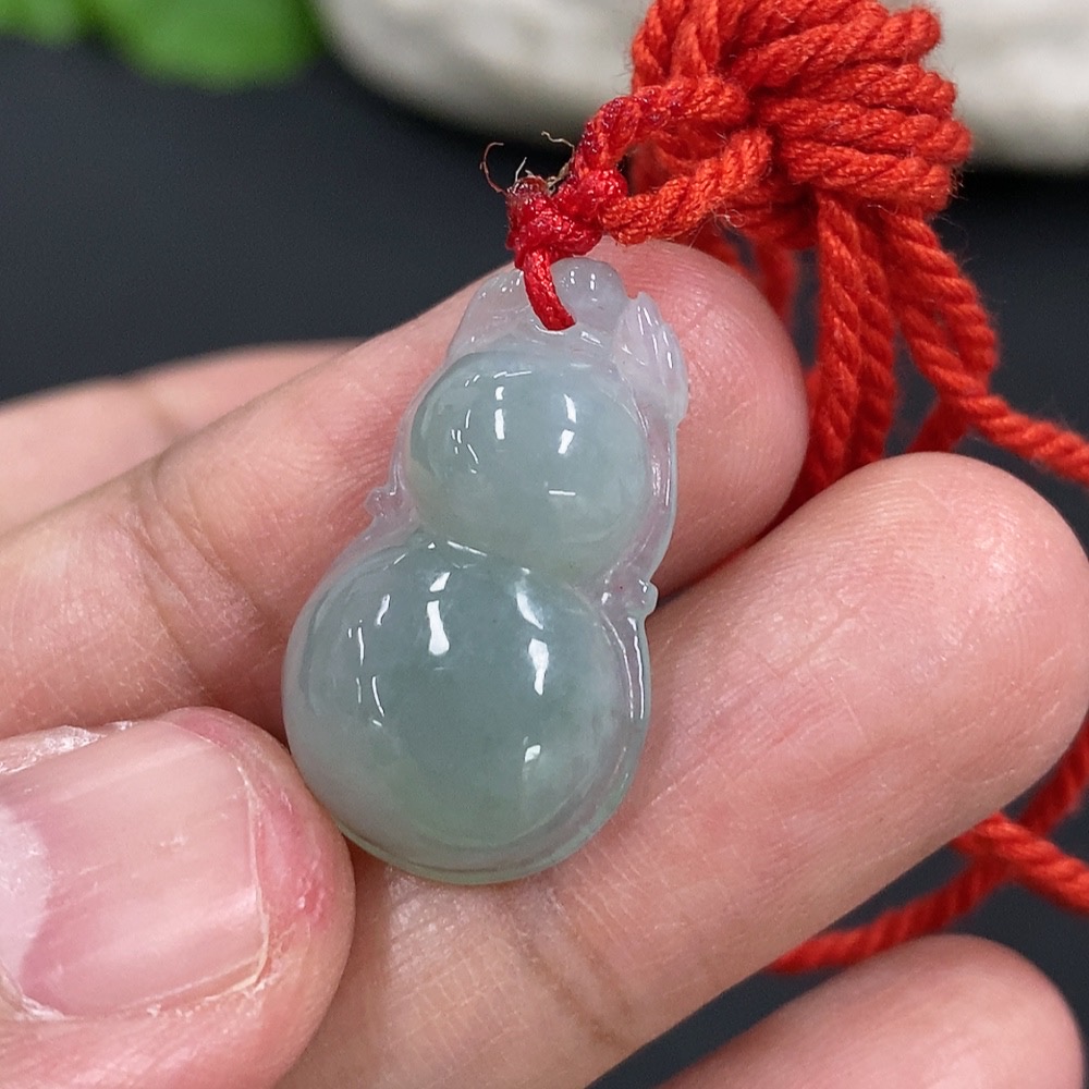 Jadeite Gourd Pendant Total Weight Approx. 3.1g (Including Rope Weight)