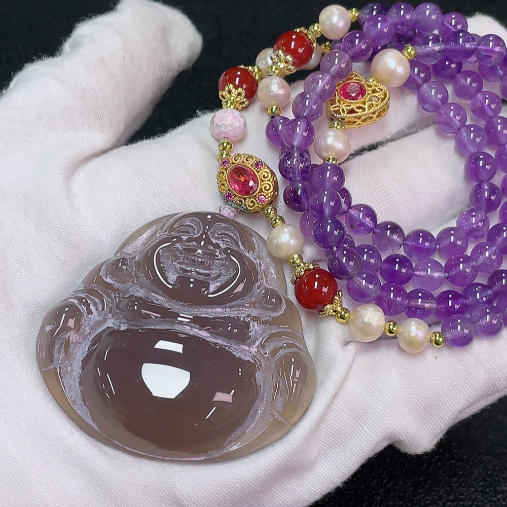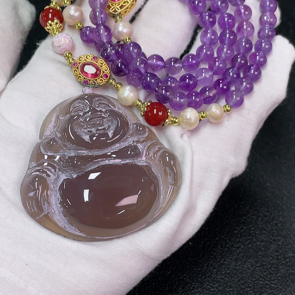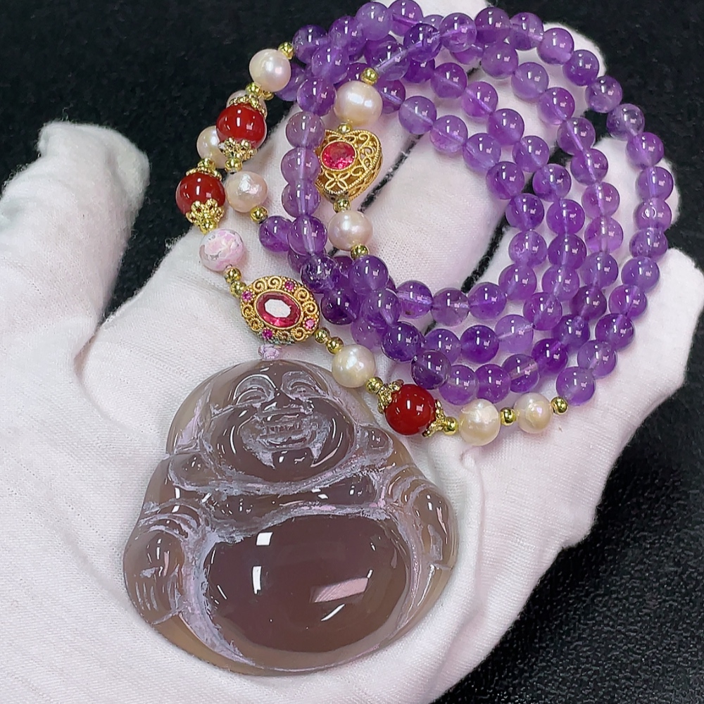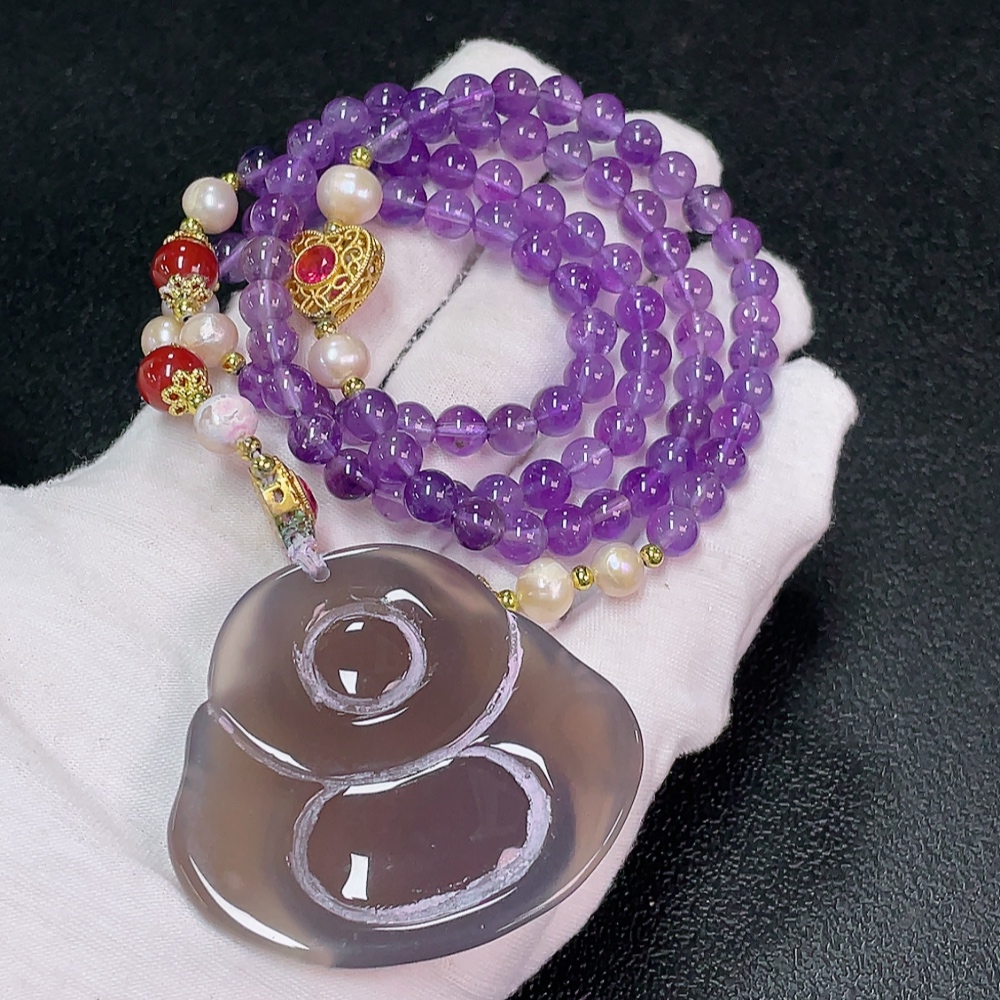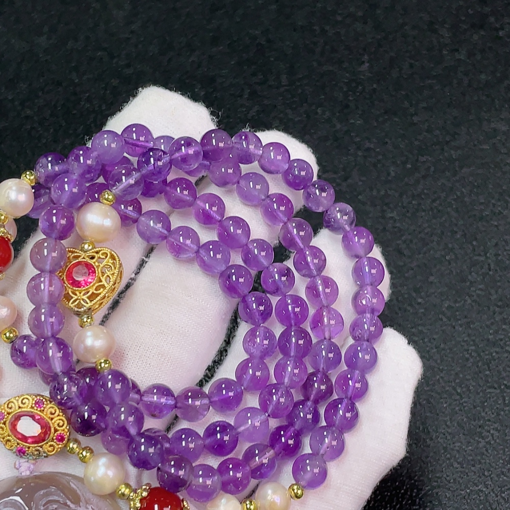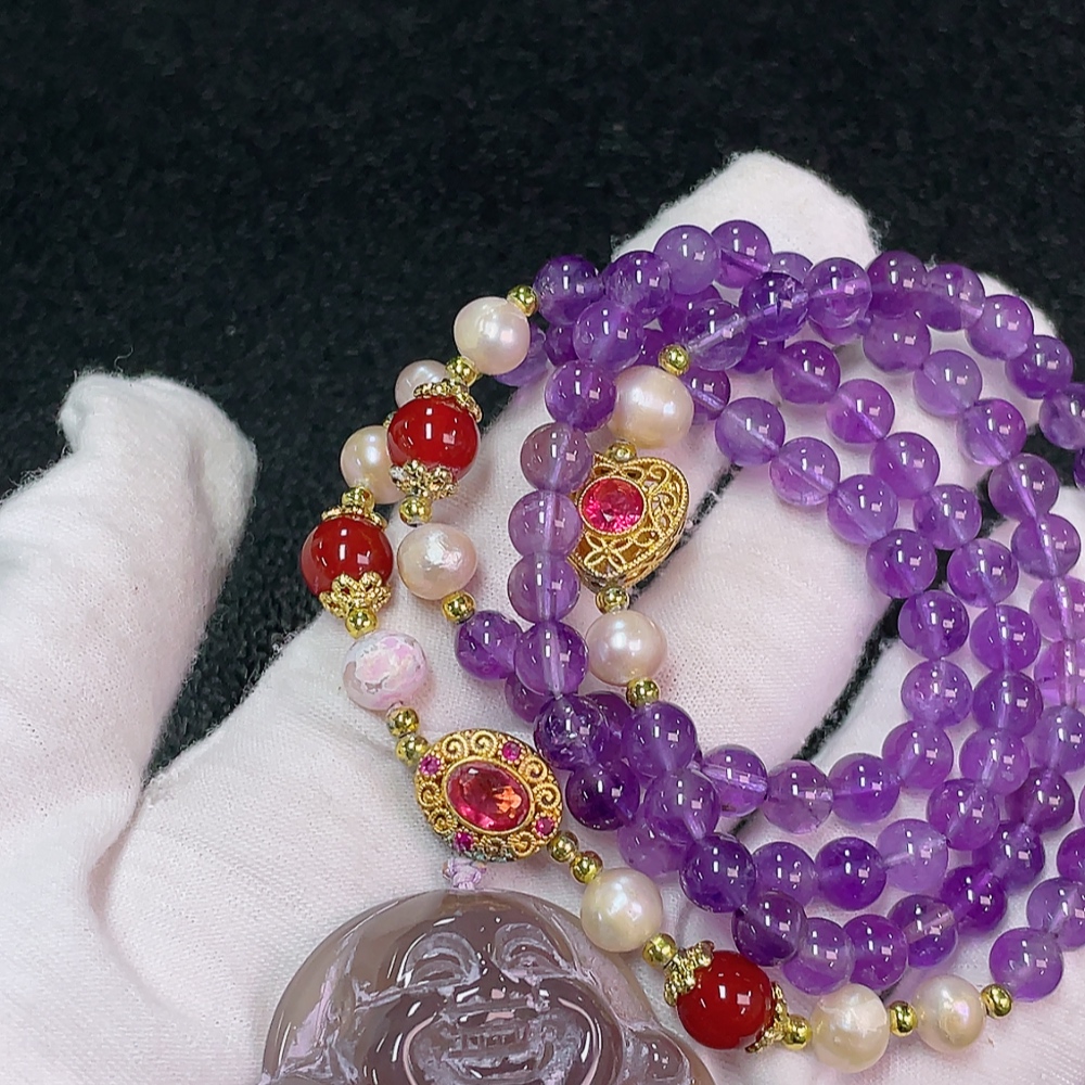 Crystal (Purple) Beaded Necklace with Pearls and Non-Natural Accent Stones, Total Weight Approx. 76.51g, Bead Size 6.4mm