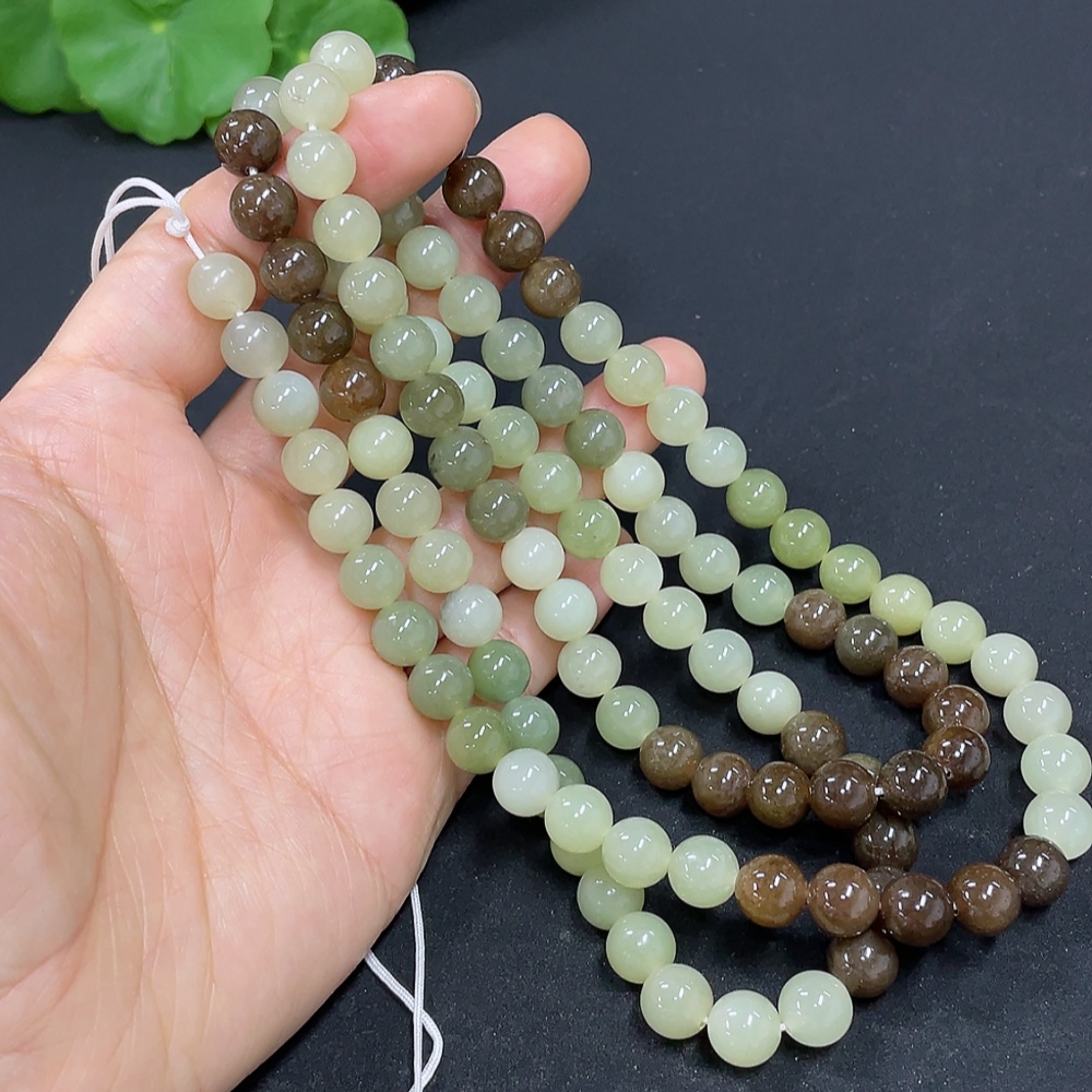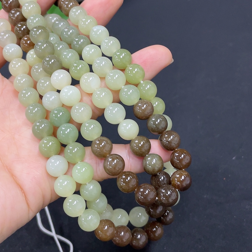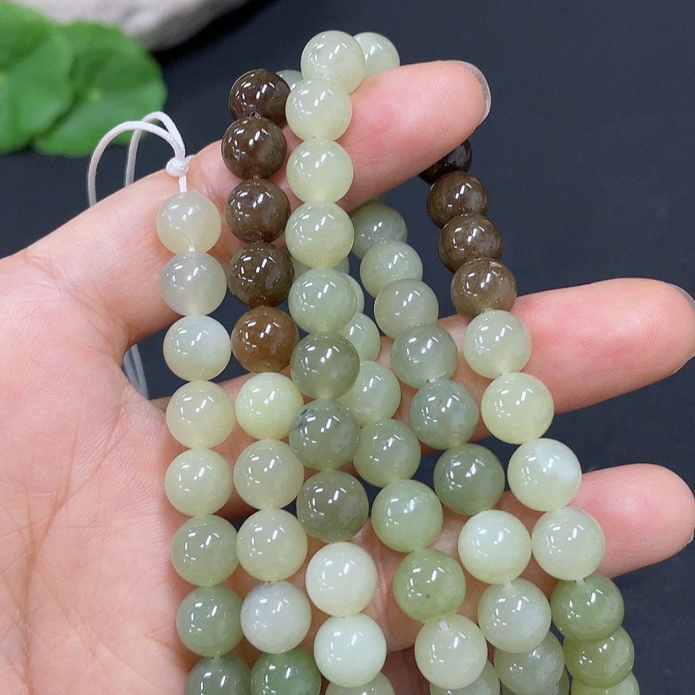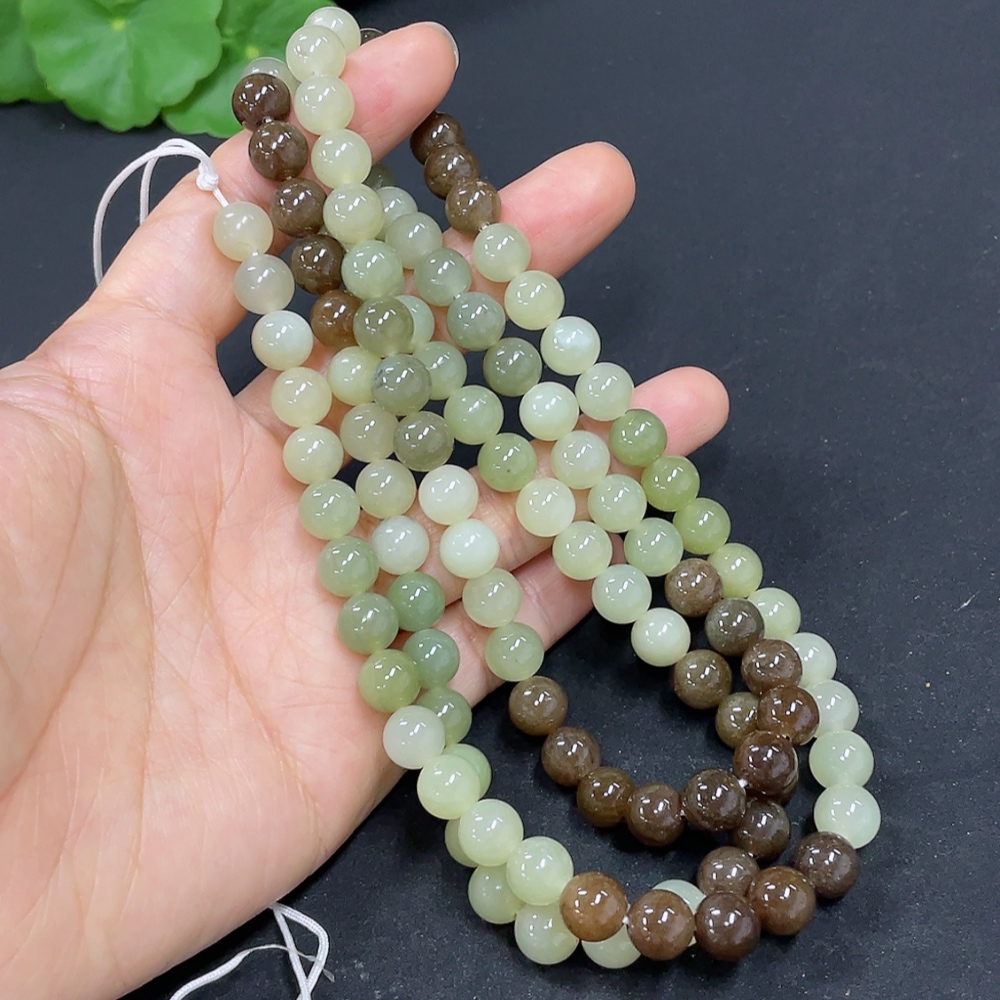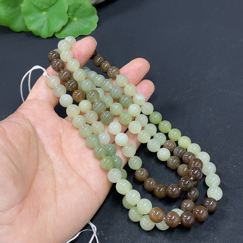 Hetian Jade Bead Necklace, approx. 7.7mm, total weight about 83.6g