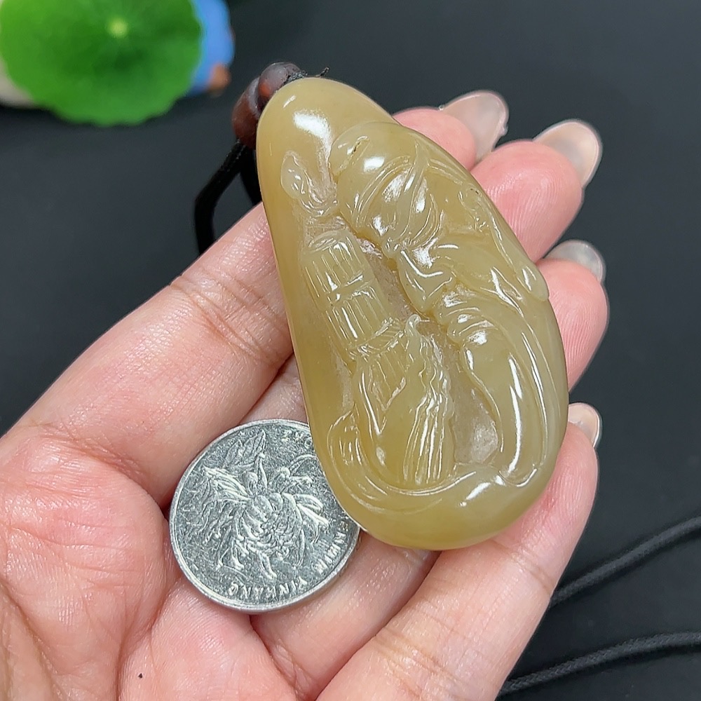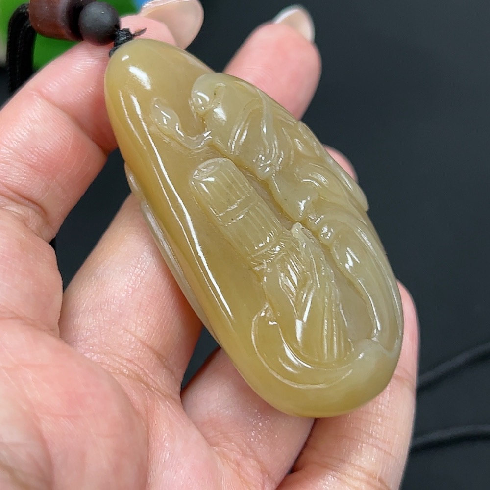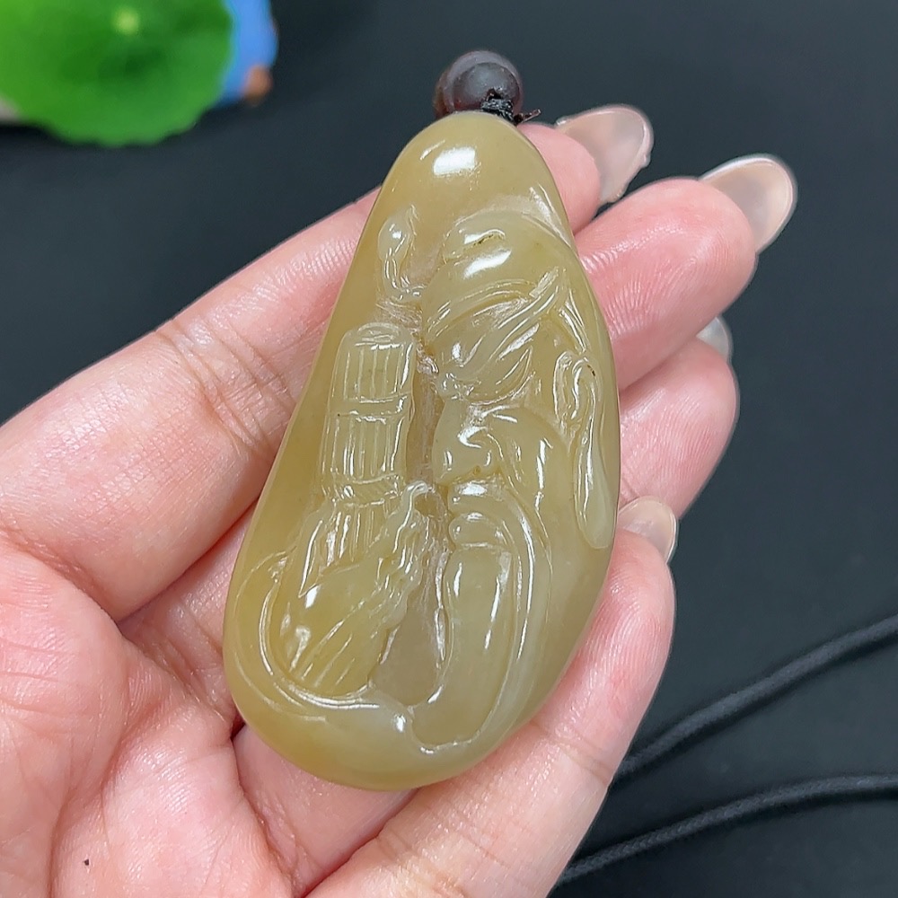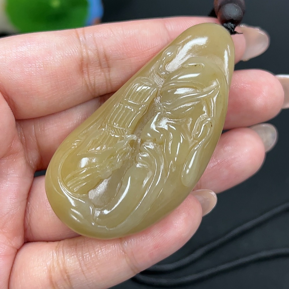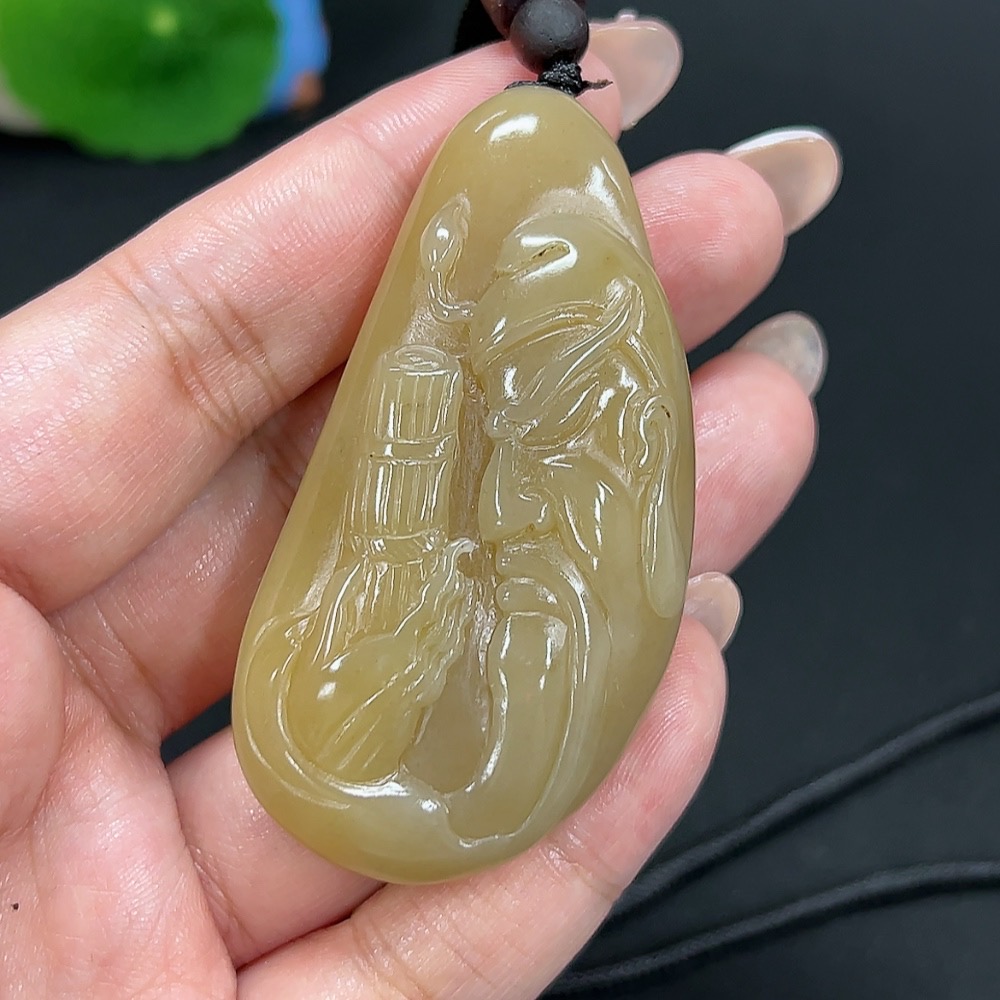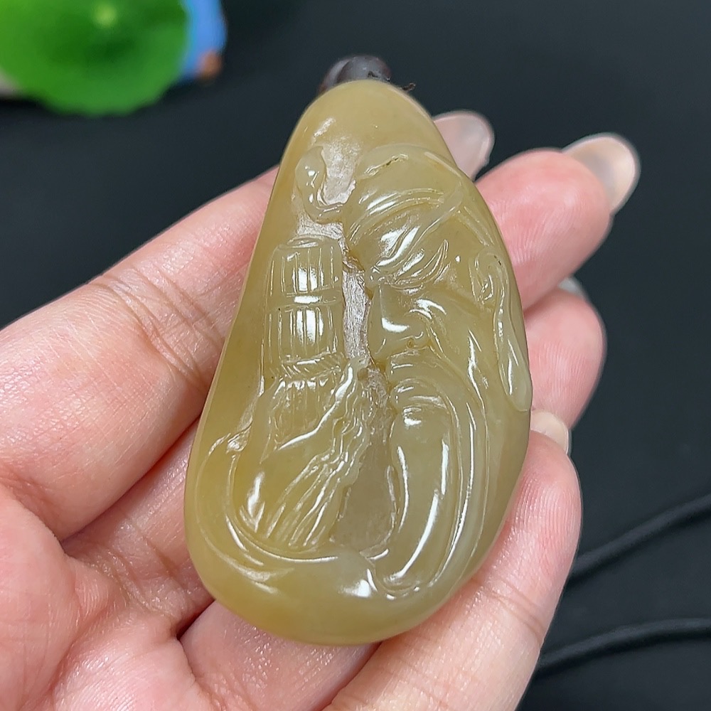 Hetian Jade Pendant [Guan Gong] Total Weight Approx. [Including Rope] 62.8g