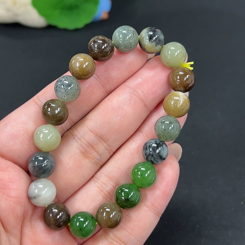 Hetian Jade Bracelet Approx. 9.6mm Total Weight About 27.7g Including Other Mineral Components