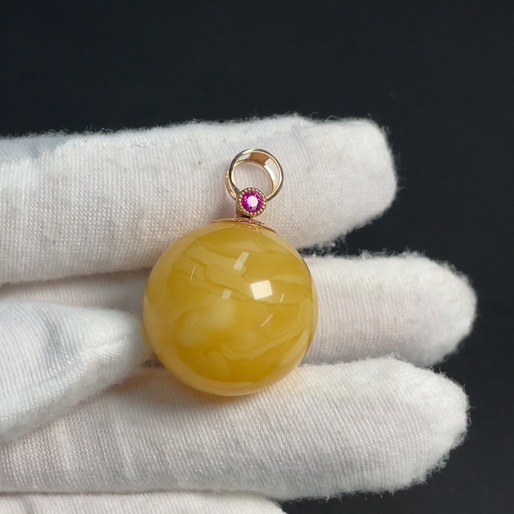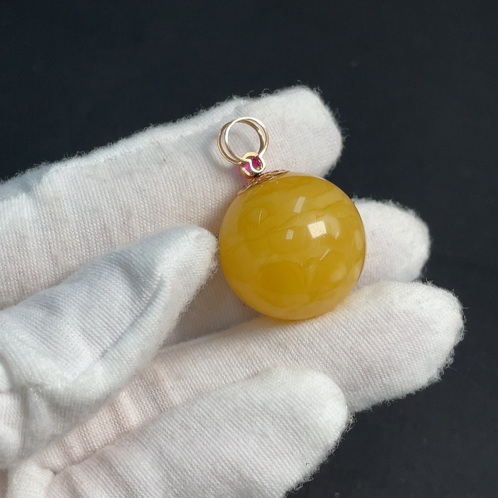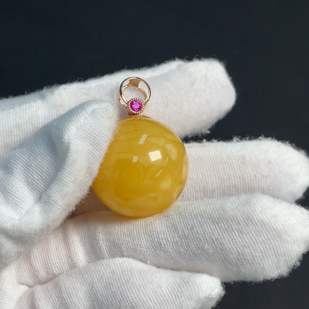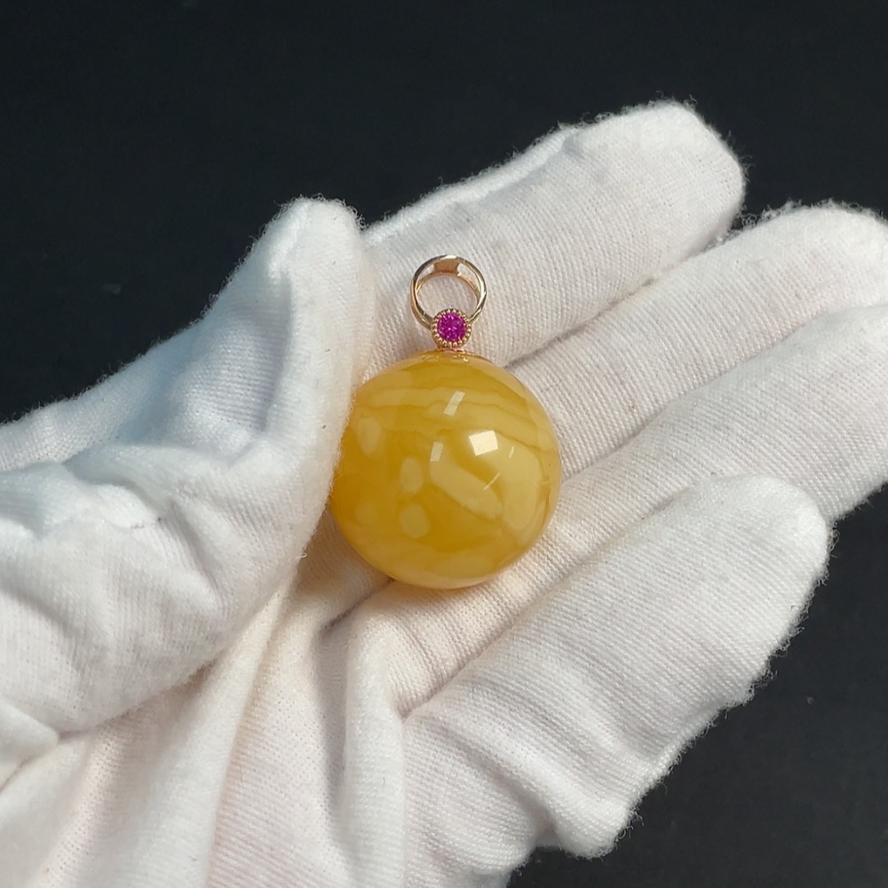 Amber and Beeswax Inlaid Pendant 18K Gold Card 23.6mm Approx. Total Weight About 8.14g