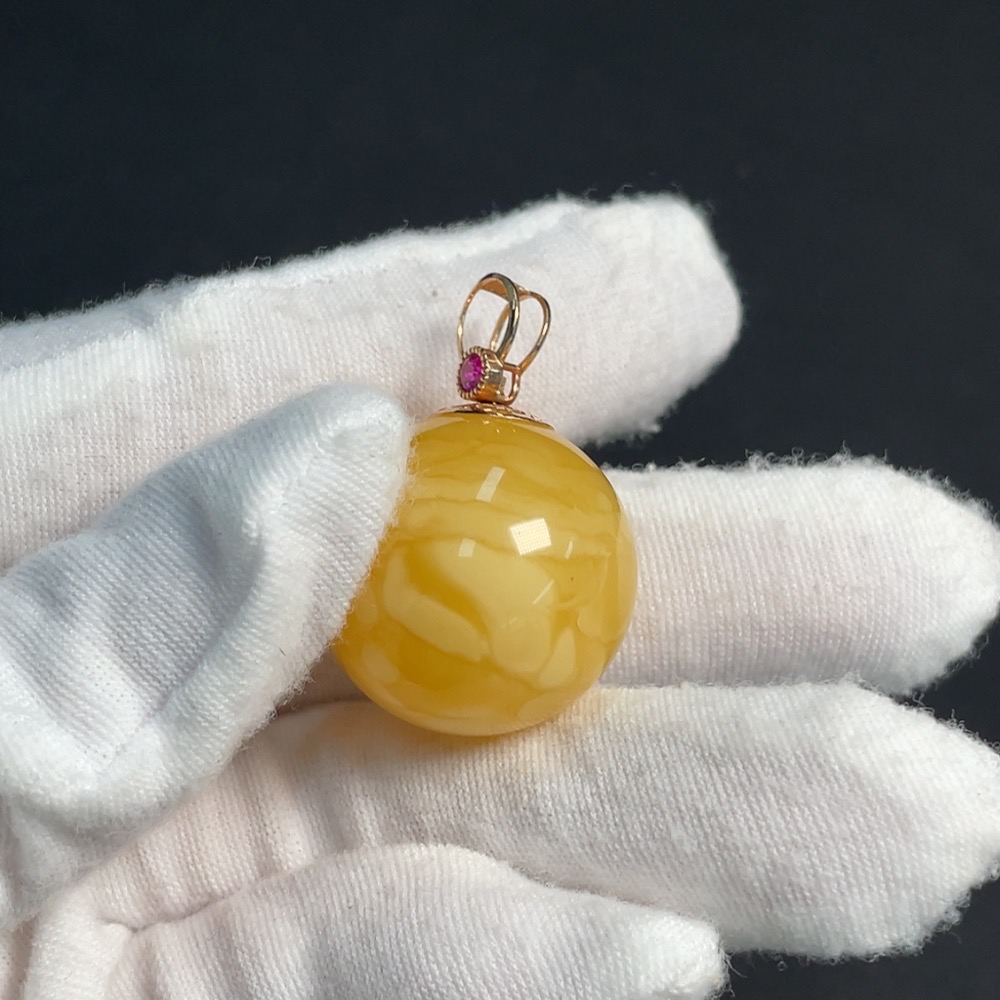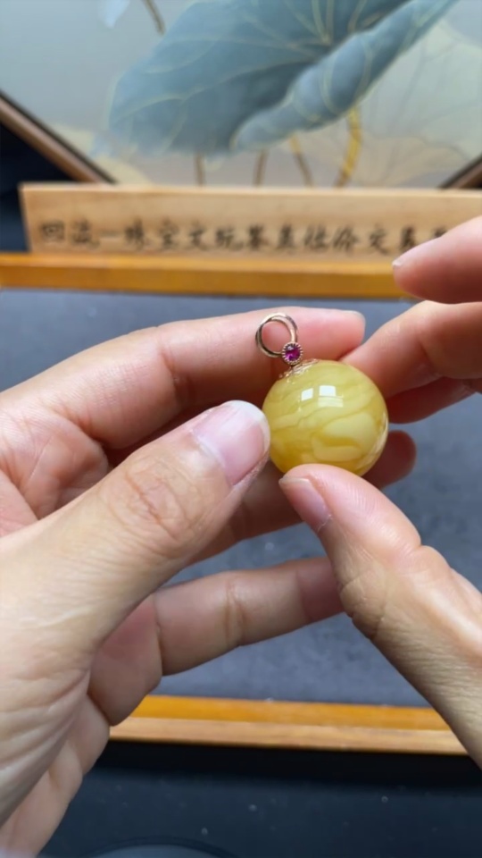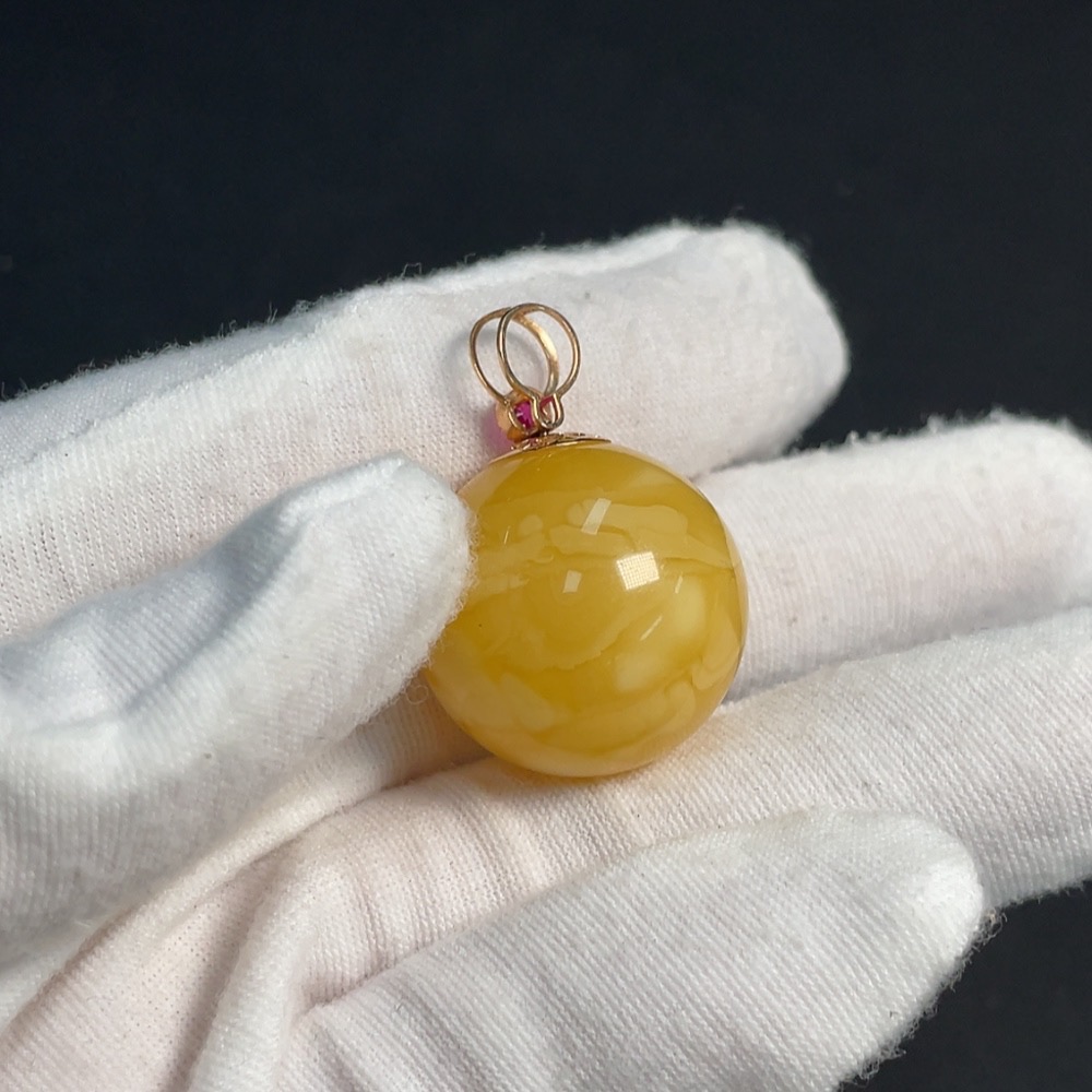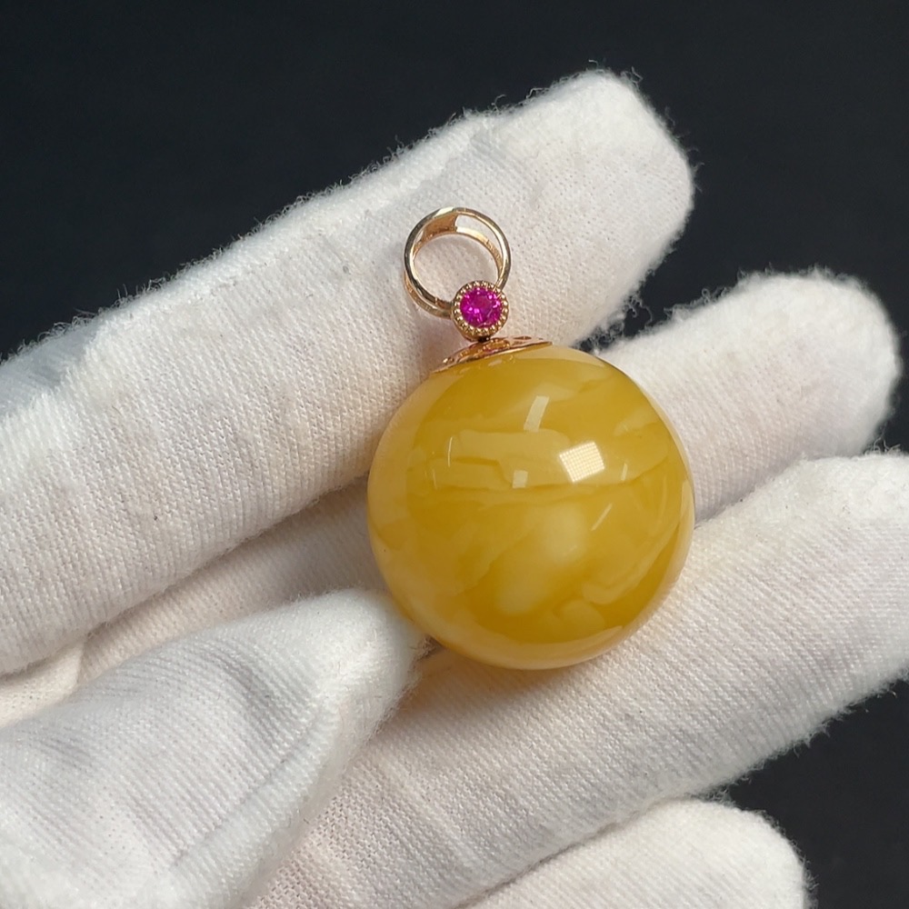 Amber and Beeswax Inlaid Pendant 18K Gold Card 23.6mm Approx. Total Weight About 8.14g