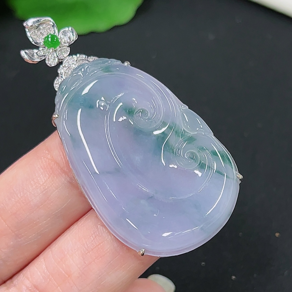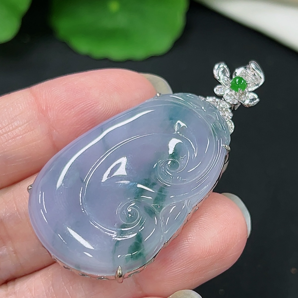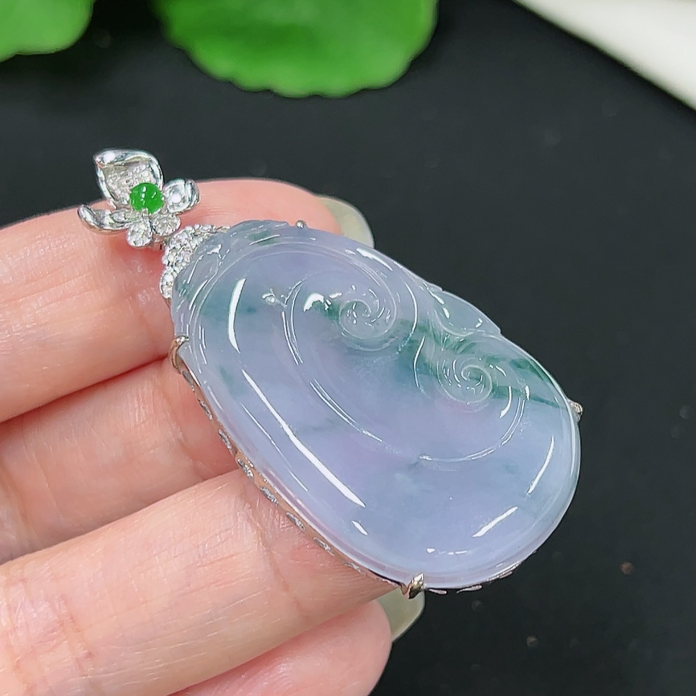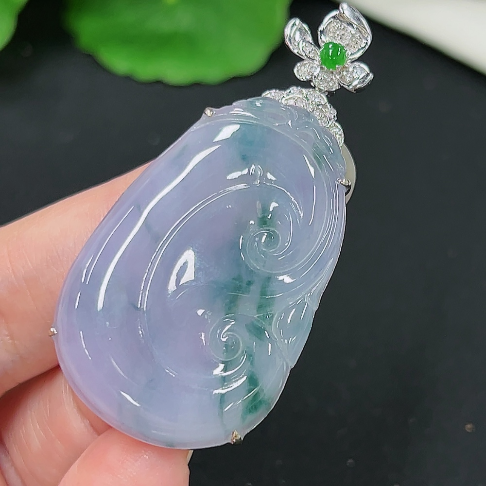 Jadeite Ruyi Pendant in 18K Gold, Total Weight Approx. 10.1g (with Diamond Accents)