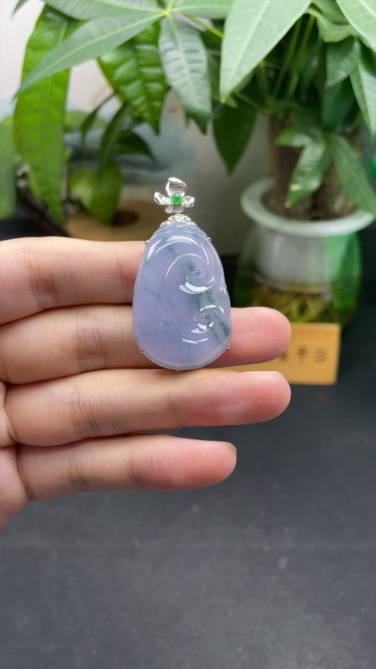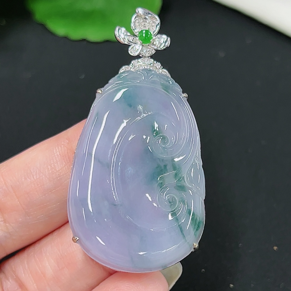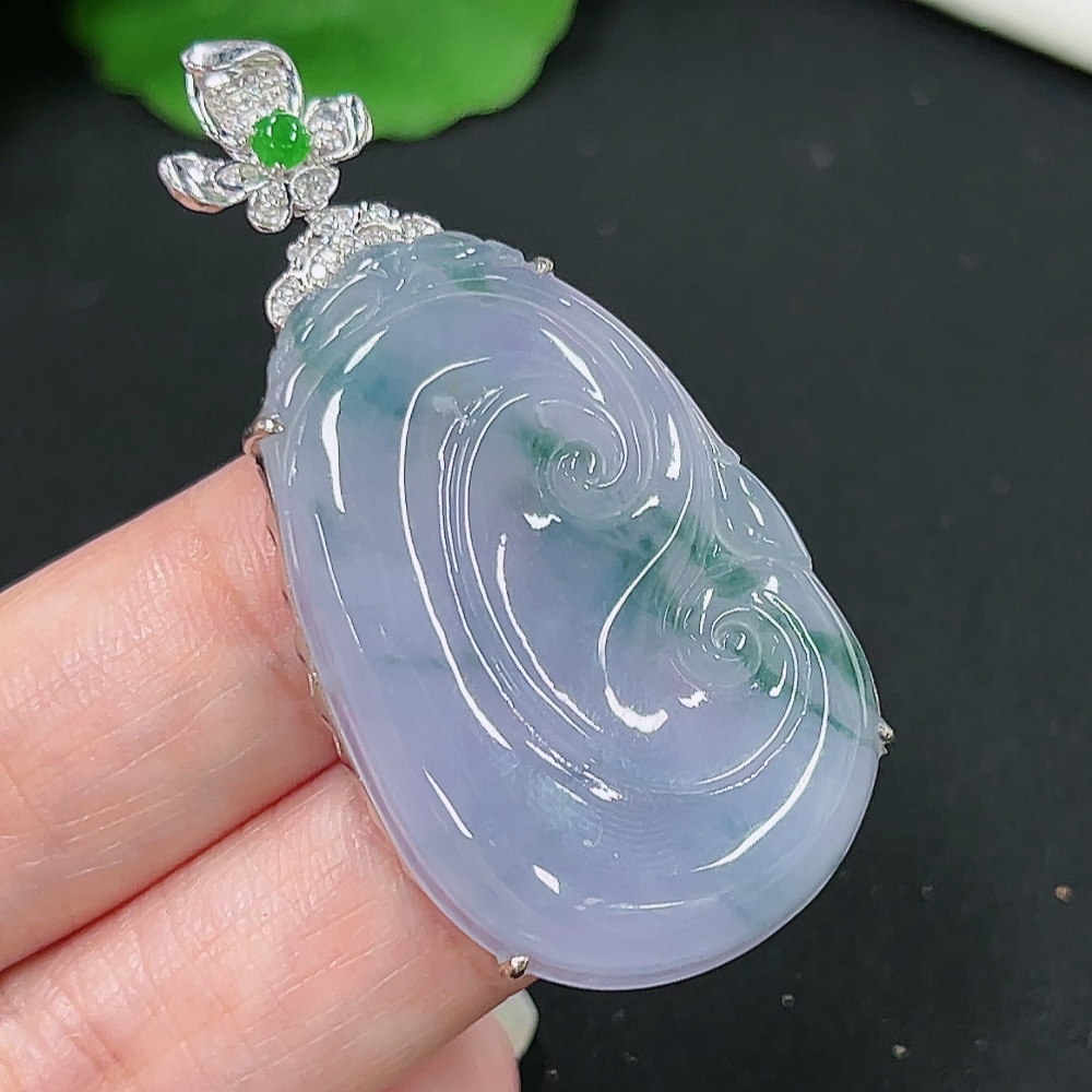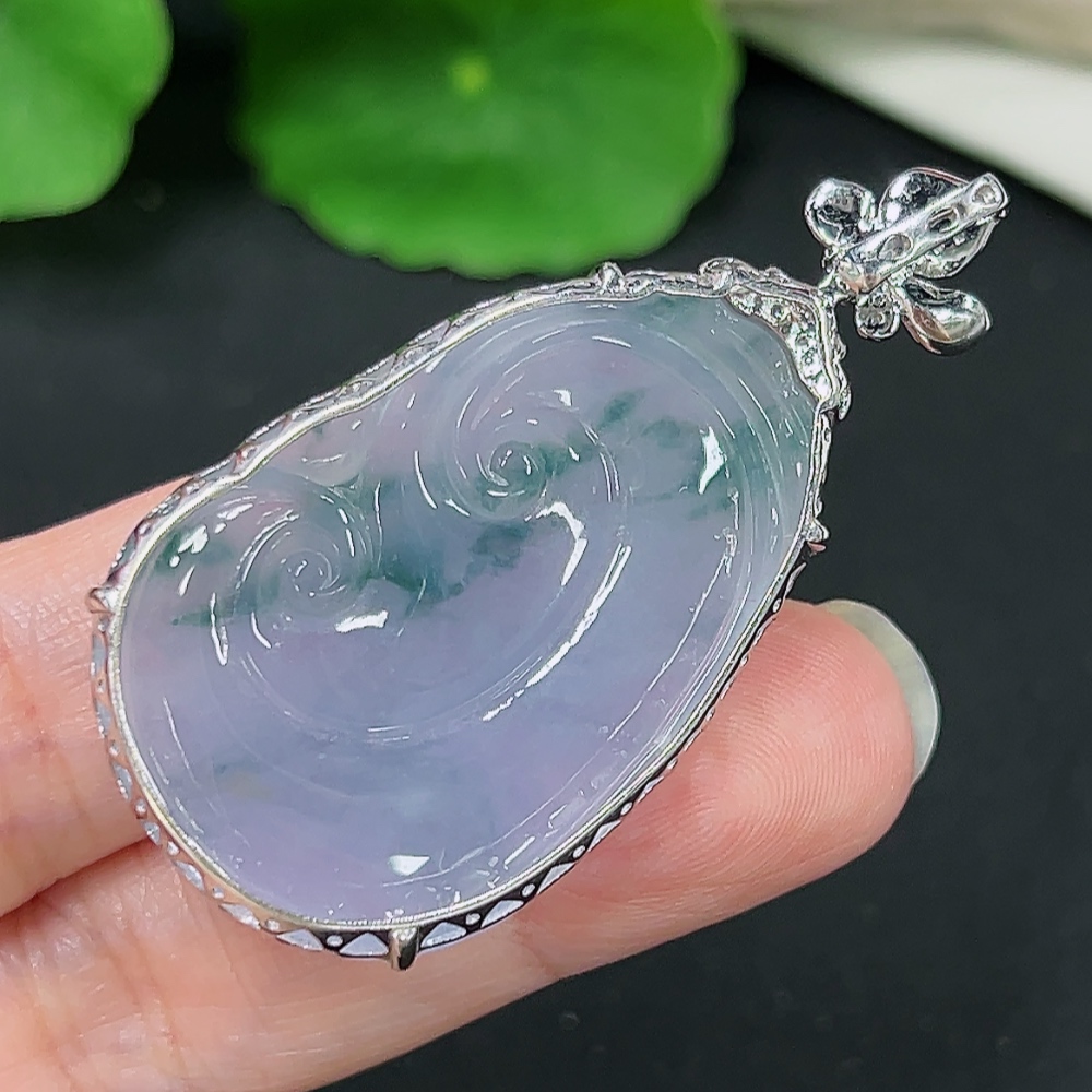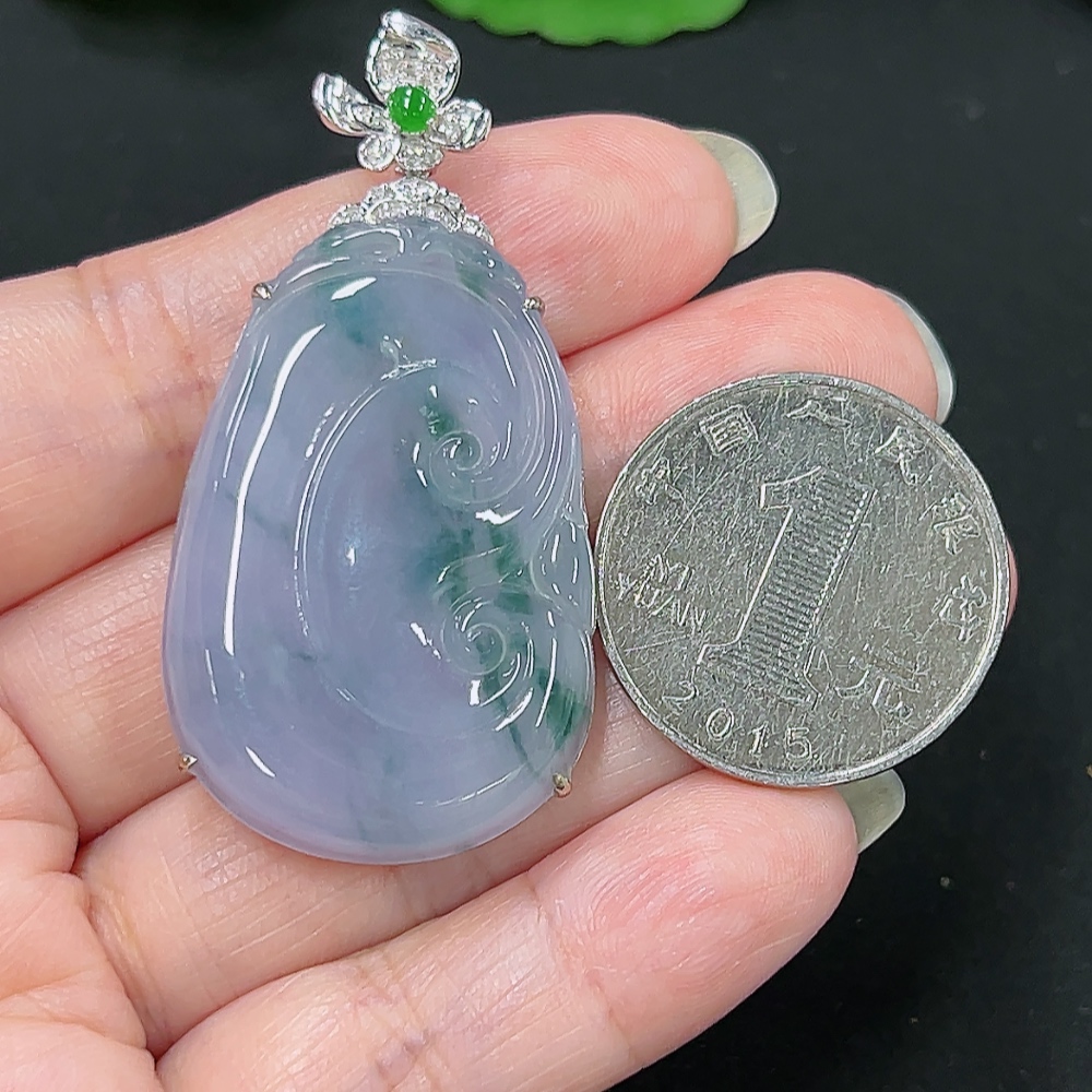 Jadeite Ruyi Pendant in 18K Gold, Total Weight Approx. 10.1g (with Diamond Accents)