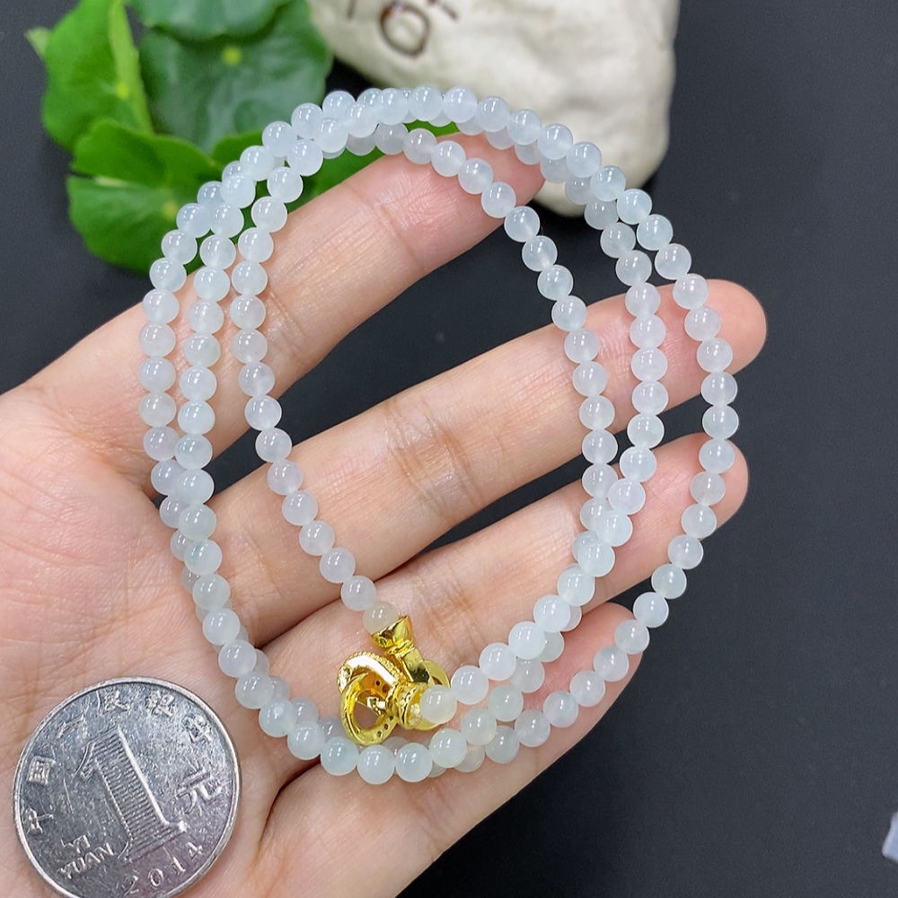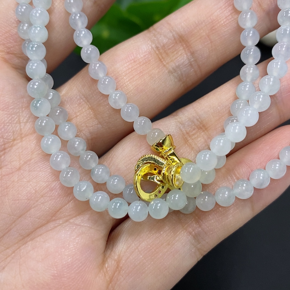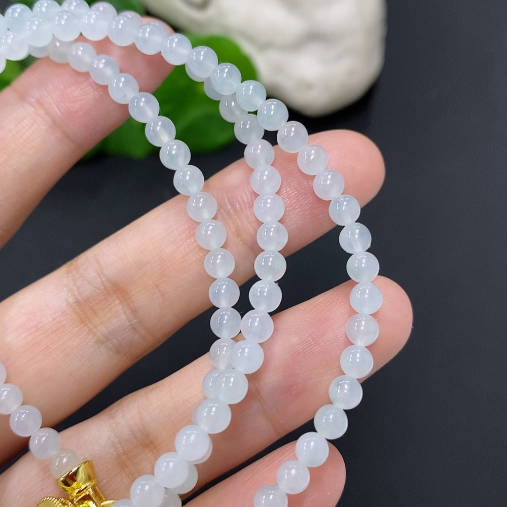 Jadeite Bead Necklace Approx. 4mm Non-Gold Total Weight Approx. 20.4g