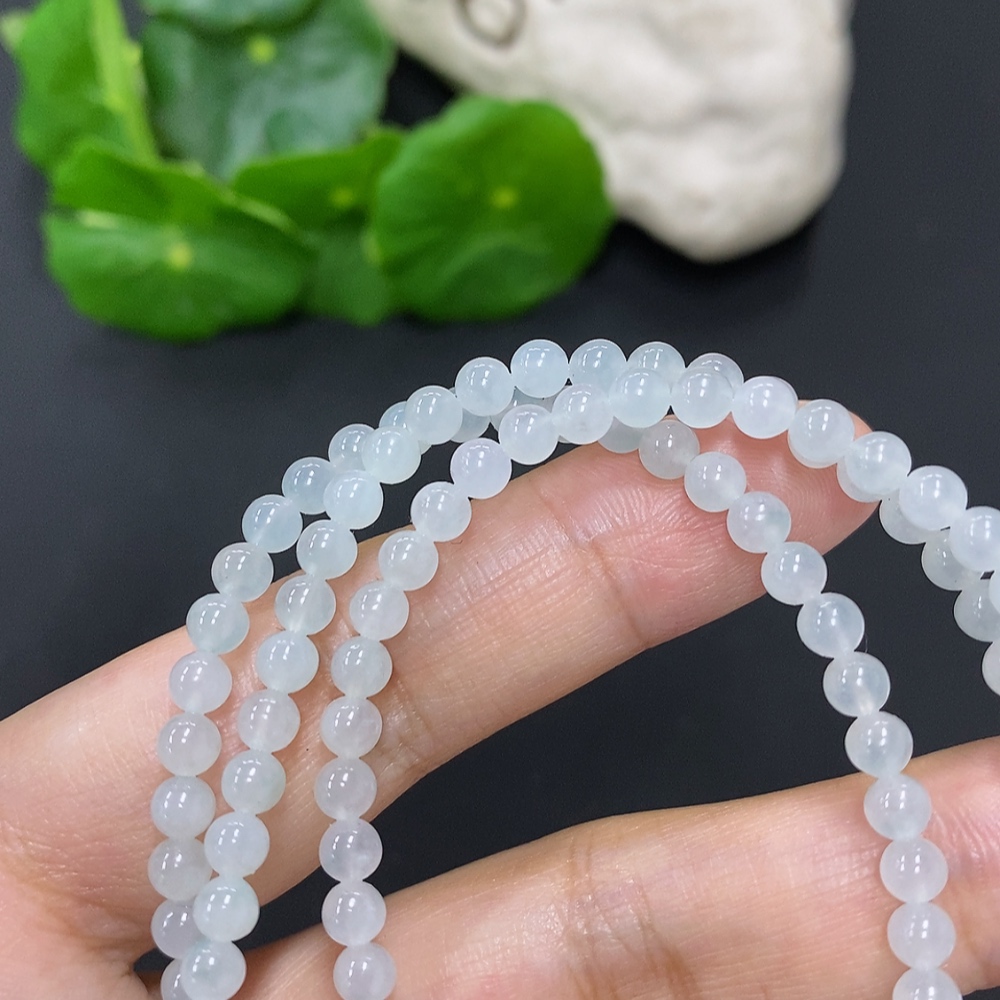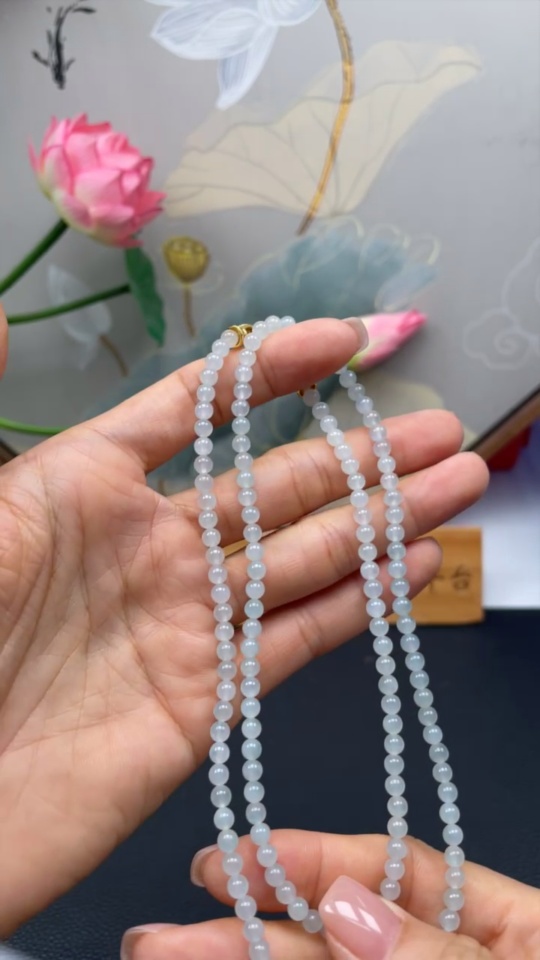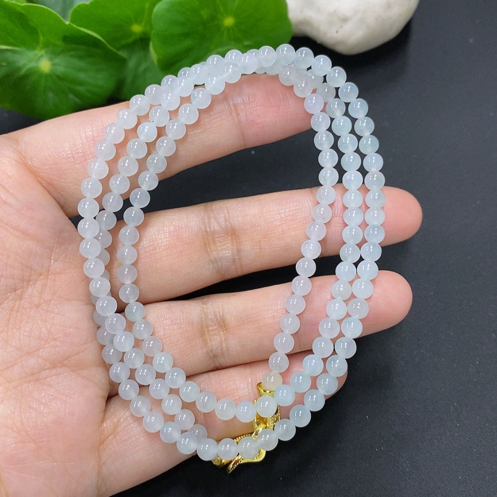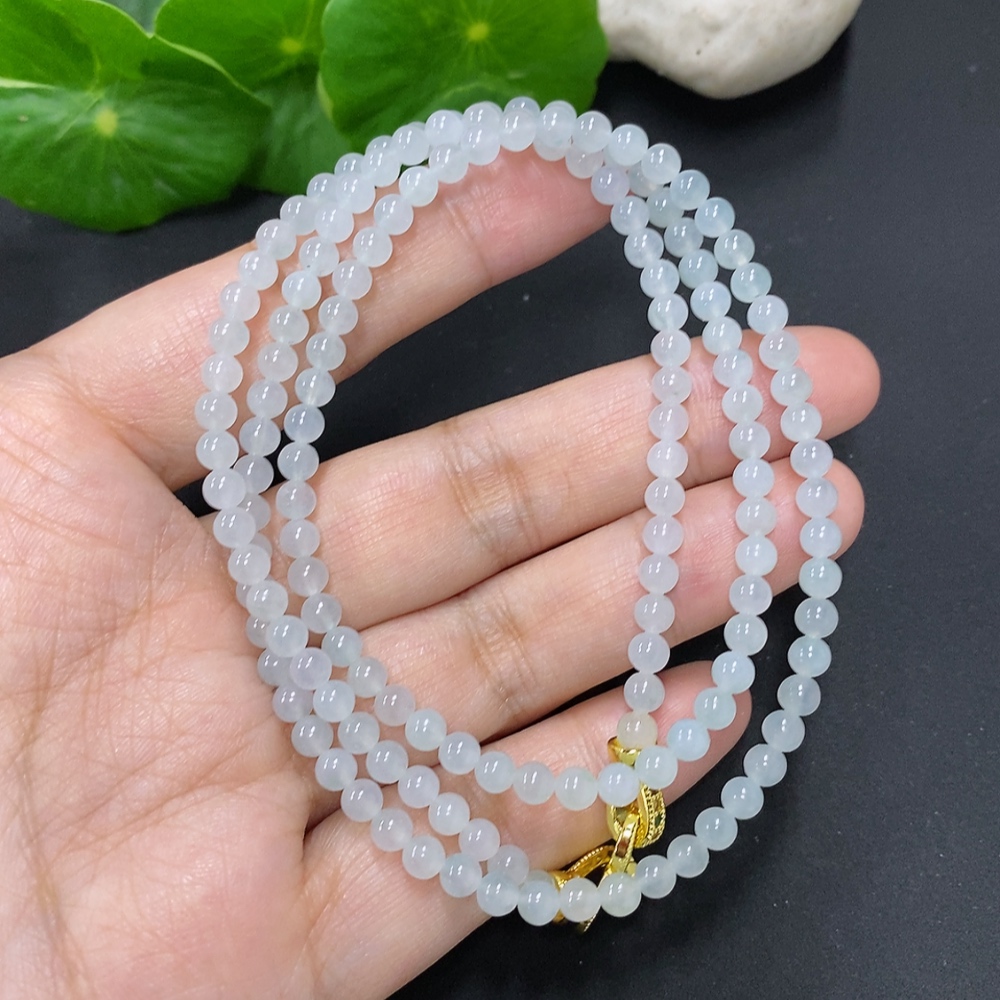 Jadeite Bead Necklace Approx. 4mm Non-Gold Total Weight Approx. 20.4g
