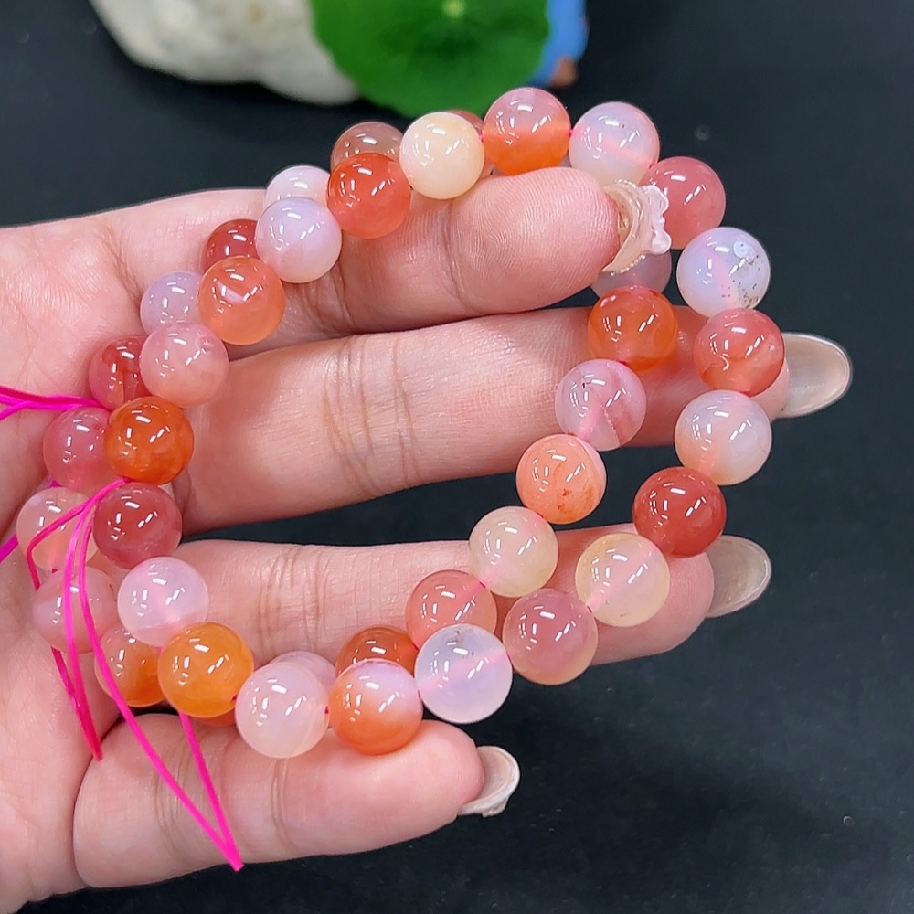 Yanyuan Agate Bracelet, approx. 9.3mm, red only, total weight approx. 52.3g