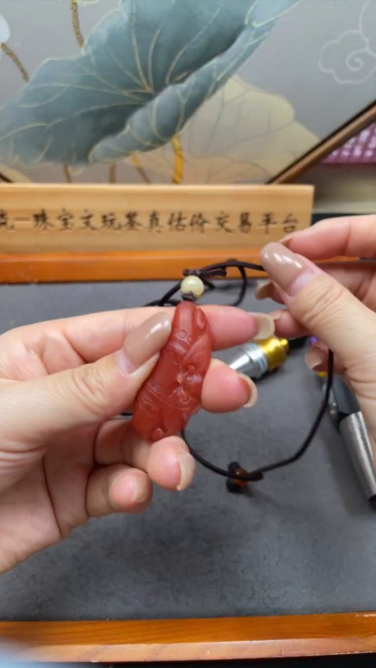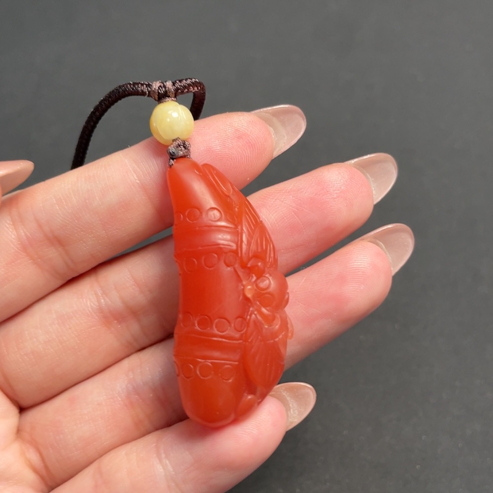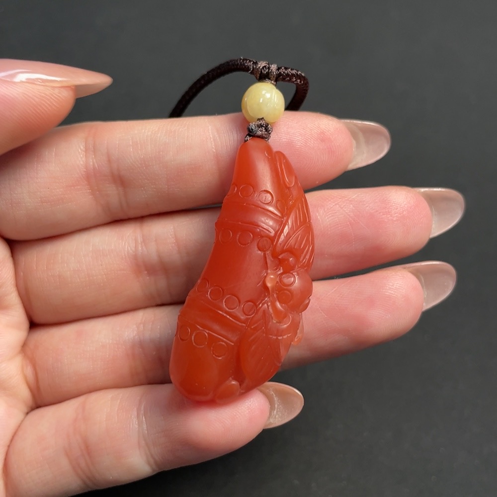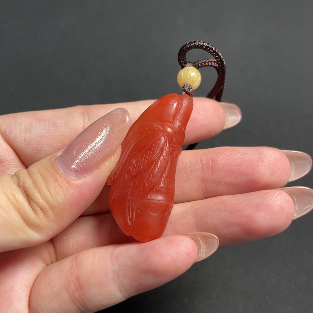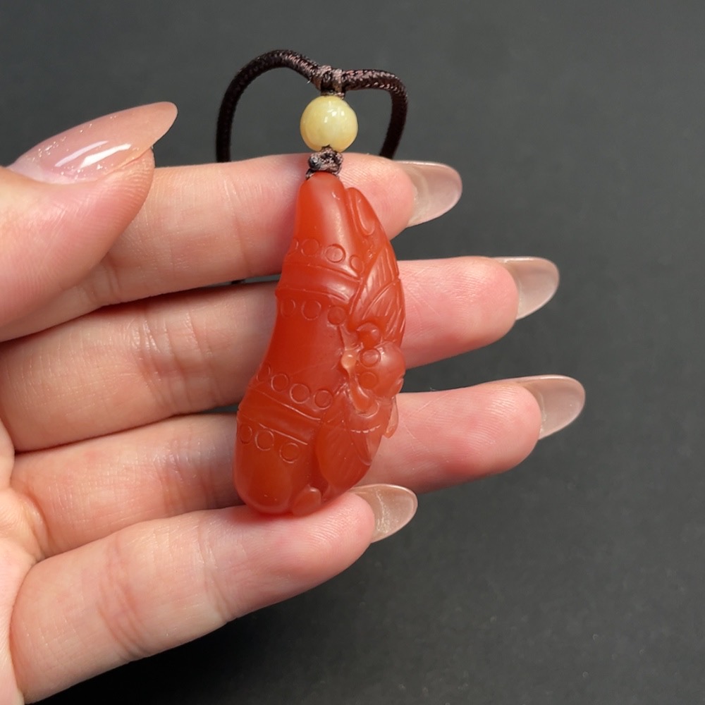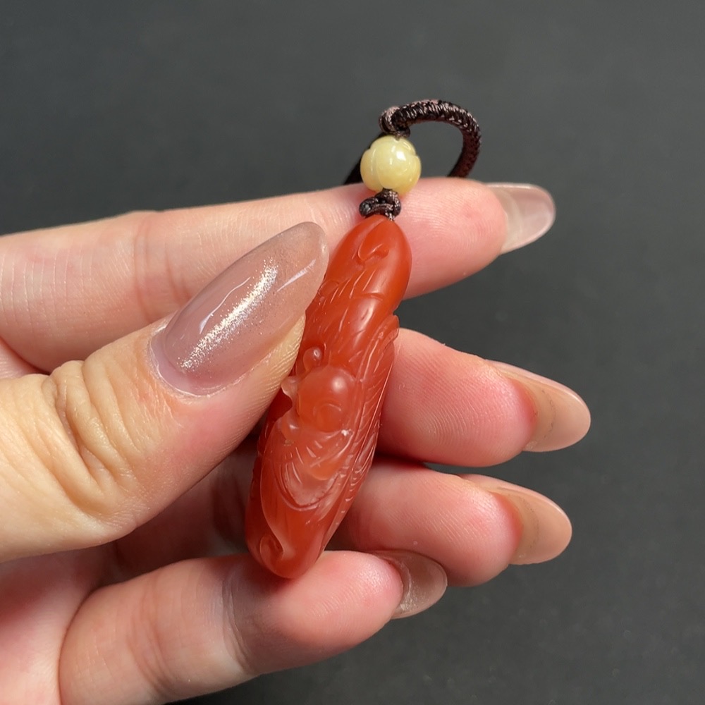 Red Agate Pendant, total weight including string approximately 14.83g, visible organic inclusions, paired with Jadeite