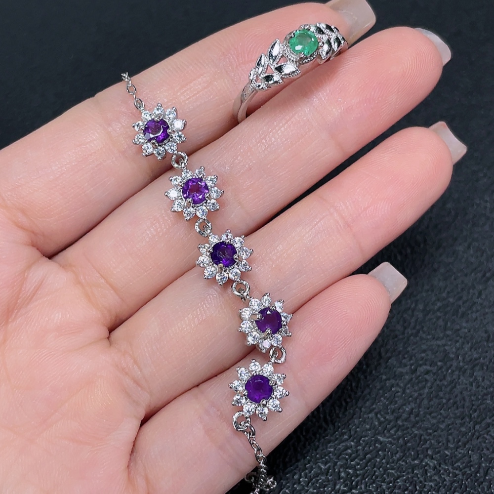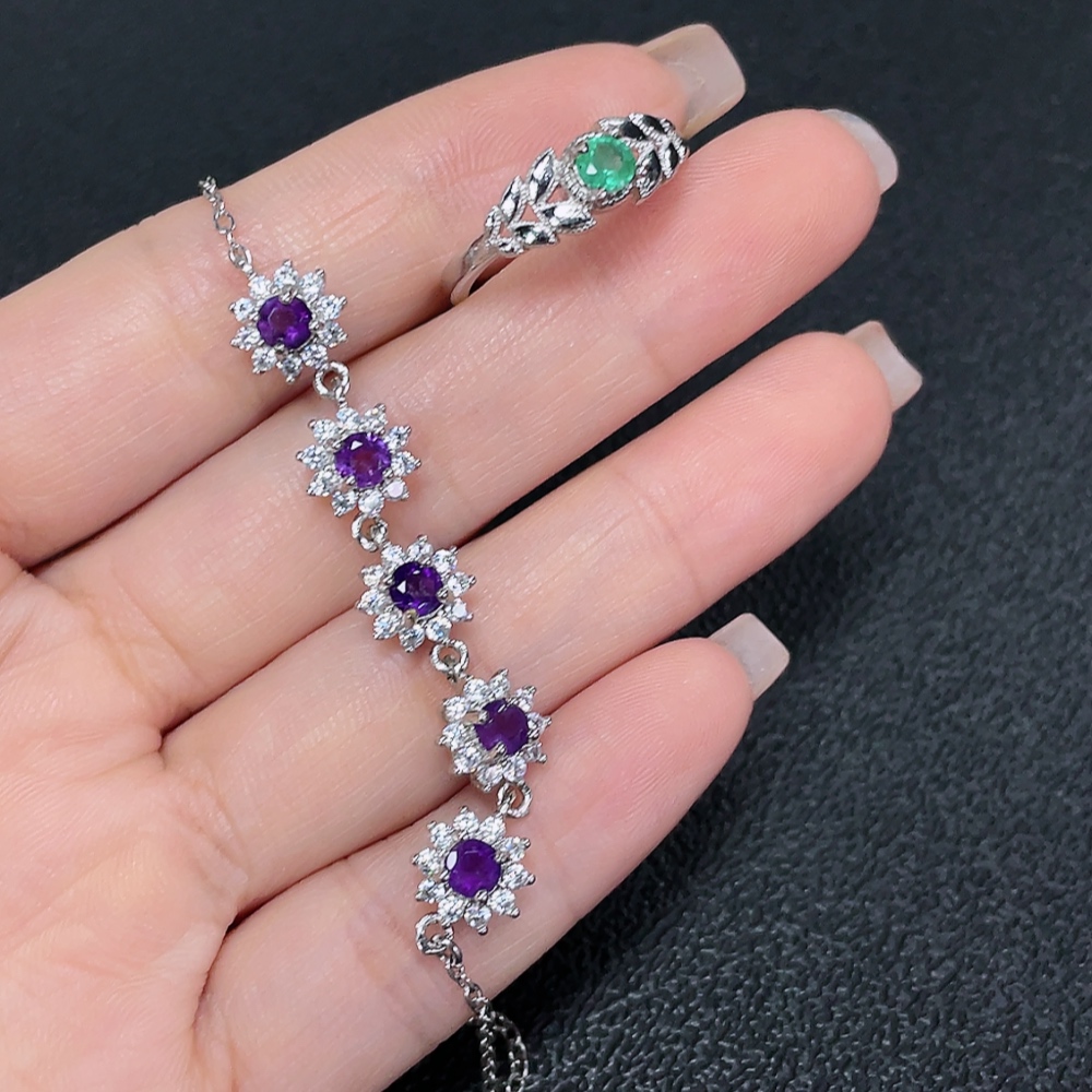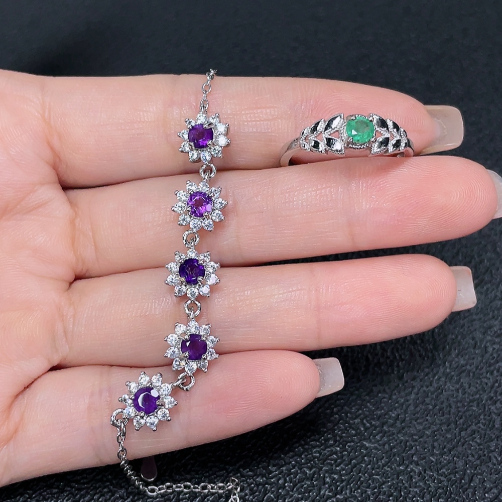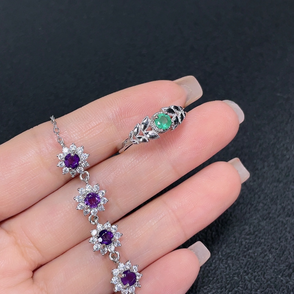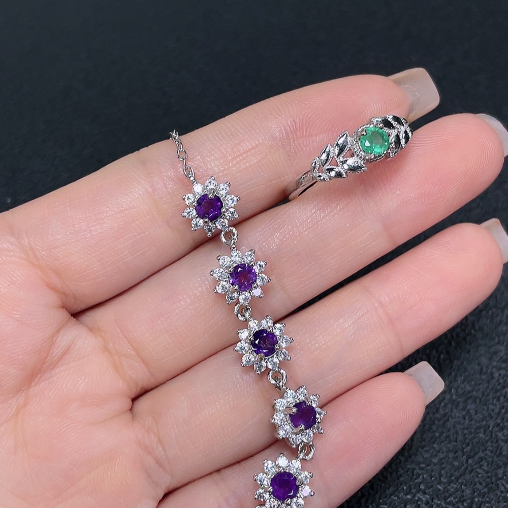 Emerald Ring Clarity Enhanced + Crystal Bracelet Non-Gold Total Weight Approx. 6.25g Sell as a Lot