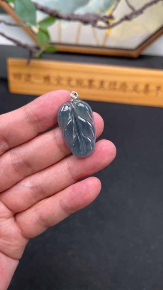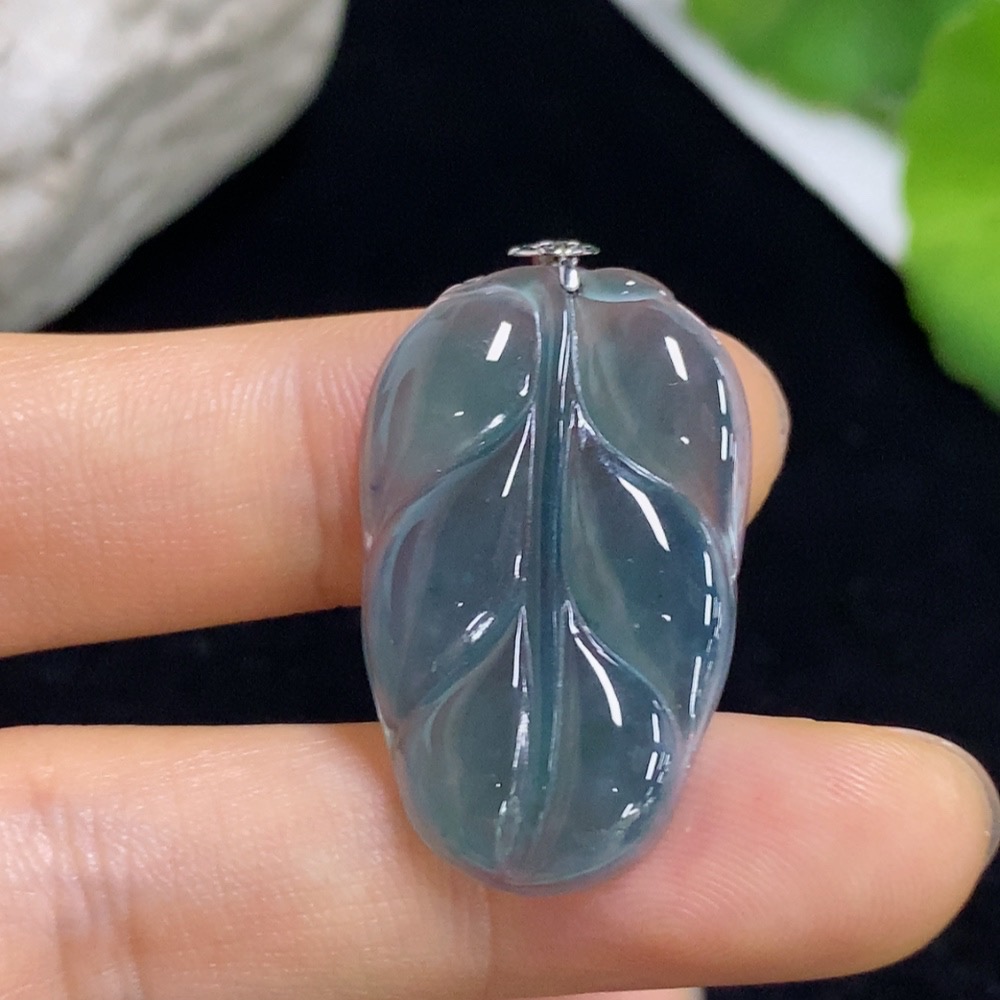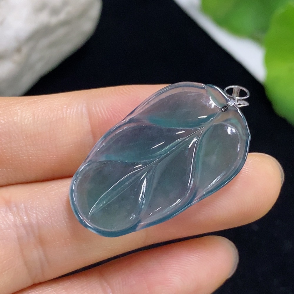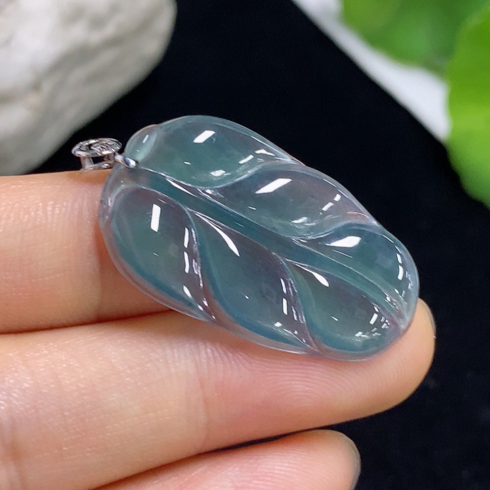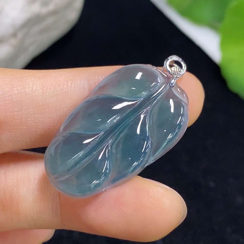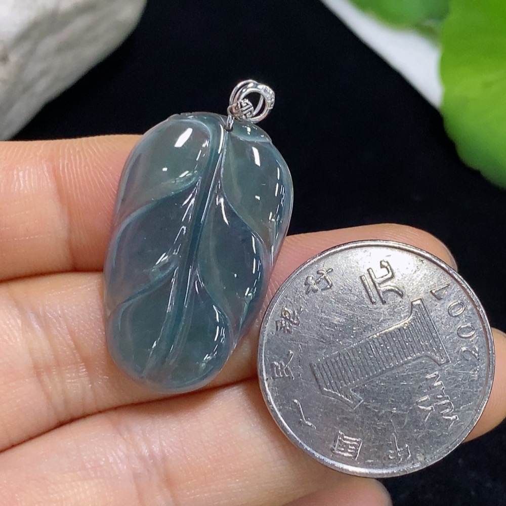 Jadeite Leaf Pendant 18k (Diamonds Too Small to Determine) Total Weight Approx. 3.59g