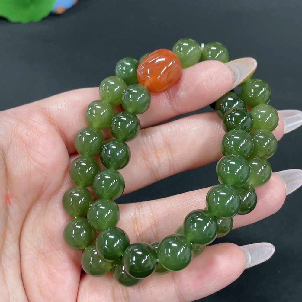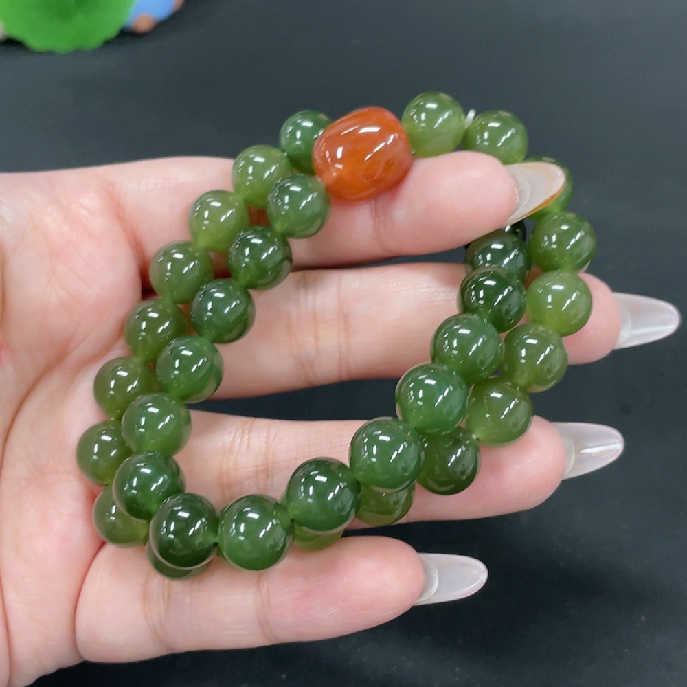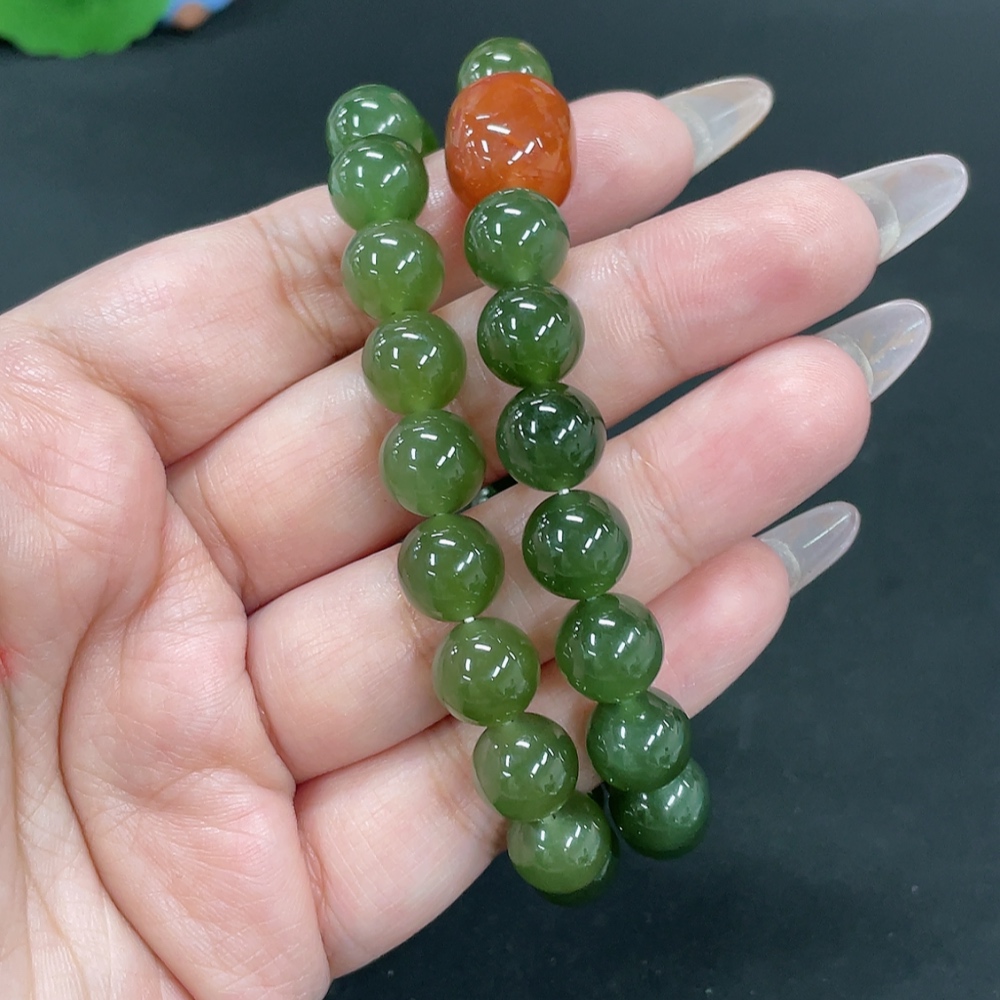 Hetian Jade Bead Necklace, Approx. 9.9mm, Total Weight Approx. 63.1g, Non-Hetian Jade Beads Included