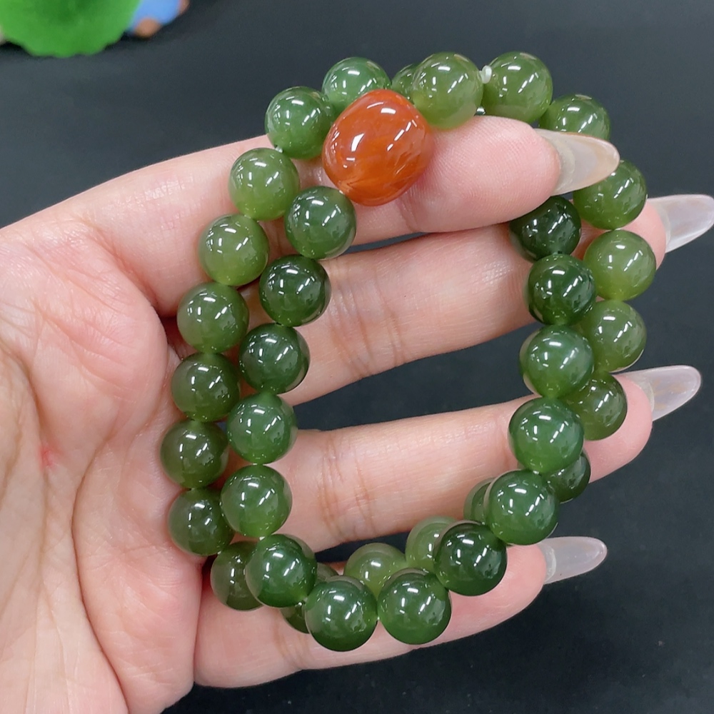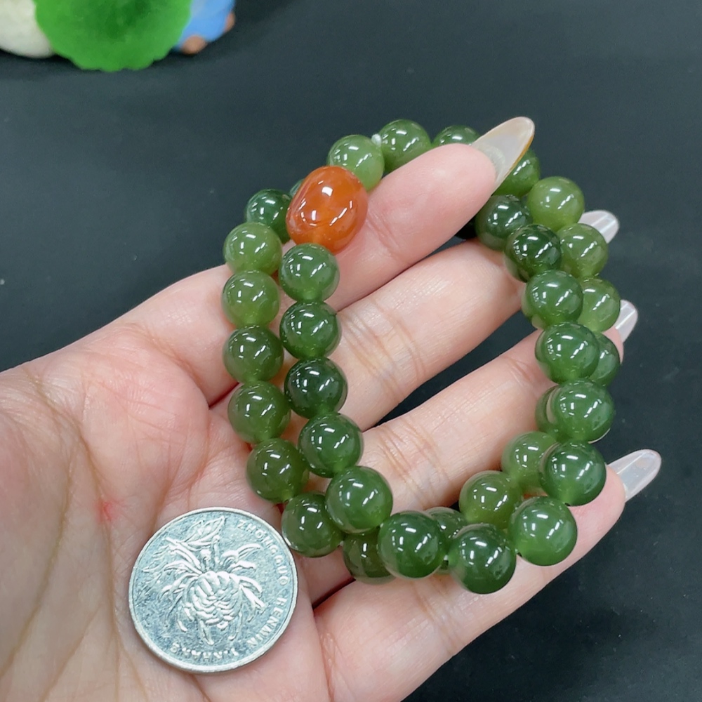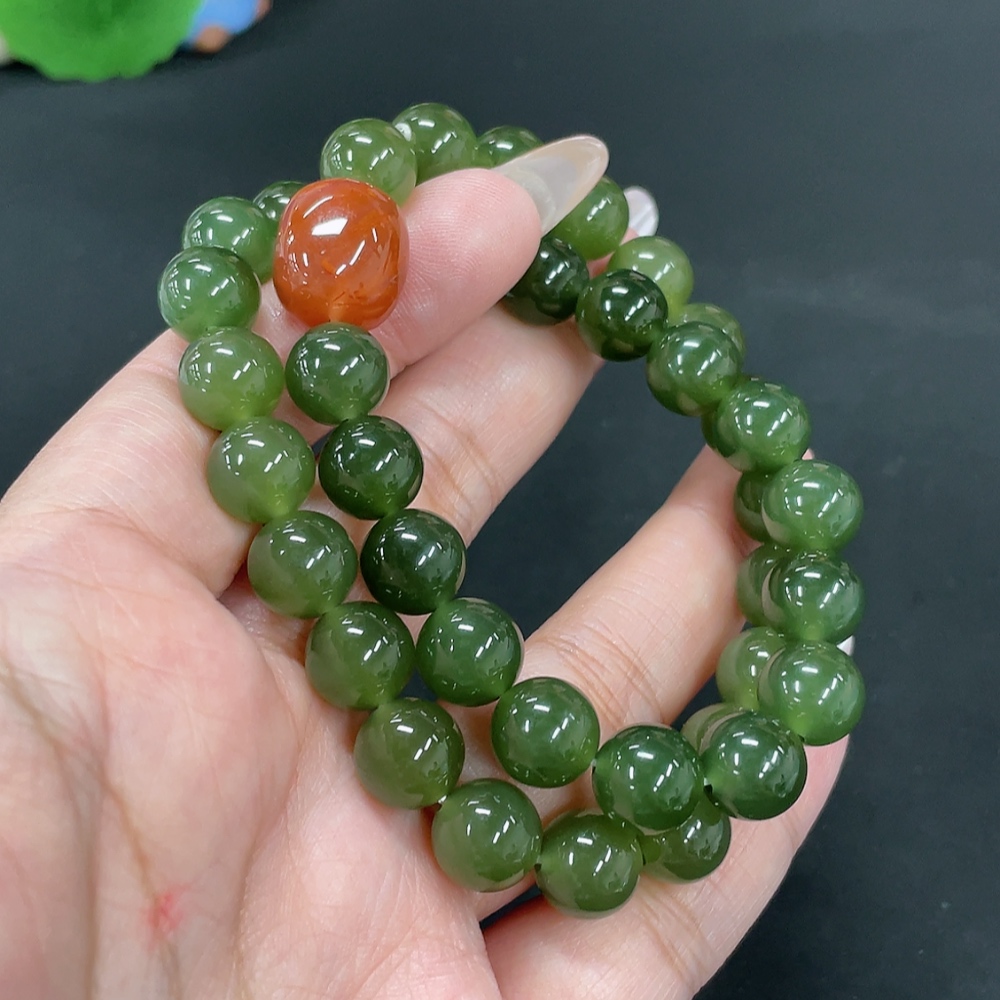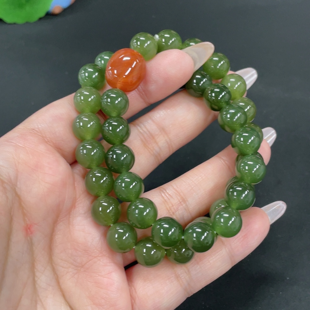 Hetian Jade Bead Necklace, Approx. 9.9mm, Total Weight Approx. 63.1g, Non-Hetian Jade Beads Included