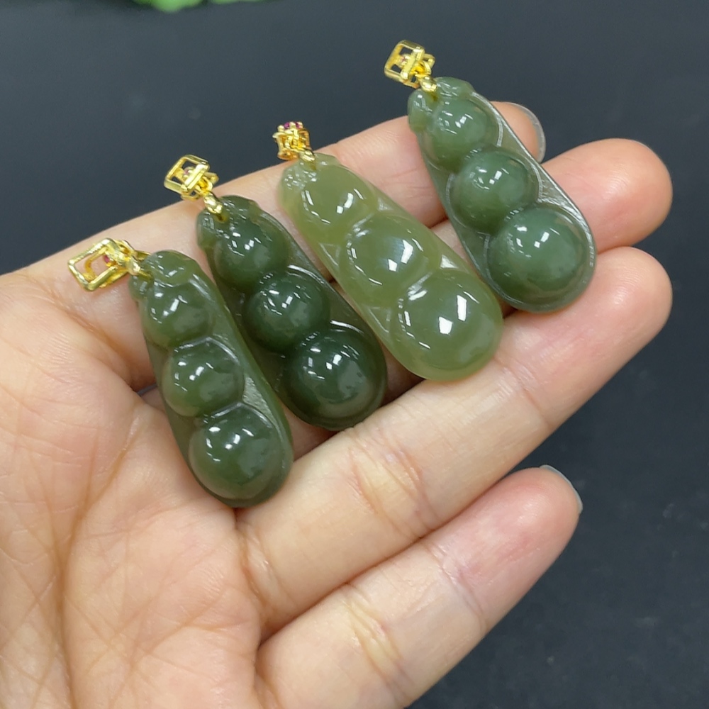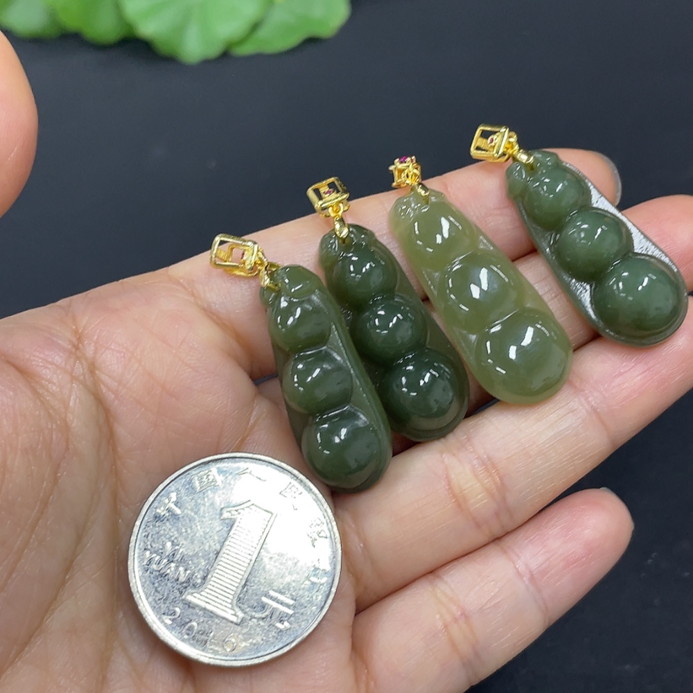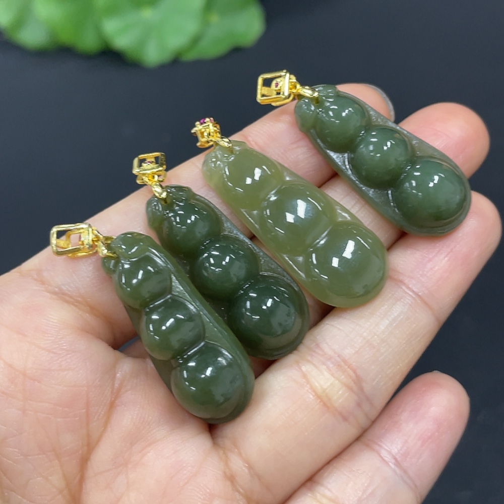 Hetian Jade Pendant, Lucky Bean, Non-Gold Inlaid, Total Weight Approx. 16.8g
