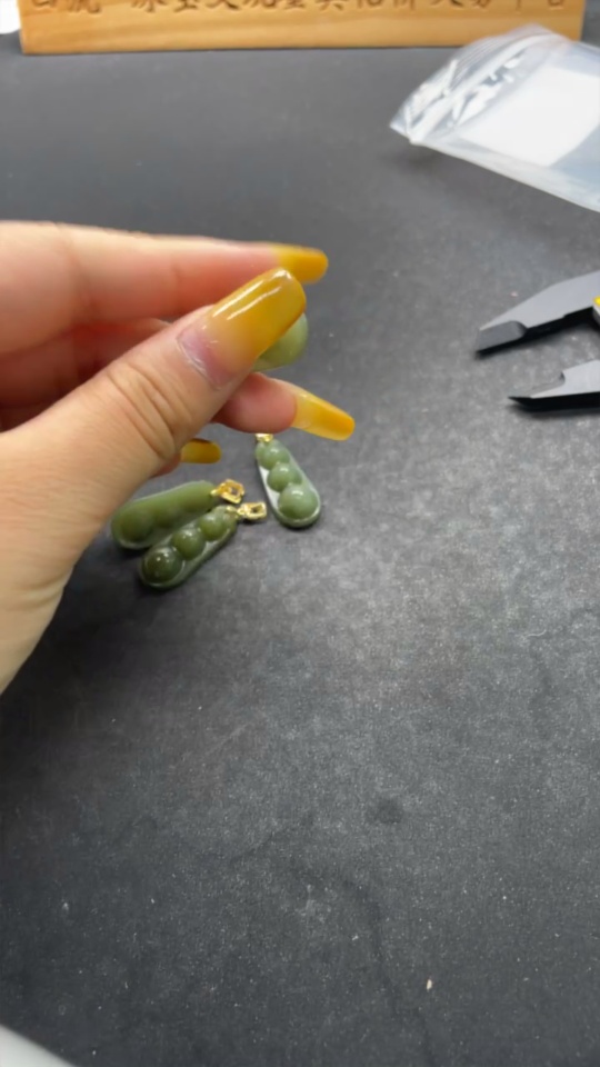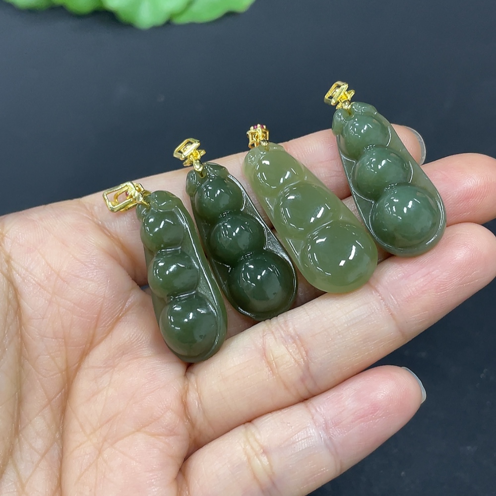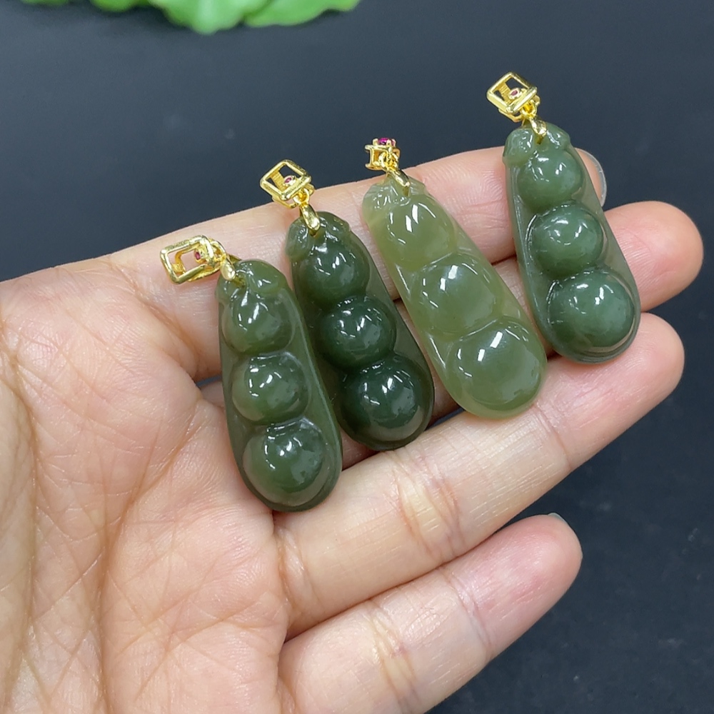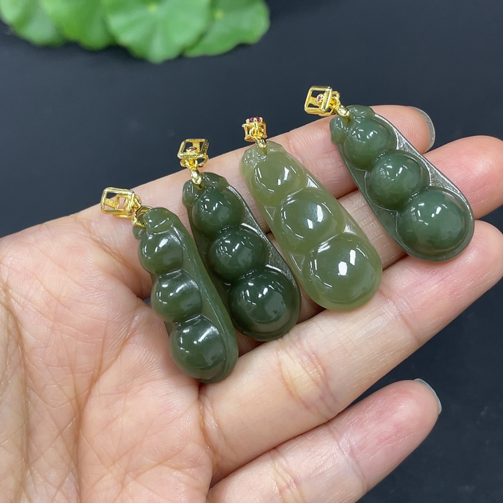 Hetian Jade Pendant, Lucky Bean, Non-Gold Inlaid, Total Weight Approx. 16.8g