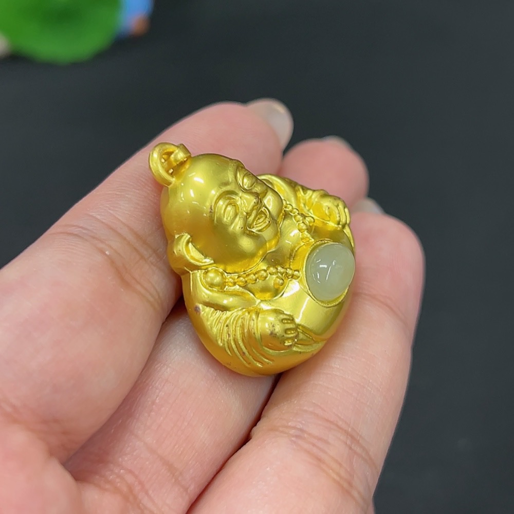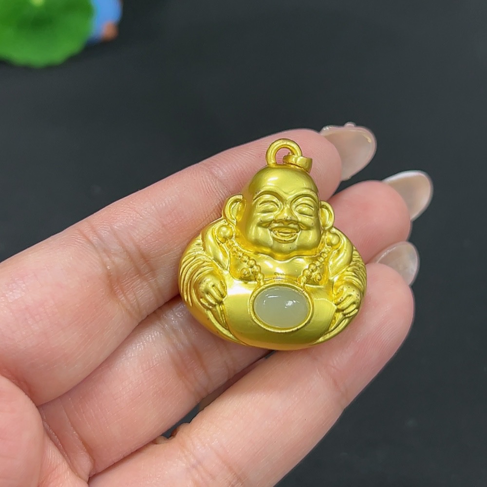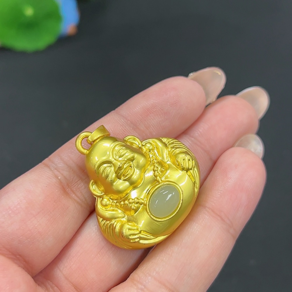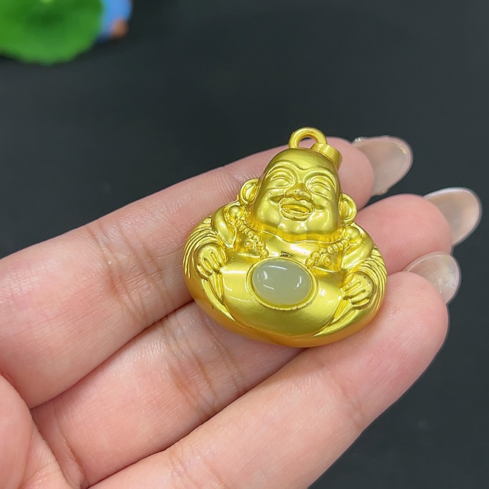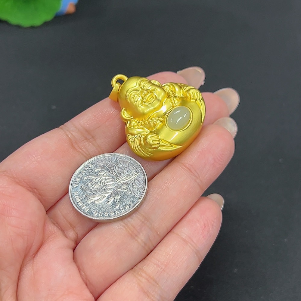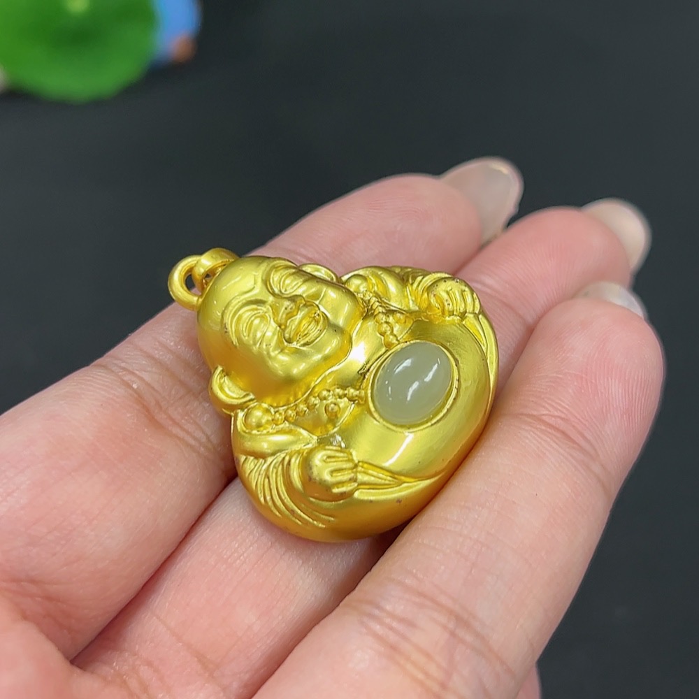 Hetian Jade Inlaid Pendant Total Weight Approx. 13.9g Non-Gold