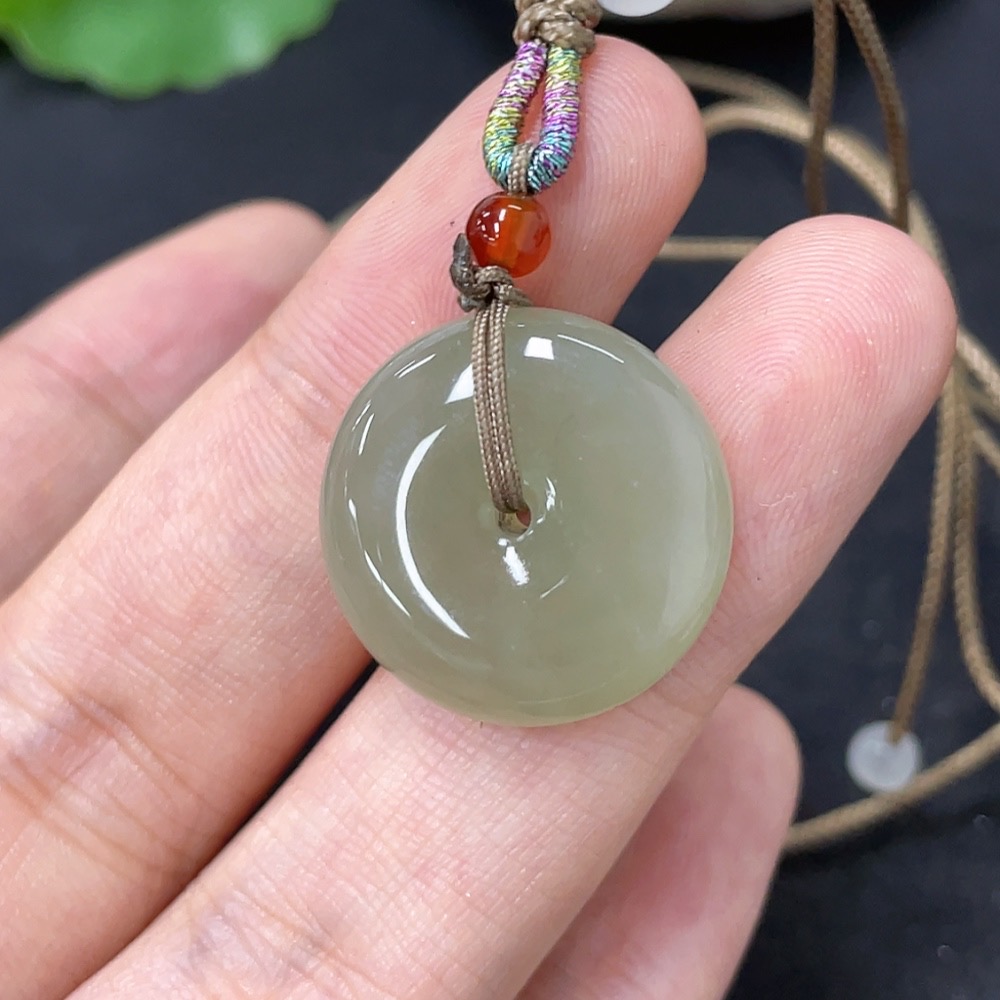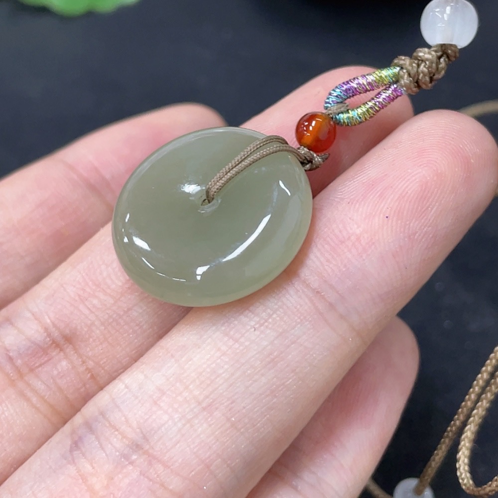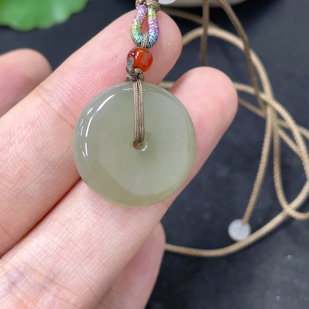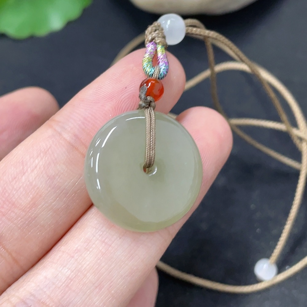 Hetian Jade Pendant, Peace Buckle, Total Weight (Including Rope) Approx. 5.8g