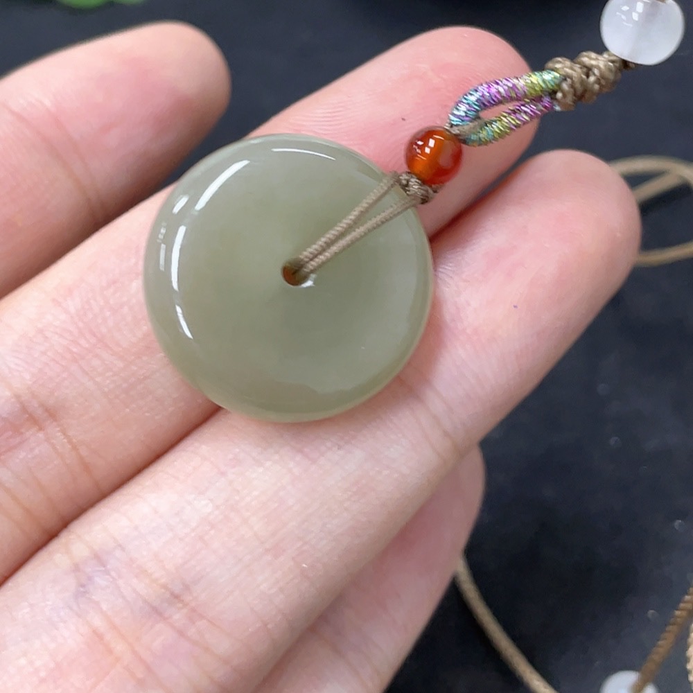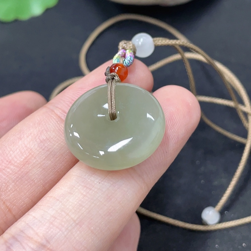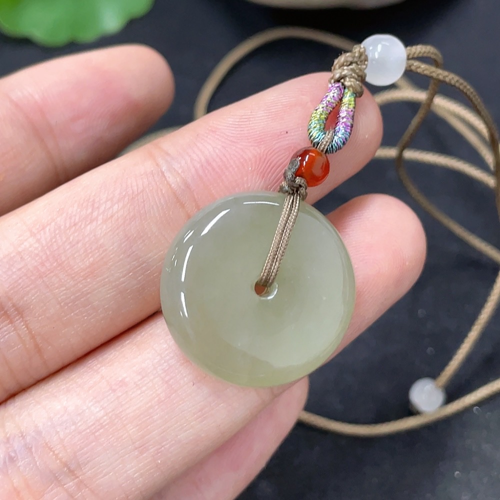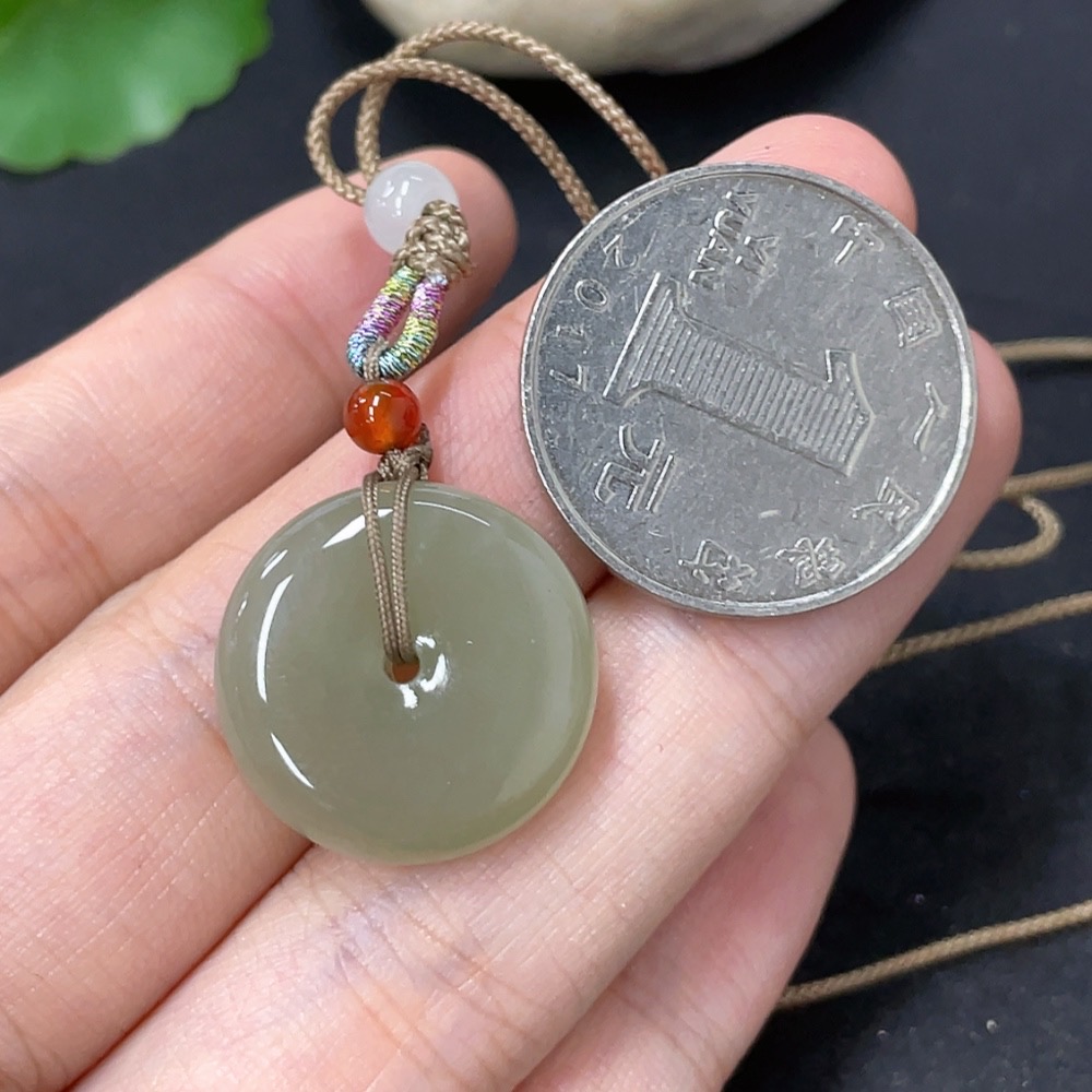 Hetian Jade Pendant, Peace Buckle, Total Weight (Including Rope) Approx. 5.8g